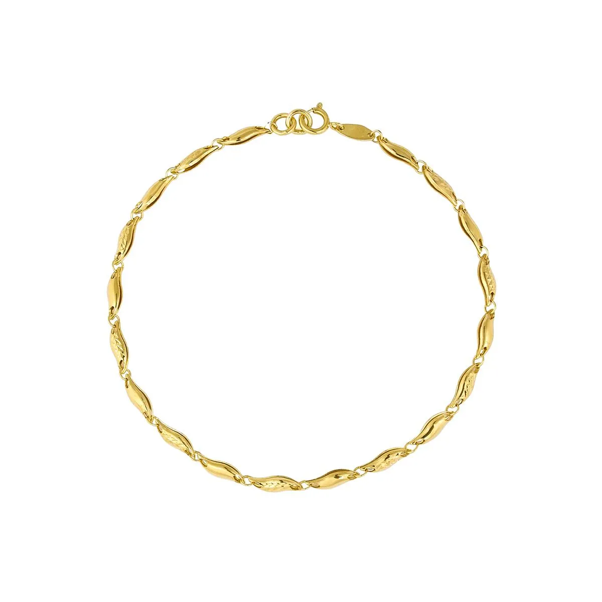 Bransoletka ze złota składa się ze złotych elementów w kształcie fali – wypolerowanych oraz ze zdobieniem, dzięki czemu całość prezentuje się niebywale szlachetnie. Stylowa biżuteria tak doskonale uzupełni każdą stylizację, że stanie się wręcz niezbędnym elementem Twojego ubioru. Jeśli poszukujesz oryginalnego dodatku, który nie tylko przykuje spojrzenia niebanalną formą, lecz także subtelnie wysmukli nadgarstek, to znajdziesz to w sklepie Blue Topaz.