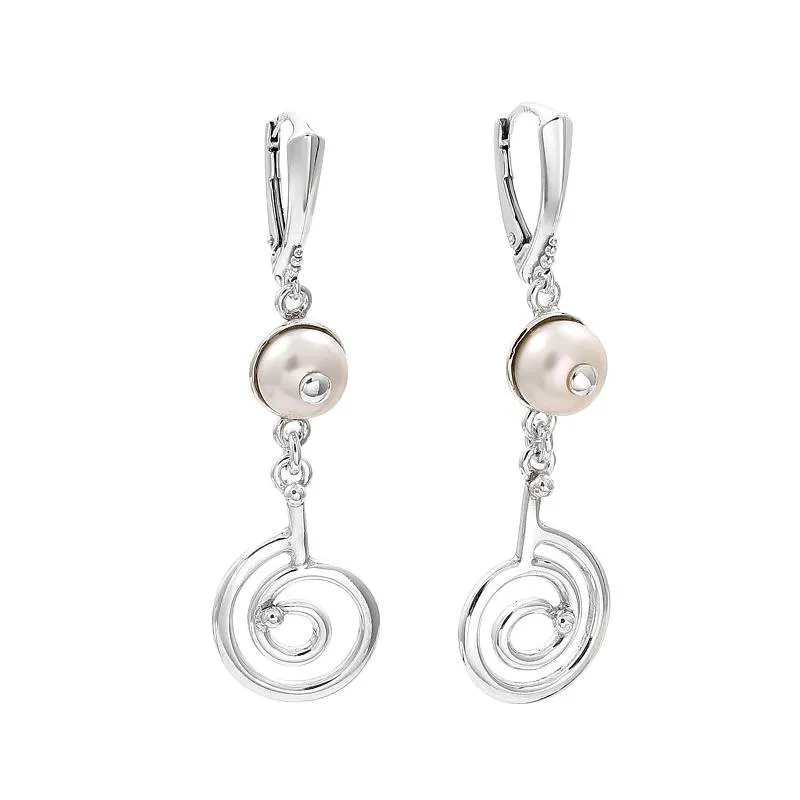 Srebrne kolczyki wiszące z perłami prezentują się niezwykle elegancko i subtelnie. Każdy z nich składa się z delikatnej, wiszącej konstrukcji ze srebra, zdobionej romantycznymi perłami i ozdobą w formie urokliwej spirali w dolnej części.