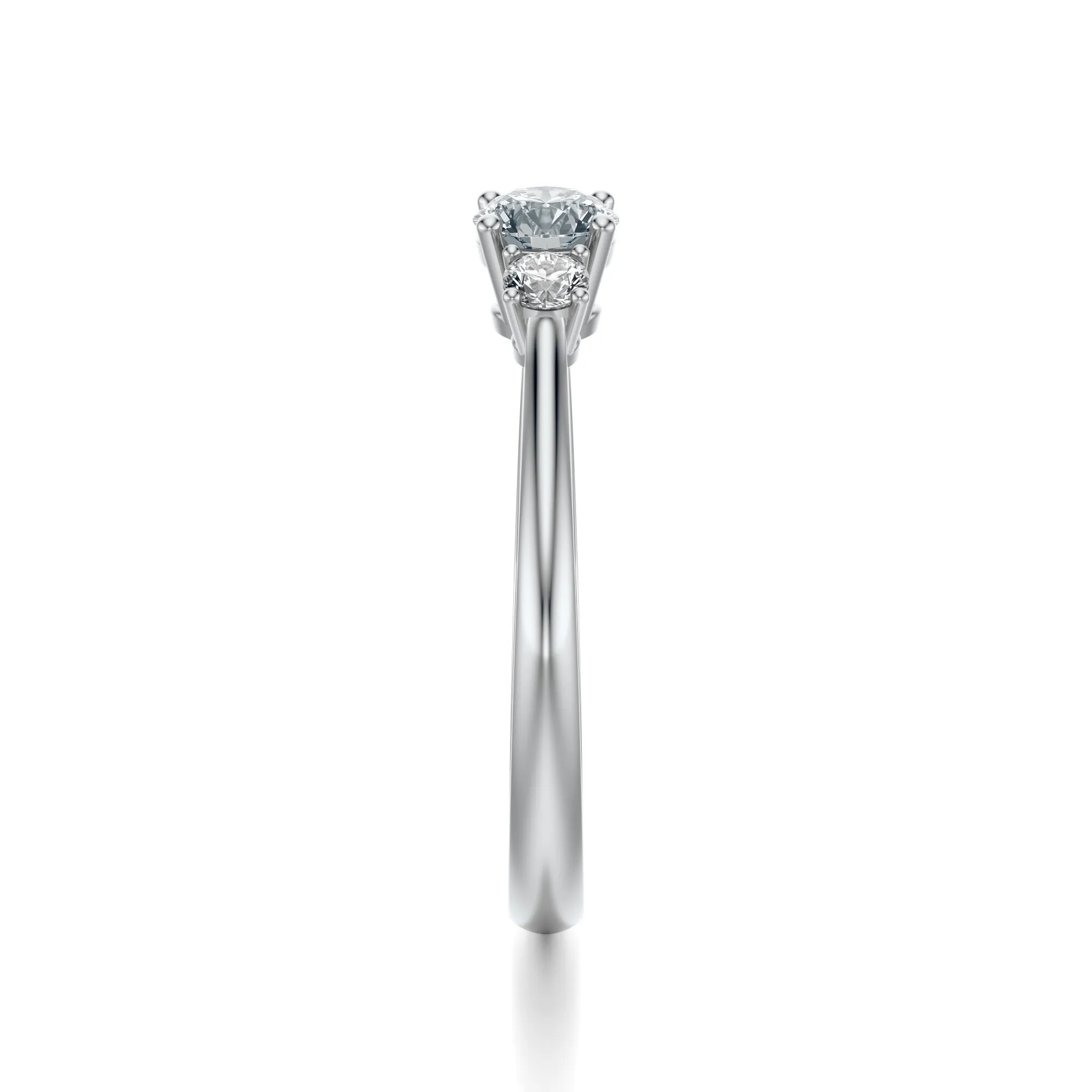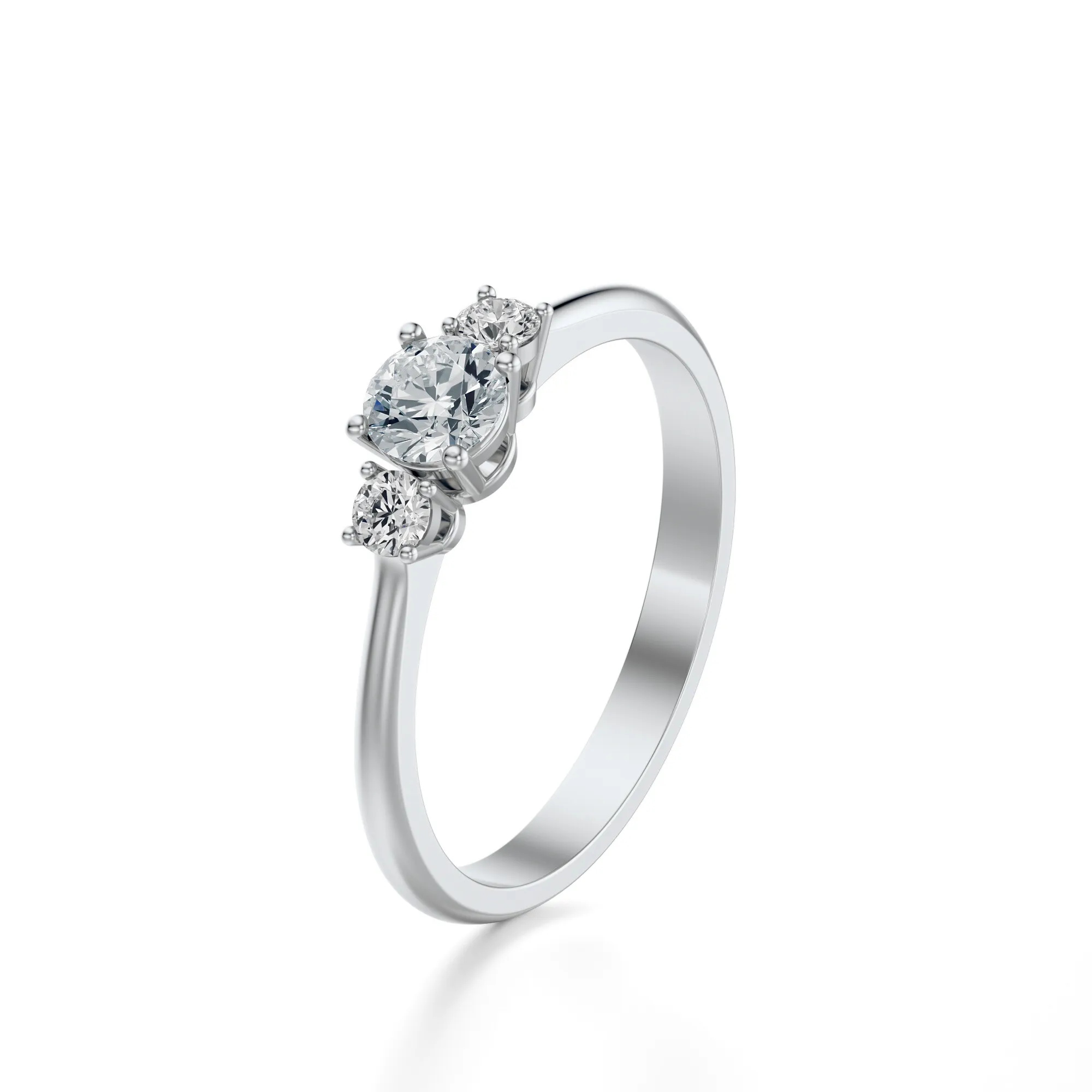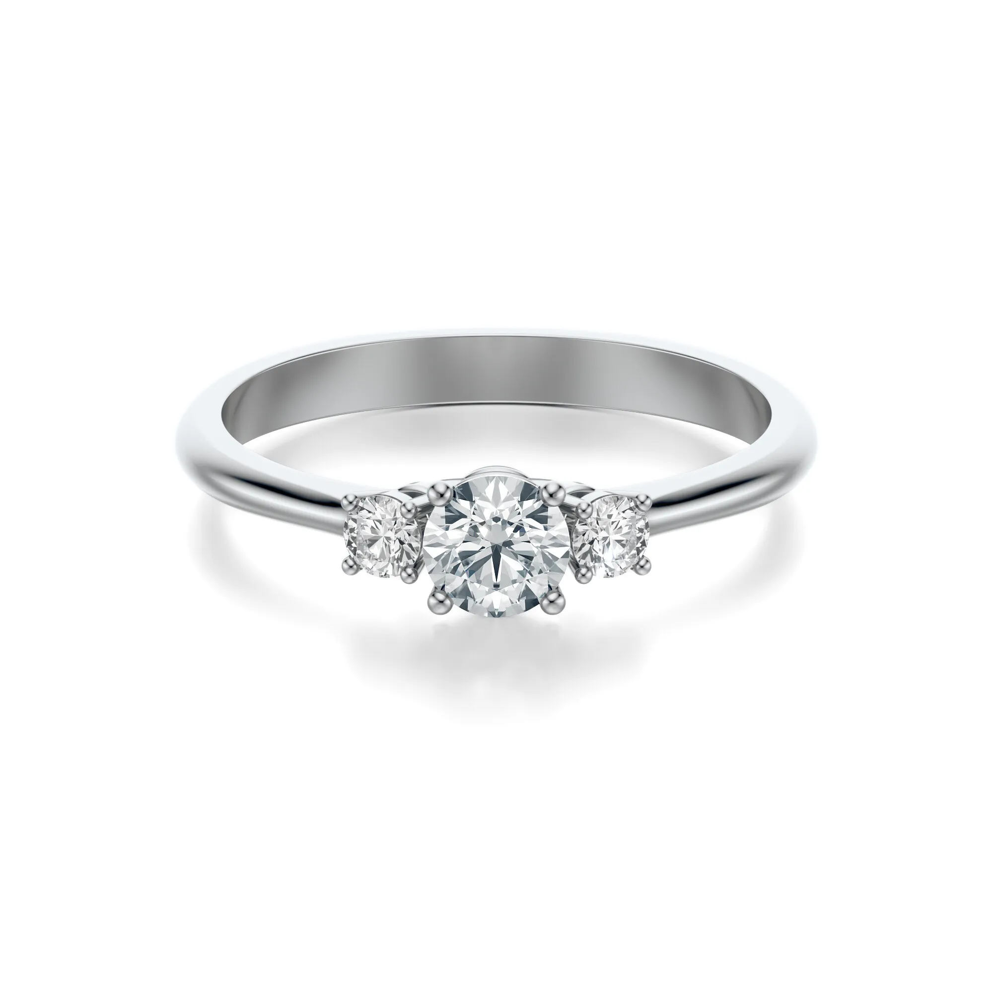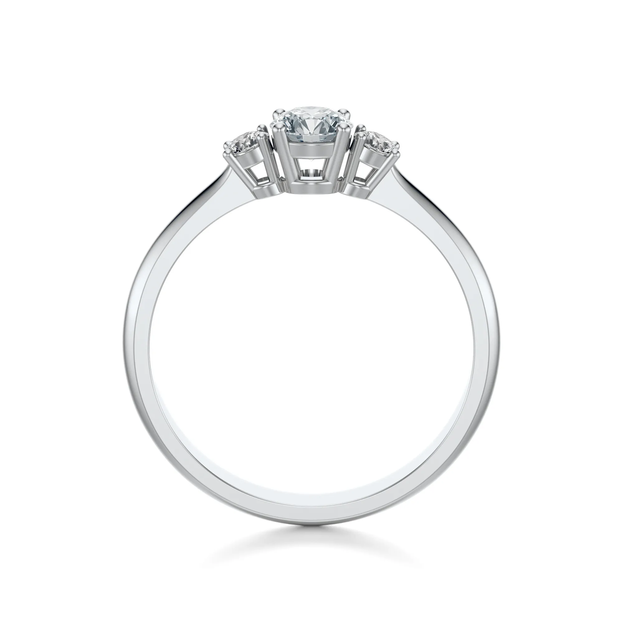 Centralny diament, większy od dwóch bocznych, osadzony został w klasycznych czterech łapkach, tworząc harmonijny układ o silnym symbolicznym przekazie. Trzy kamienie mogą symbolizować wspólną przeszłość, teraźniejszość i przyszłość – dzięki czemu pierścionek nabiera wyjątkowej wartości emocjonalnej. To doskonały wybór dla osób poszukujących biżuterii, która łączy elegancję z głębią przekazu.
