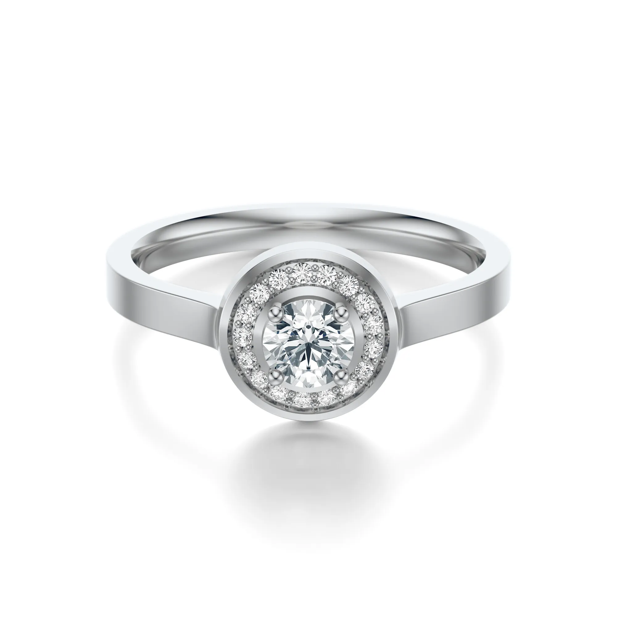 Zaprojektowany z myślą o nowoczesnych miłośniczkach klasyki, pierścionek zachwyca równowagą między prostotą a wyrafinowaniem. Układ kamieni typu halo optycznie powiększa główny diament i nadaje całości szlachetnego charakteru. To idealny wybór dla kobiet ceniących styl minimalistyczny, ale z nutą luksusu. Symbolika diamentów – czystość, trwałość i siła – czyni go doskonałym prezentem na zaręczyny, jubileusz lub inną ważną okazję.