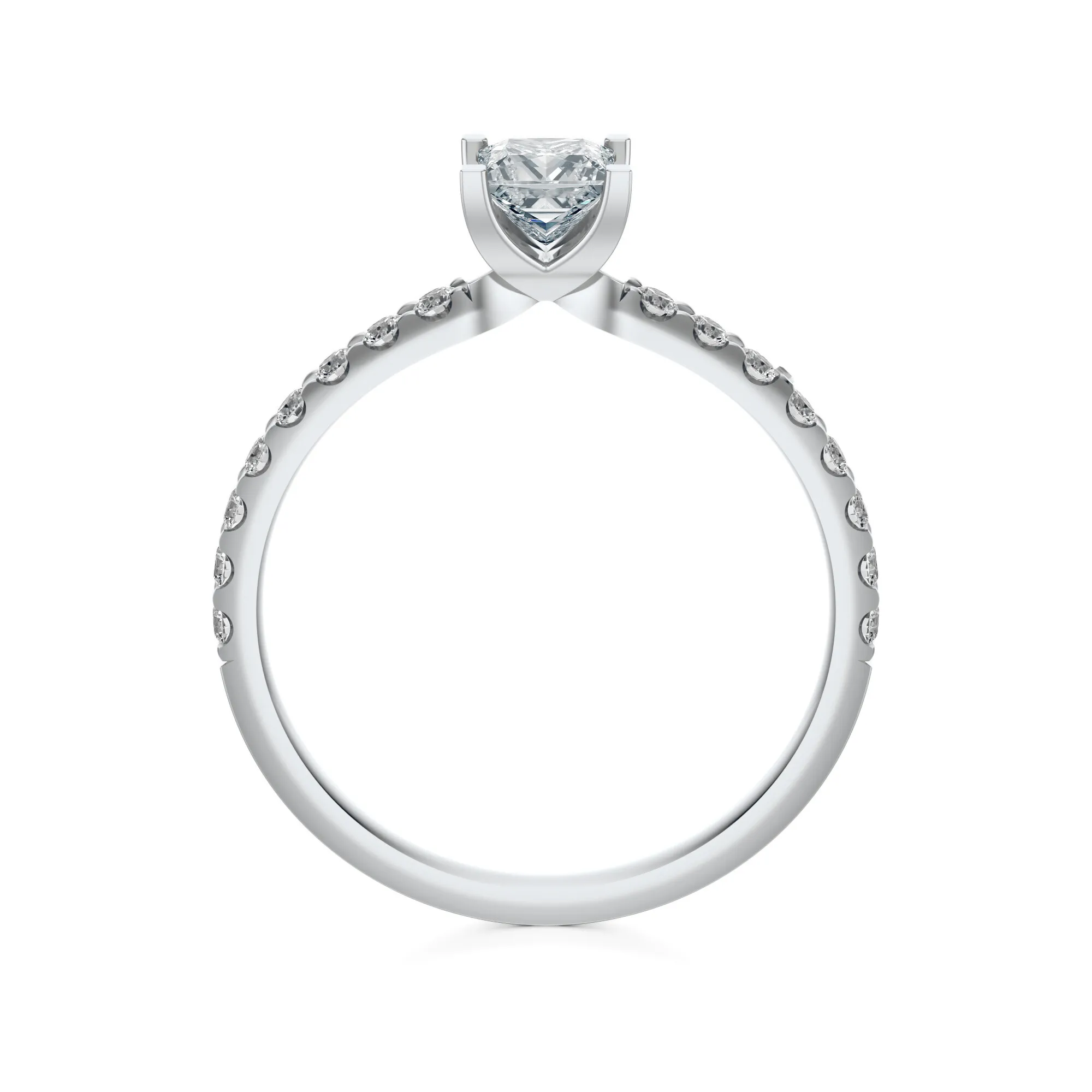Centralny diament o szlifie princessa, znany ze swojej wyjątkowej symetrii, odbija światło z niezwykłą intensywnością, a otaczające go drobne, okrągłe kamienie dodatkowo potęgują jego blask. Standardowe parametry oferowanych diamentów to czystość VS2, barwa H, szlif Excellent i masa od 0.30 do 0.70 ct, z możliwością personalizacji zgodnie z preferencjami klienta. Wszystkie diamenty spełniają rygorystyczne międzynarodowe normy jakości.
