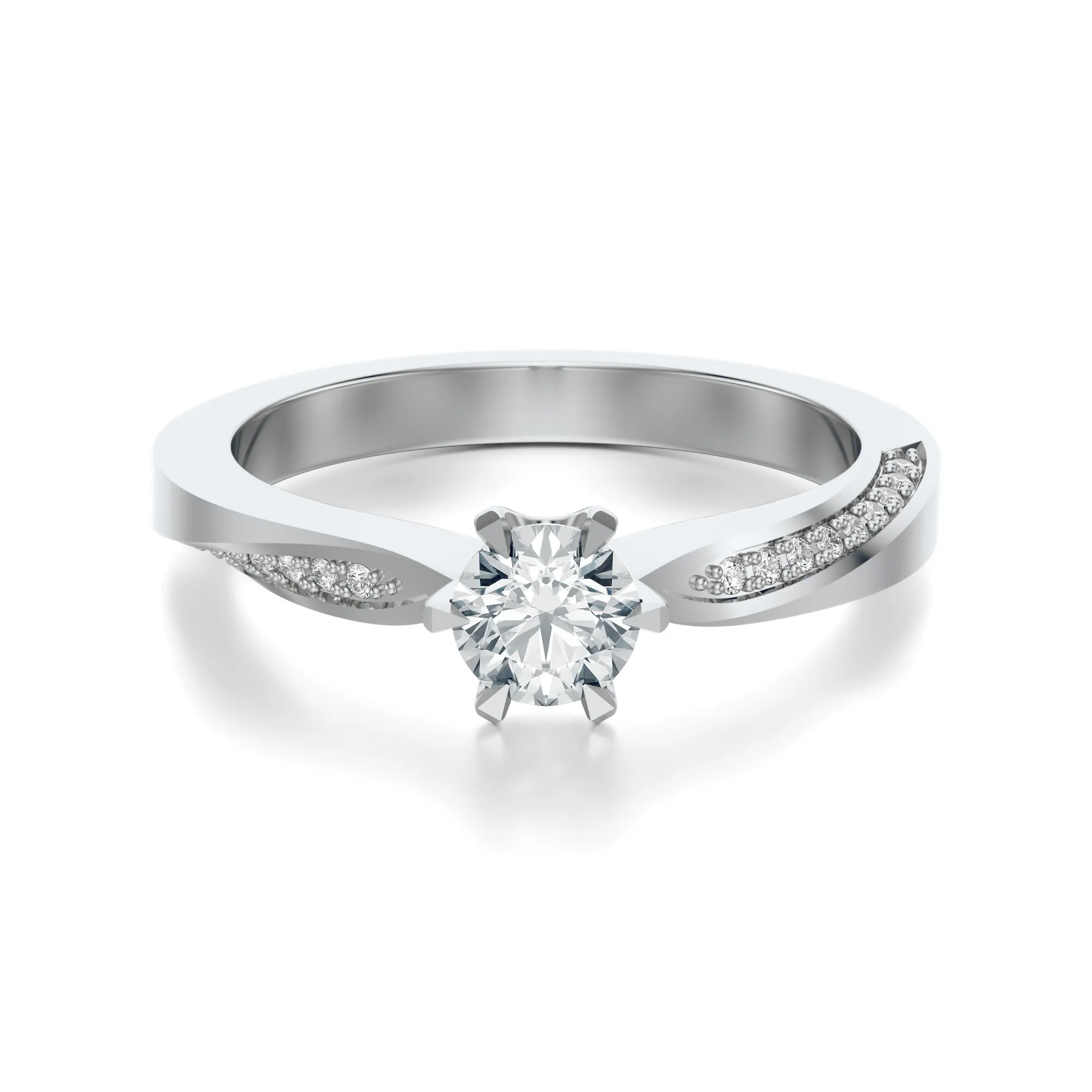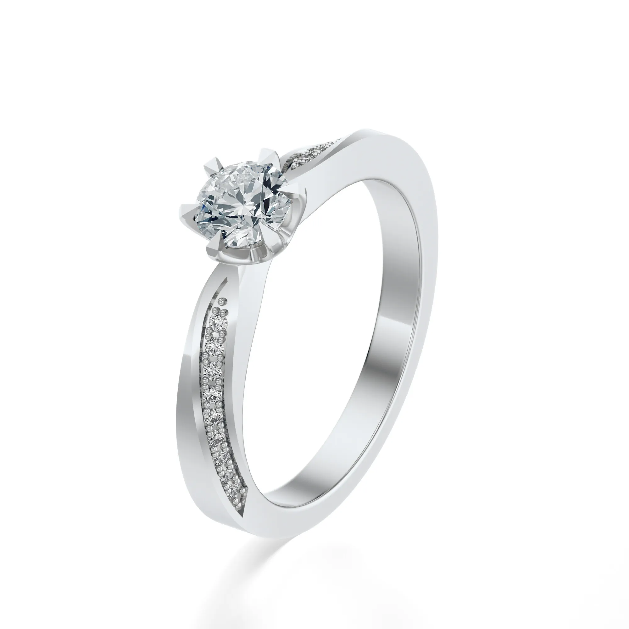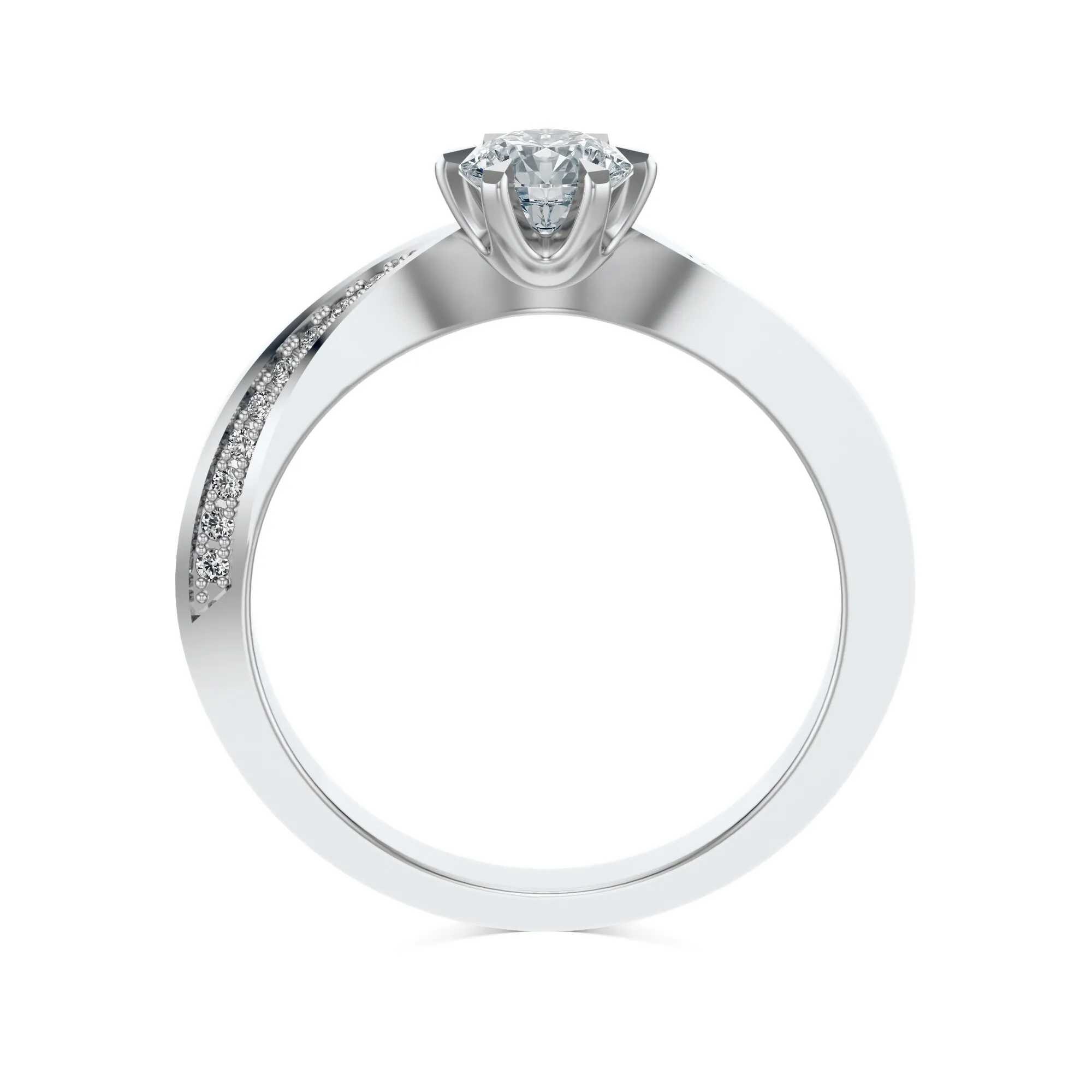 Diamenty osadzone w tym modelu charakteryzują się doskonałym szlifem typu Excellent, czystością VS2 i barwą H. W zależności od preferencji klienta, dostępne są różne masy kamieni: od 0.30 do 0.70ct. Precyzja szlifu i jakość surowców wpływają bezpośrednio na jego imponujący blask i ponadczasową estetykę.