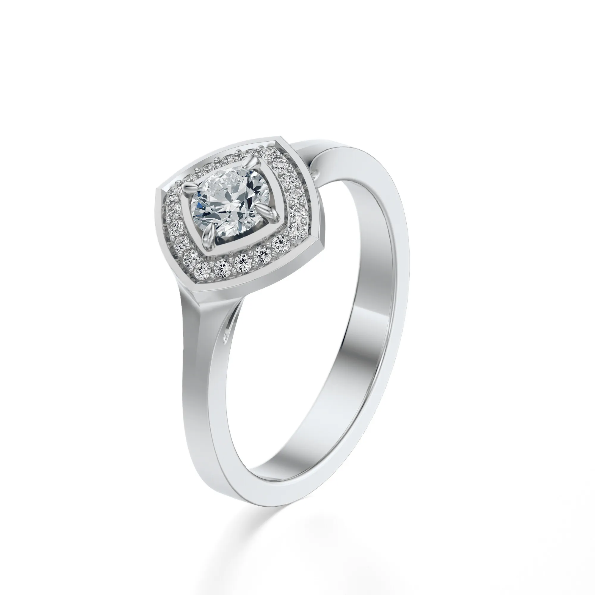Design pierścionka łączy klasykę z nowoczesnością. Okrągłe diamenty ułożone wokół głównego kamienia tworzą delikatną aureolę światła, symbolizującą czystość uczuć, trwałość relacji oraz harmonię. Biżuteria tego typu doskonale sprawdzi się nie tylko jako pierścionek zaręczynowy, ale także jako prezent z okazji rocznicy, ważnej daty czy rodzinnego jubileuszu.