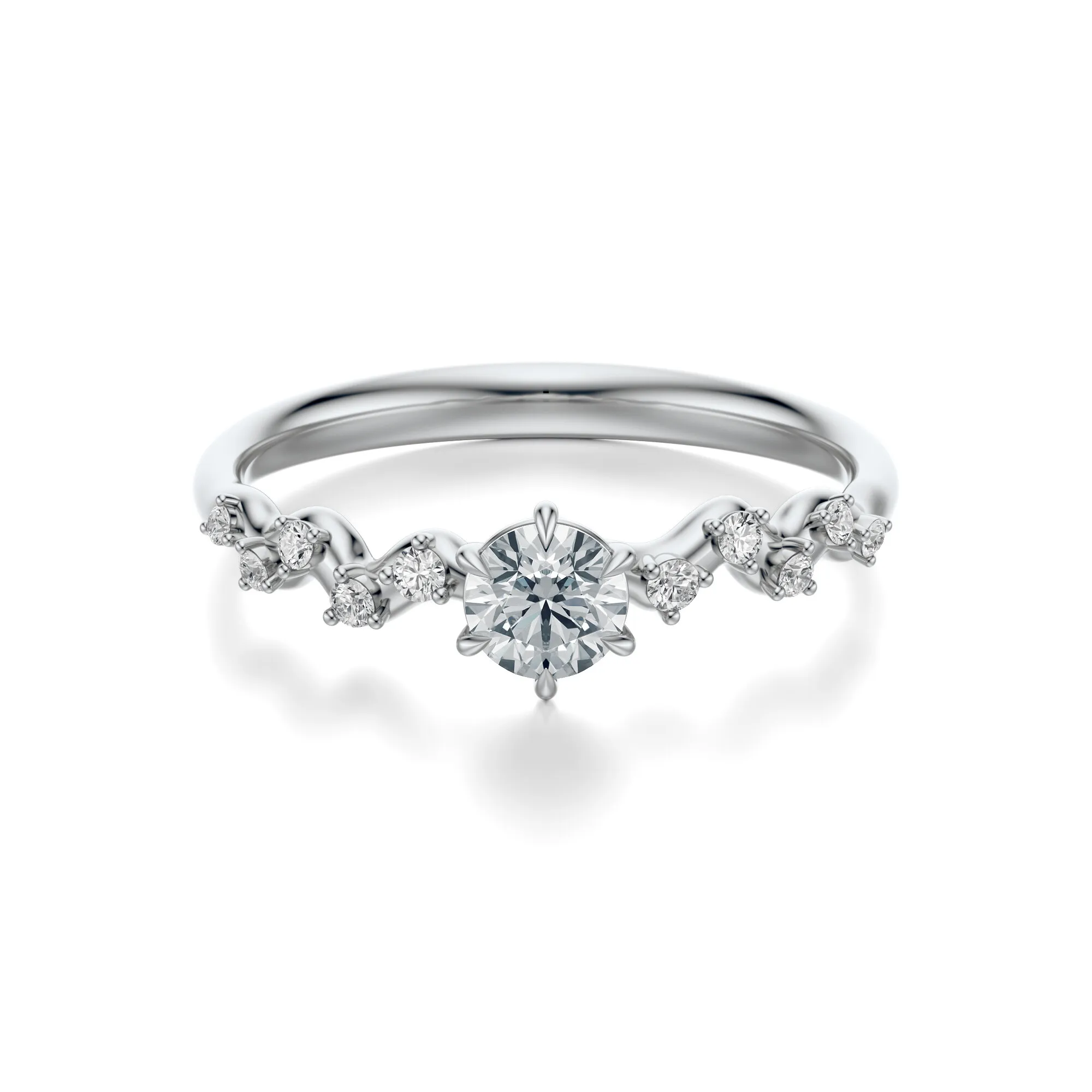 Kamienie wykorzystane w tym modelu mają parametry: czystość VS2, barwa H, szlif Excellent – co zapewnia im niezwykłą przejrzystość i migotliwy blask. Centralny diament dostępny jest w wersjach 0.30, 0.40, 0.50 i 0.70ct, a mniejsze kamienie delikatnie dopełniają jego świetlistość. Ich staranne rozmieszczenie tworzy wrażenie ruchu, podkreślając artystyczny charakter pierścionka.