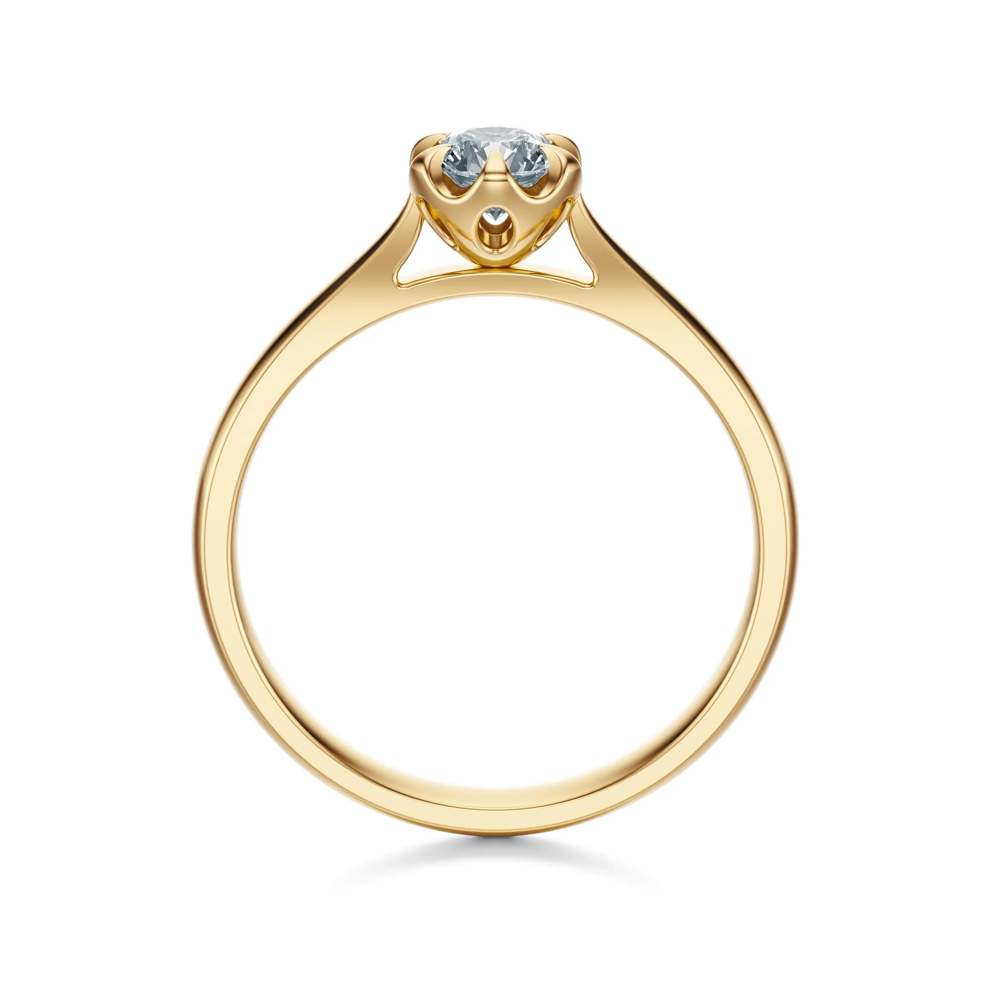 Żółte złoto w połączeniu z brylantowym szlifem kamienia nadaje całości ponadczasowego charakteru, czyniąc ten pierścionek doskonałym wyborem dla osób ceniących tradycyjną elegancję z nutą indywidualizmu. Biżuteria ta może być symbolem harmonii i trwałości uczuć, a wyjątkowy kształt oprawy diamentu przywodzi na myśl rozkwitającą miłość. To idealny pierścionek na zaręczyny, rocznicę lub ważną życiową chwilę, której chcesz nadać szczególne znaczenie.