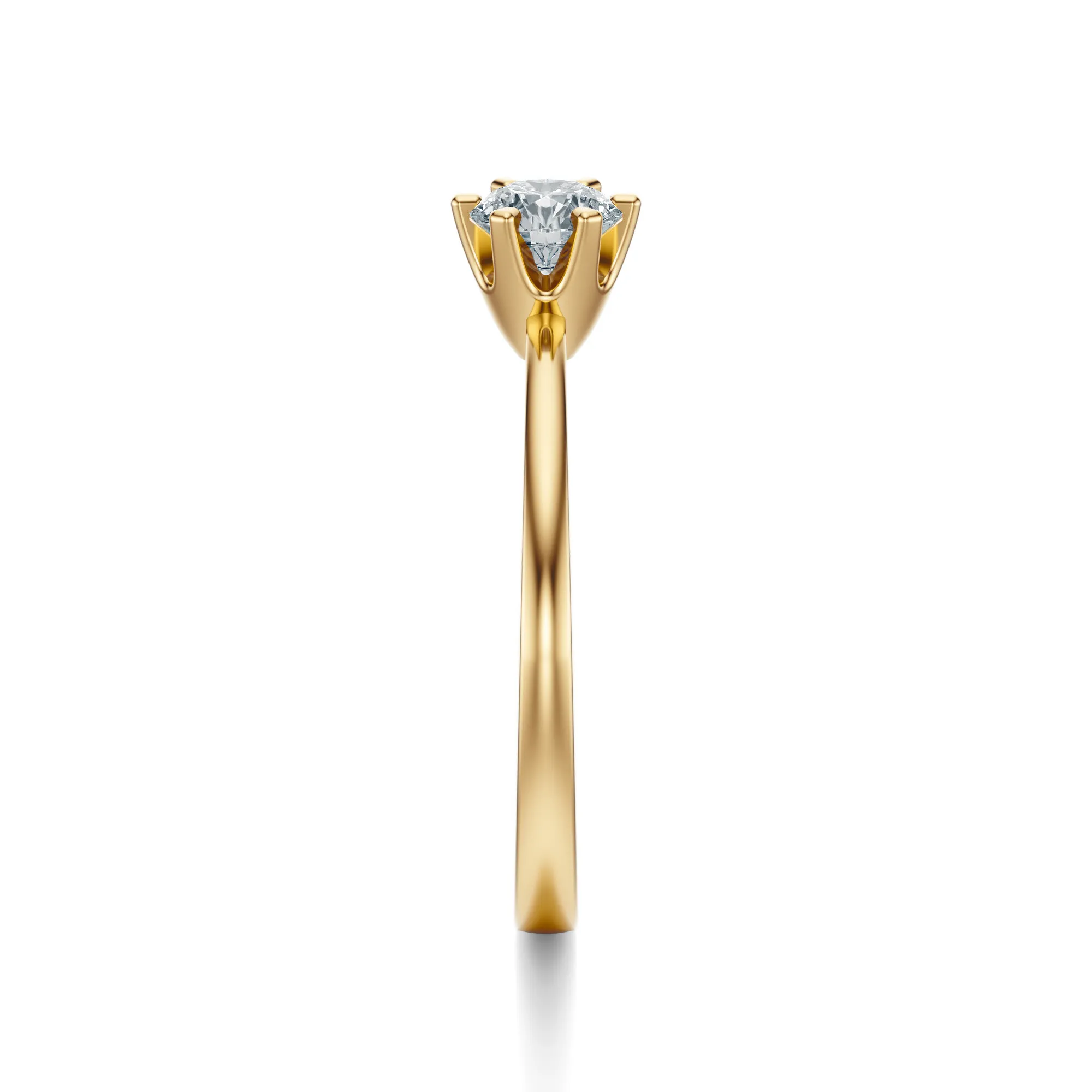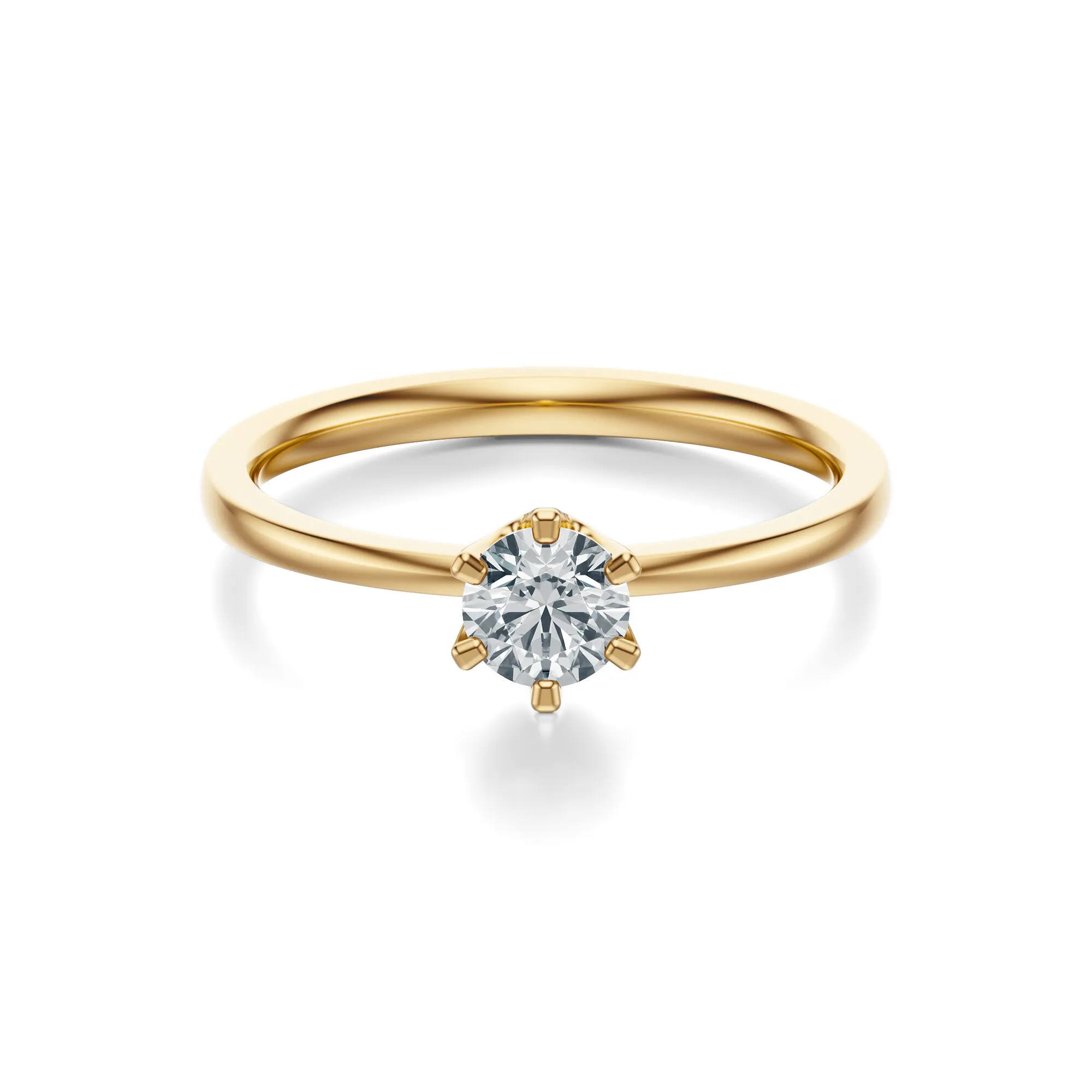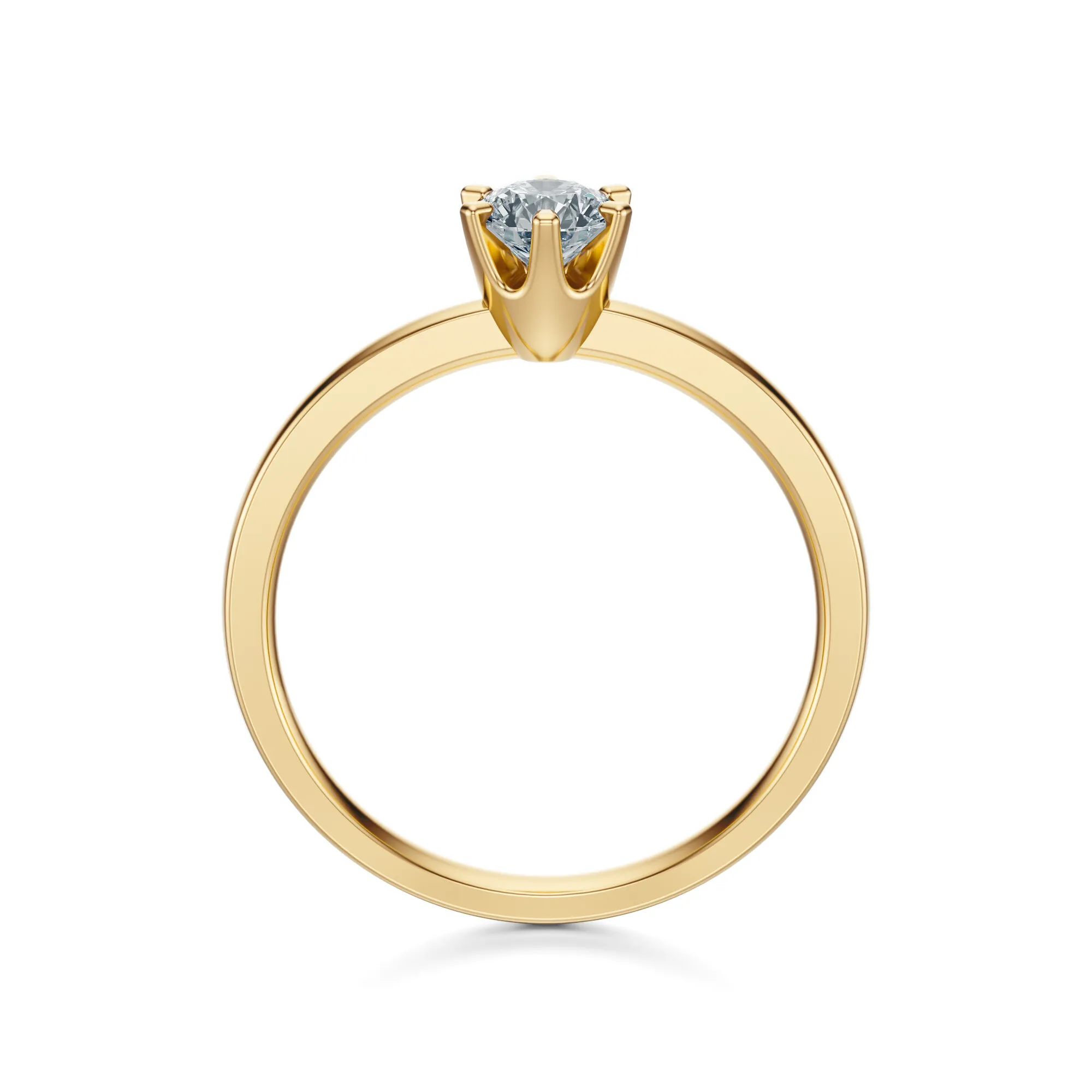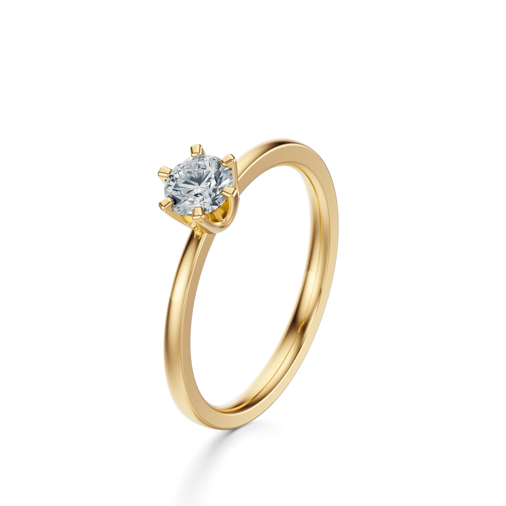 Zachwycający swoją prostotą i ponadczasową elegancją, ten klasyczny pierścionek zaręczynowy został wykonany z żółtego złota o próbie 585. Subtelna obrączka uwydatnia centralny element – okrągły diament osadzony w efektownej koronie sześciu łapek, która podkreśla jego intensywny blask i perfekcyjny szlif. Ten wyrafinowany projekt to esencja luksusu w minimalistycznej formie.