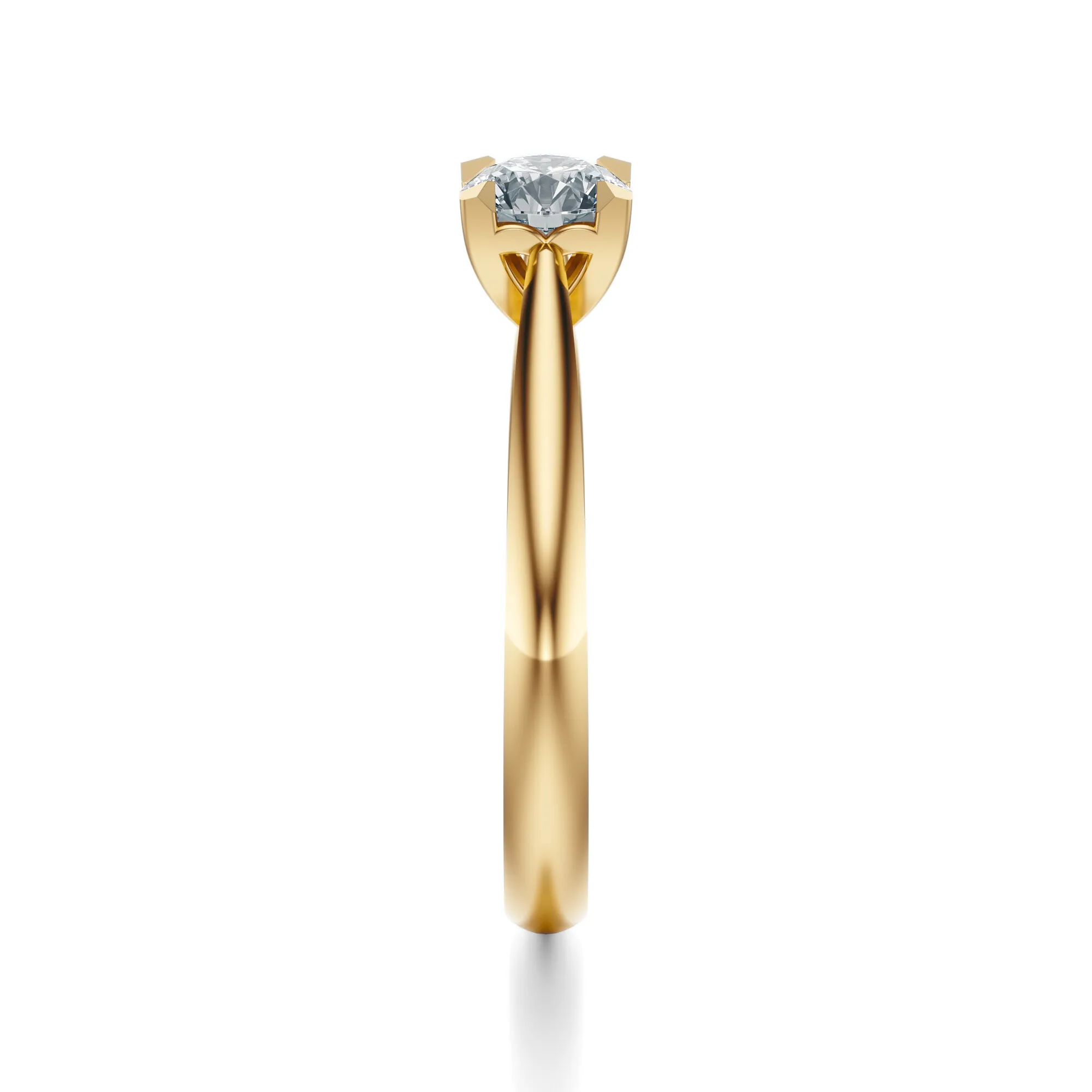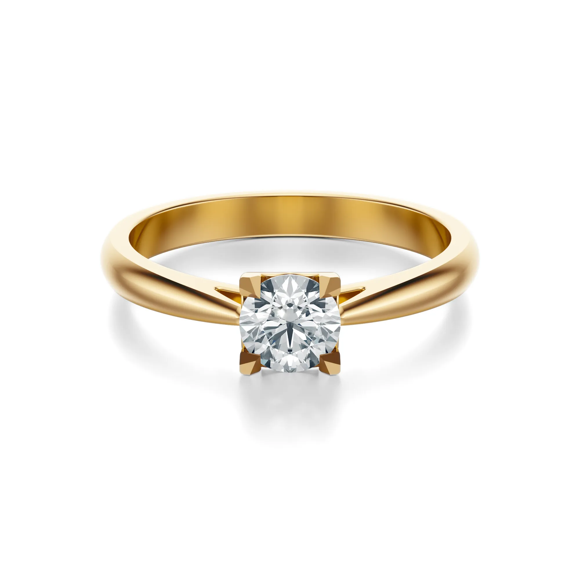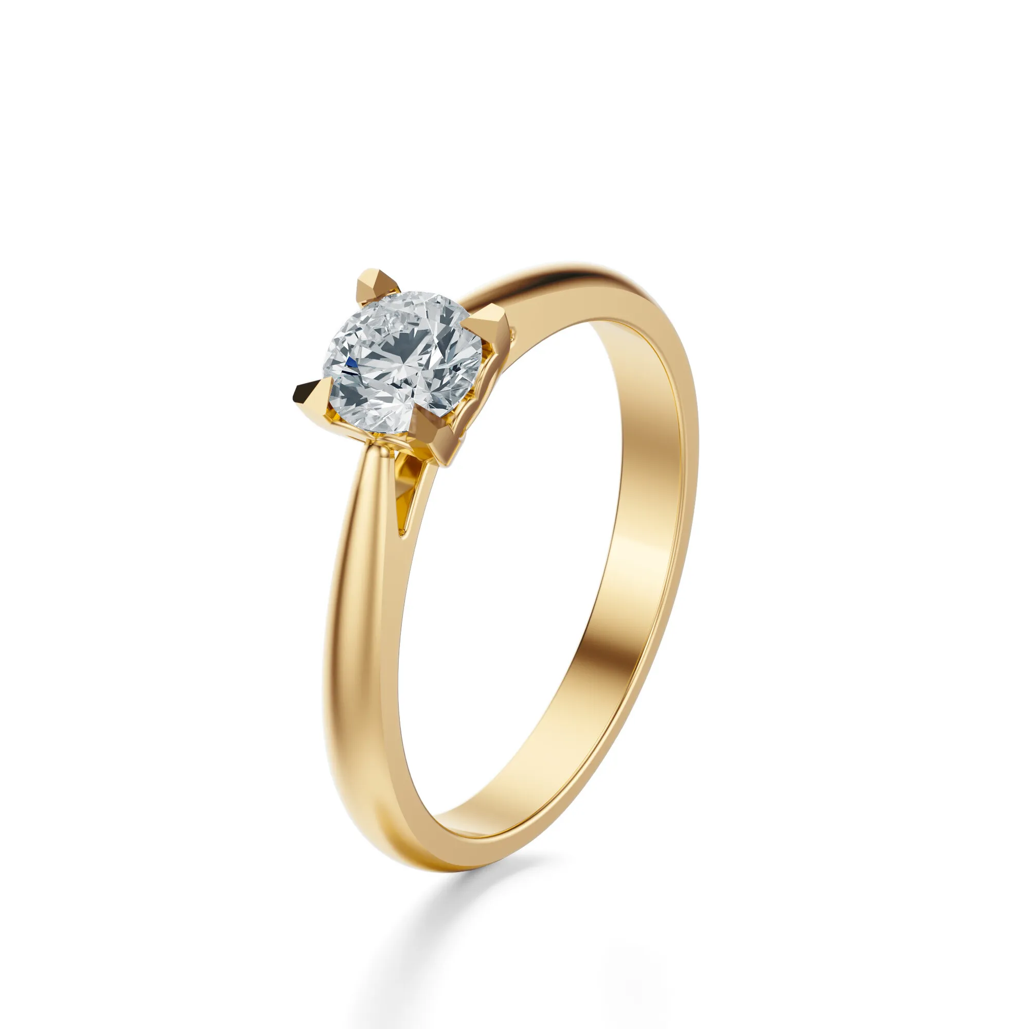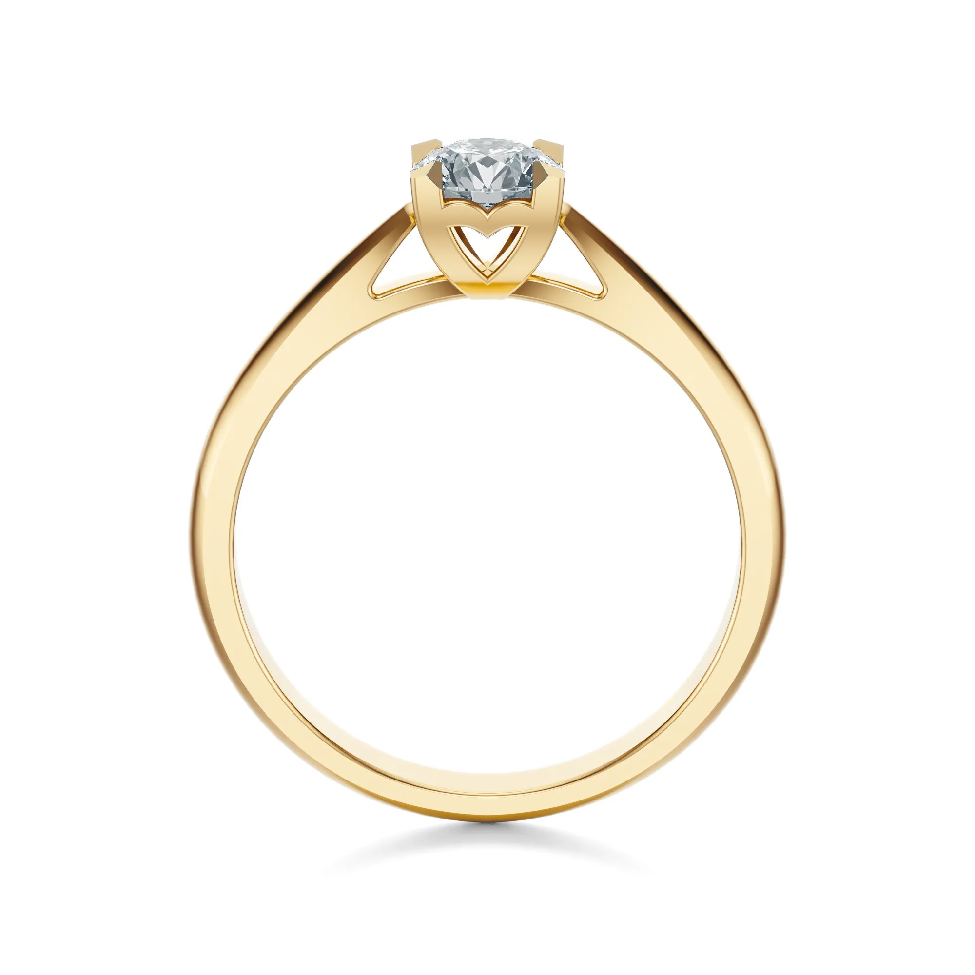 Ten elegancki pierścionek zaręczynowy z żółtego złota o próbie 585 zachwyca prostotą formy i intensywnym blaskiem kamienia. Jego subtelny, a jednocześnie wyrazisty design podkreśla wyjątkowość każdej chwili, czyniąc go idealnym wyborem na oświadczyny. Centralnie osadzony, okrągły diament lśni w klasycznej, sześcioramiennej oprawie, przyciągając wzrok czystością i świetlistym refleksem.