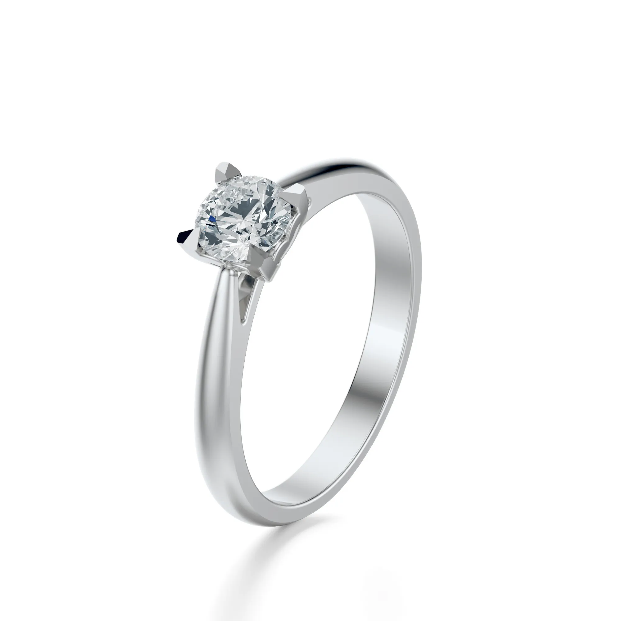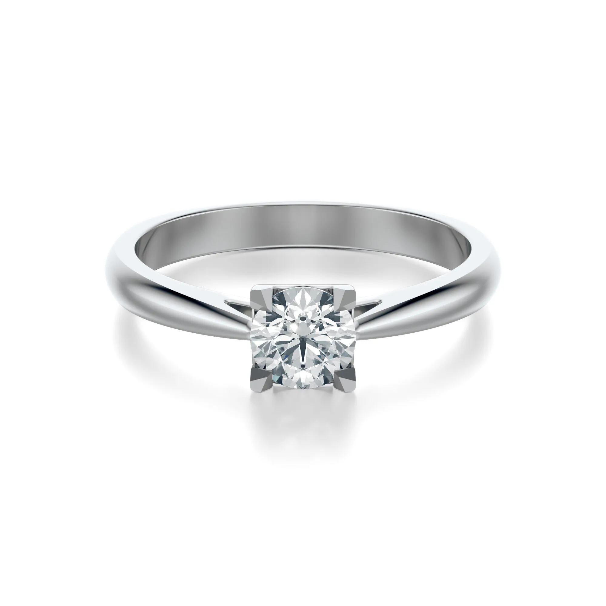 Centralny diament prezentuje parametry typowe dla naszej kolekcji: czystość VS2, barwa H, szlif Excellent oraz masa do wyboru – od 0.30 do 0.70 ct. Szlif typu Excellent gwarantuje doskonałą grę światła, podkreślając blask i perfekcję kamienia. Wysoka jakość wykonania i zgodność z międzynarodowymi normami to gwarancja trwałości i prestiżu.
