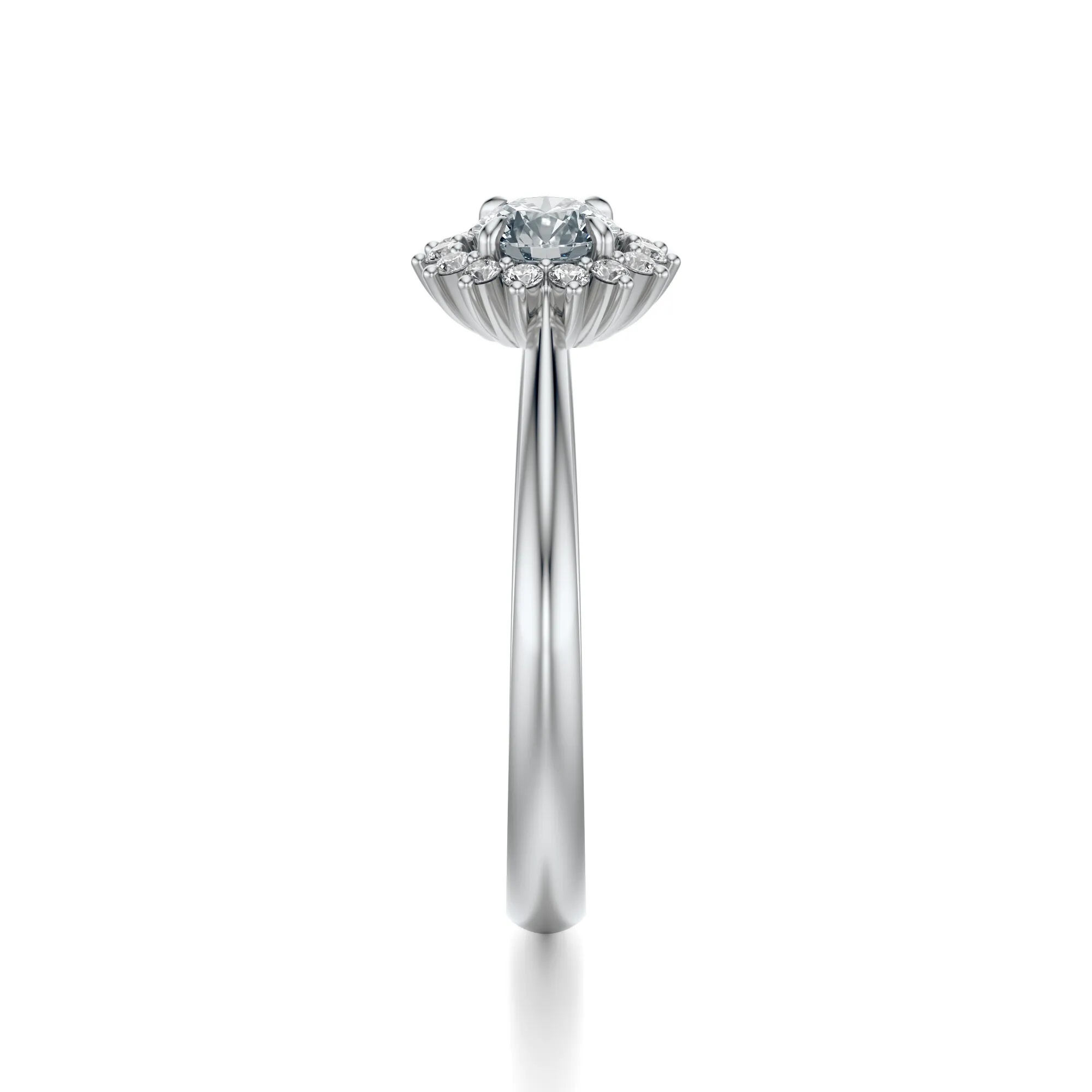 Diamenty wykorzystane w tym projekcie wyróżniają się parametrami: czystość VS2, barwa H, szlif Excellent. Kamień główny może mieć masę 0.30, 0.40, 0.50 lub 0.70 ct – zgodnie z preferencjami klienta. Mniejsze diamenty dopełniają całość, wzmacniając efekt świetlistości i luksusu. Wszystkie kamienie spełniają międzynarodowe normy jakości.