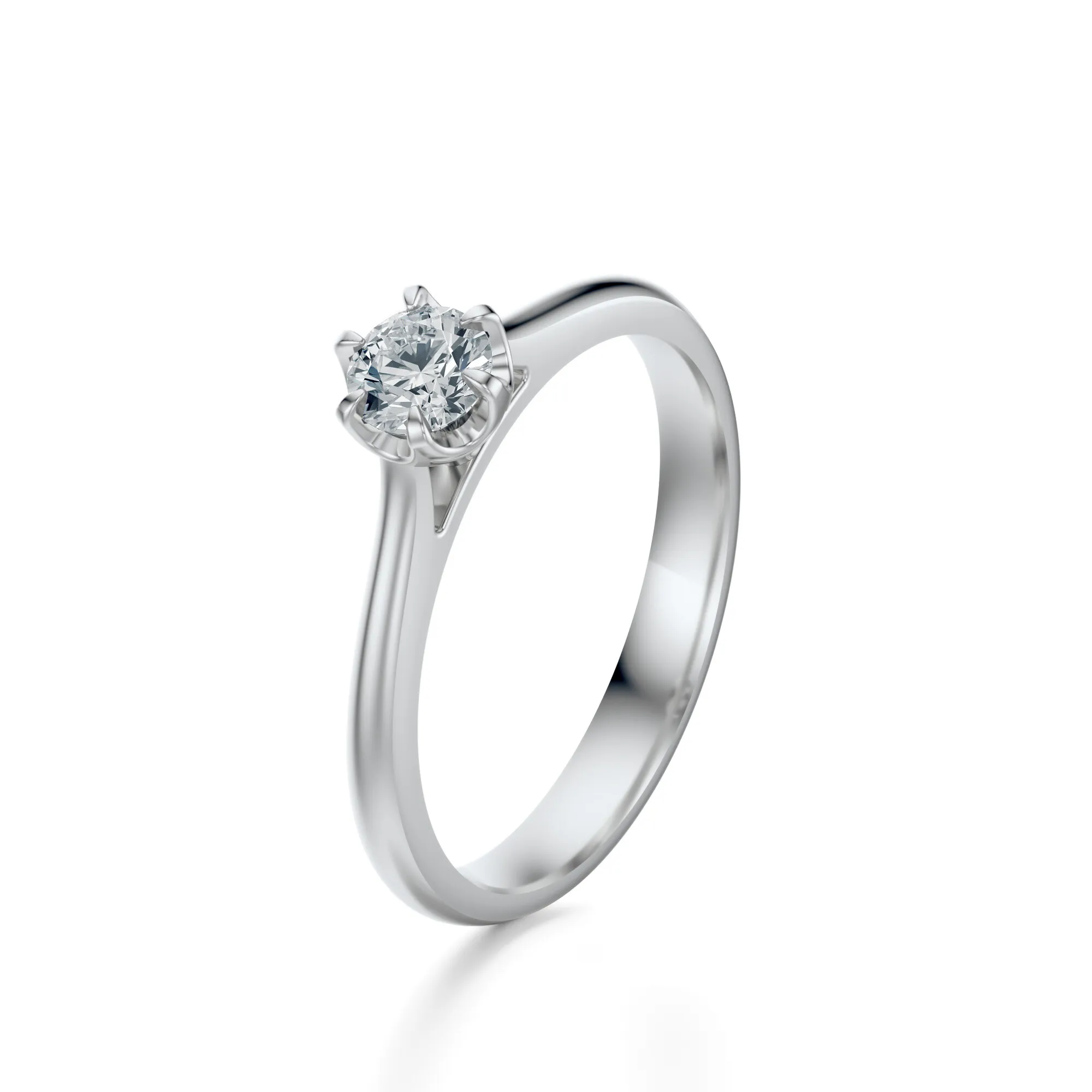 Ten klasyczny pierścionek zaręczynowy doskonale sprawdzi się zarówno jako deklaracja miłości, jak i elegancki dodatek na szczególne okazje. Białe złoto wspaniale komponuje się z naturalnym blaskiem diamentu, tworząc elegancki, a zarazem uniwersalny charakter biżuterii.