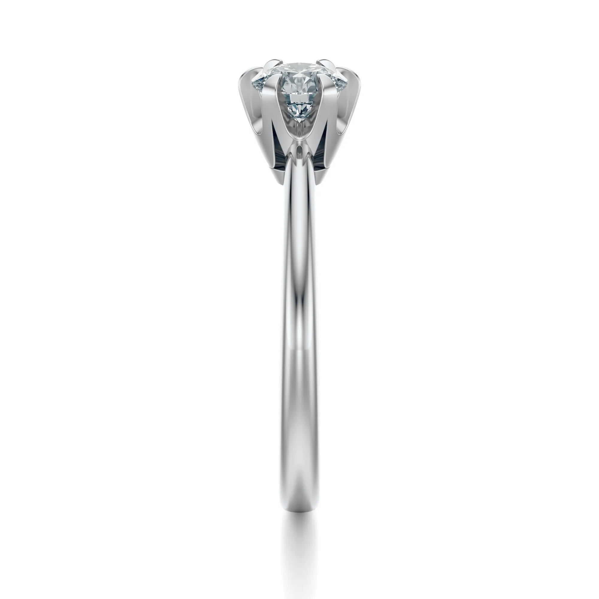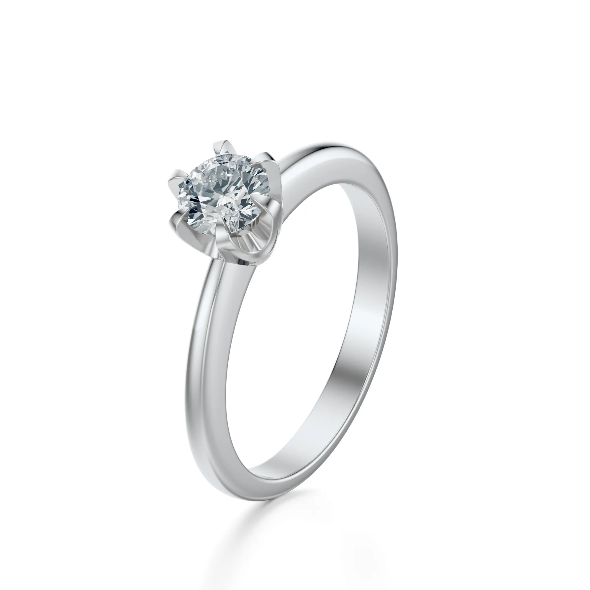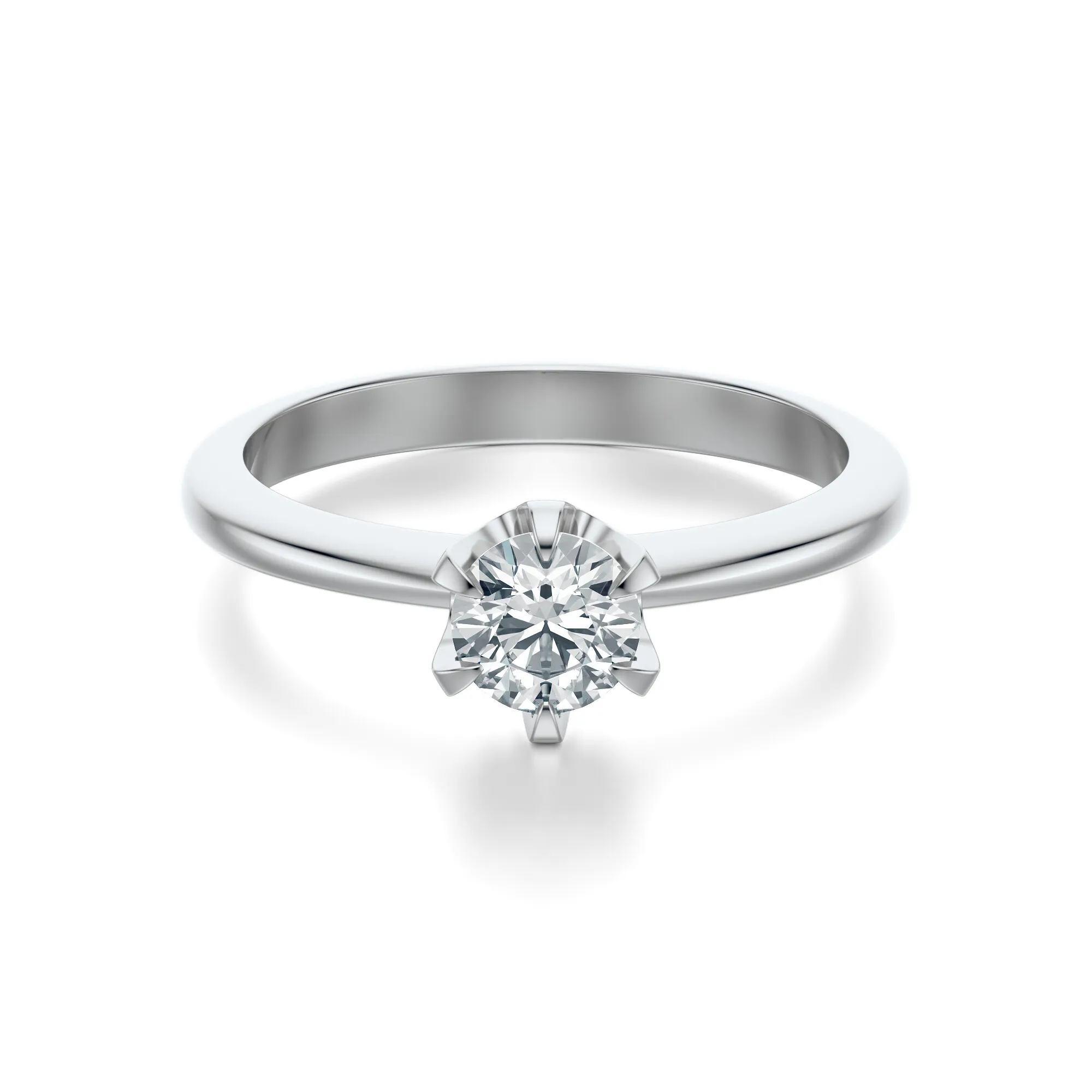 Minimalistyczna forma pierścionka podkreślona została klasycznym sześcioramiennym mocowaniem kamienia, które nadaje kompozycji lekkości i przestrzenności. To propozycja dla kobiet ceniących nowoczesną prostotę, delikatność i luksus zamknięty w harmonijnym detalu. Symbolika diamentu – trwałości, czystości i wiecznej miłości – sprawia, że pierścionek ten jest idealny na zaręczyny, rocznice lub wyjątkowe chwile w życiu.