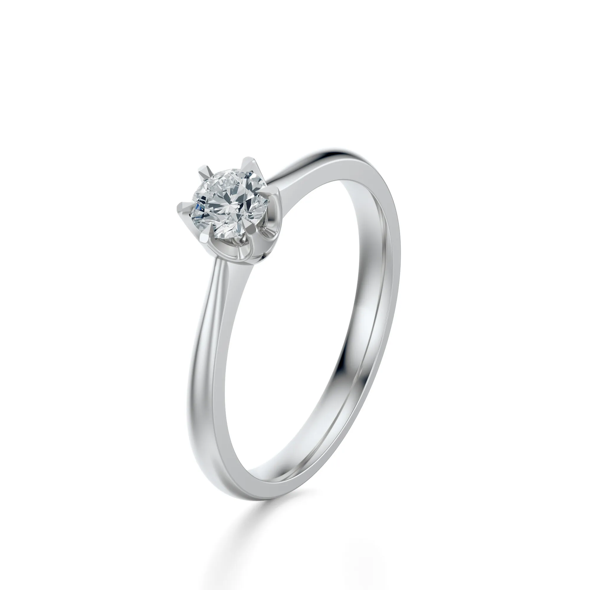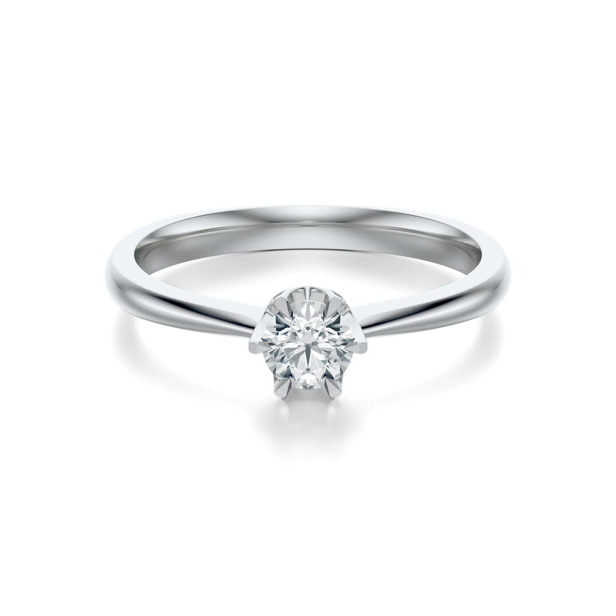 Ten pierścionek z białego złota to uosobienie czystej elegancji i ponadczasowego stylu. Wykonany ze złota o próbie 585, olśniewa chłodnym blaskiem metalu w połączeniu z perfekcyjnie oszlifowanym diamentem o klasycznym, okrągłym kształcie. Prosta forma zachwyca swoją subtelnością, a jednocześnie skupia całą uwagę na centralnym kamieniu, który mieni się przy każdym ruchu dłoni.