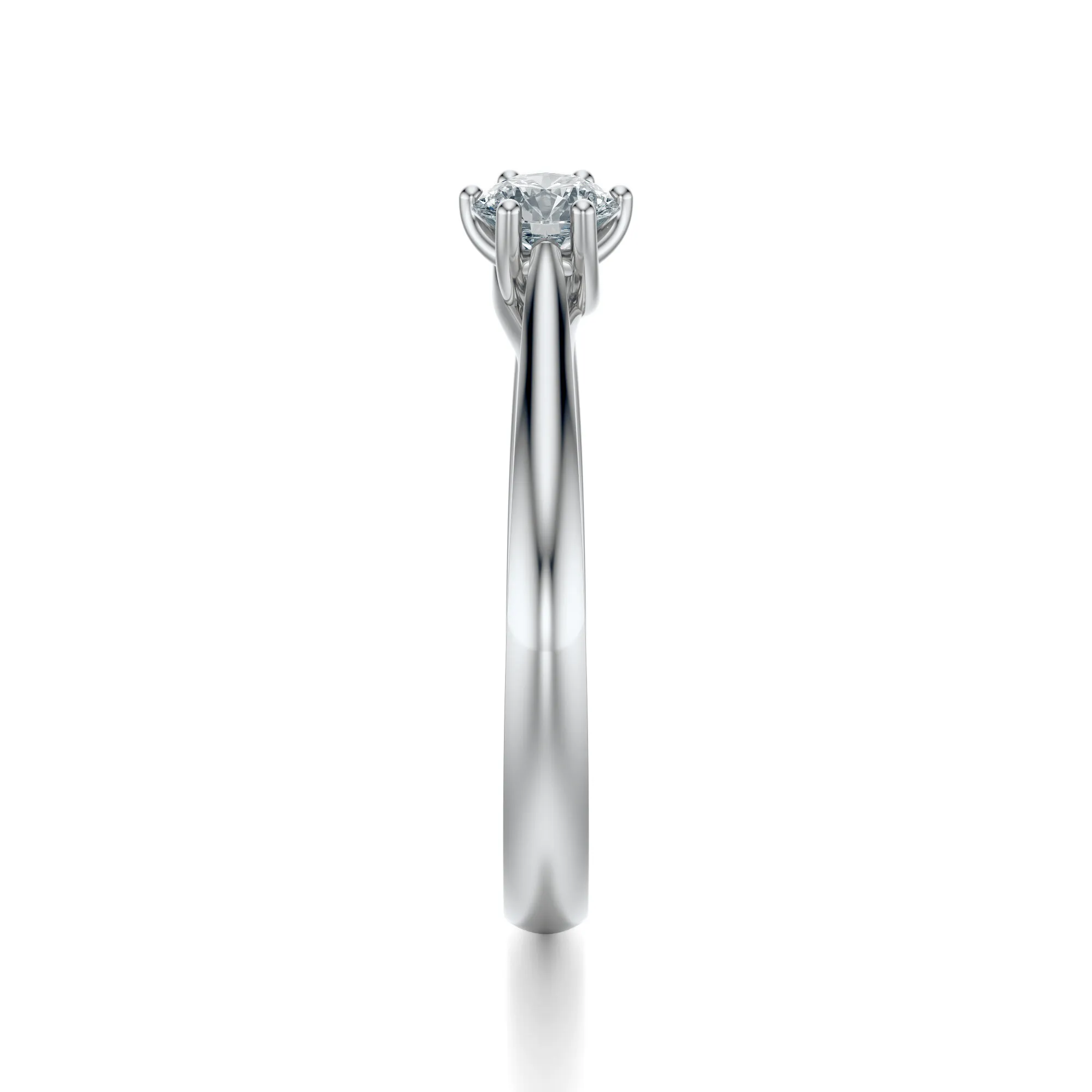 Okrągły diament, misternie podtrzymywany przez sześć delikatnych łapek, tworzy kompozycję, która optycznie wydłuża dłoń i dodaje lekkości całemu pierścionkowi. Łagodnie profilowana szyna harmonijnie prowadzi wzrok ku kamieniowi, eksponując jego naturalny blask. Pierścionek doskonale odnajduje się w stylistyce klasycznej, lecz subtelne detale dodają mu współczesnego charakteru.