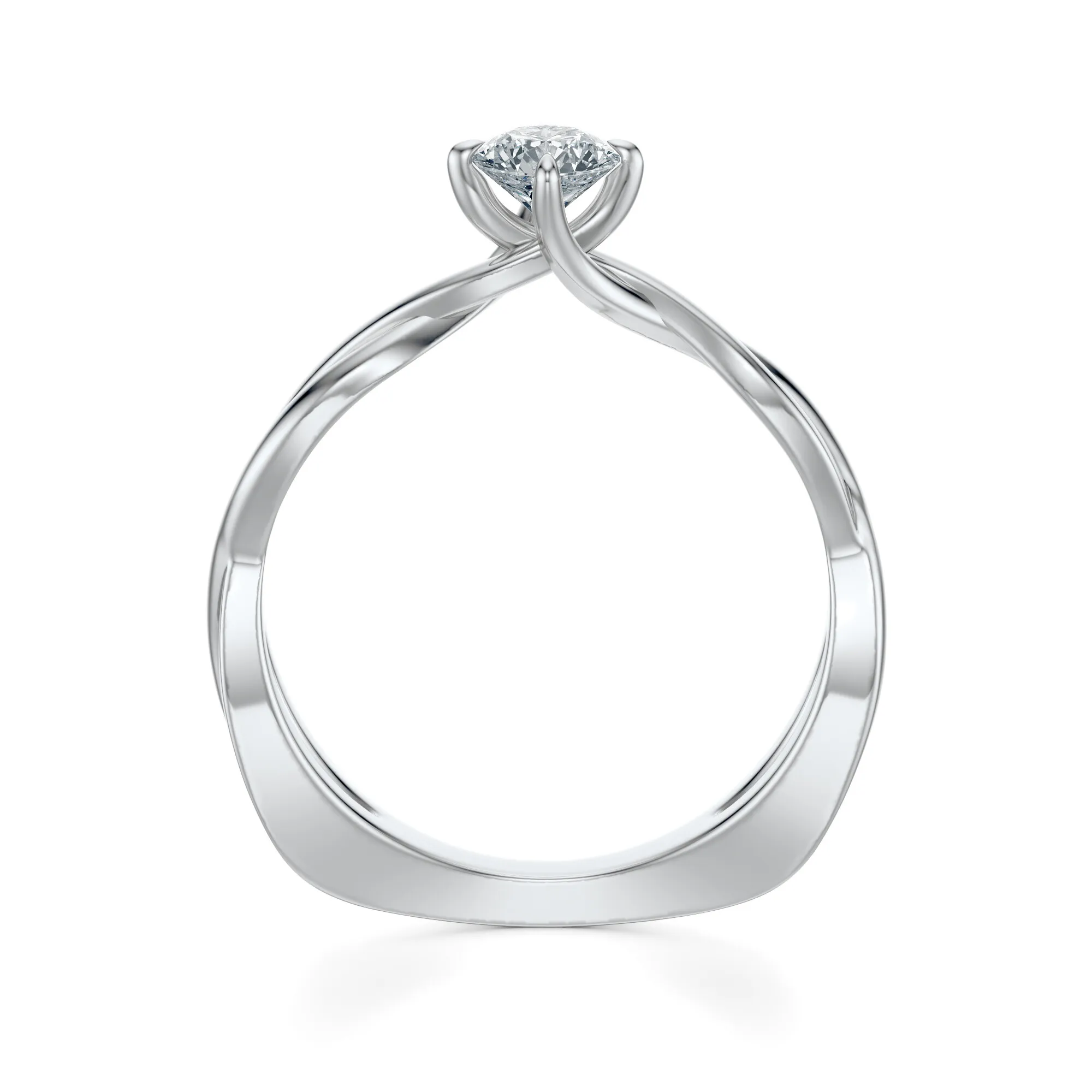 Skręcona konstrukcja obrączki nadaje pierścionkowi wyrafinowanego charakteru, symbolizując splatające się ścieżki życia dwojga ludzi. To idealna propozycja dla osób ceniących czystość formy i nieoczywistą elegancję – harmonijny wybór zarówno dla minimalistów, jak i miłośników artystycznych detali. Błyszczący diament dodaje całości luksusowego wymiaru, czyniąc pierścionek doskonałym wyborem na zaręczyny, rocznicę lub wyjątkowy prezent pełen znaczenia.