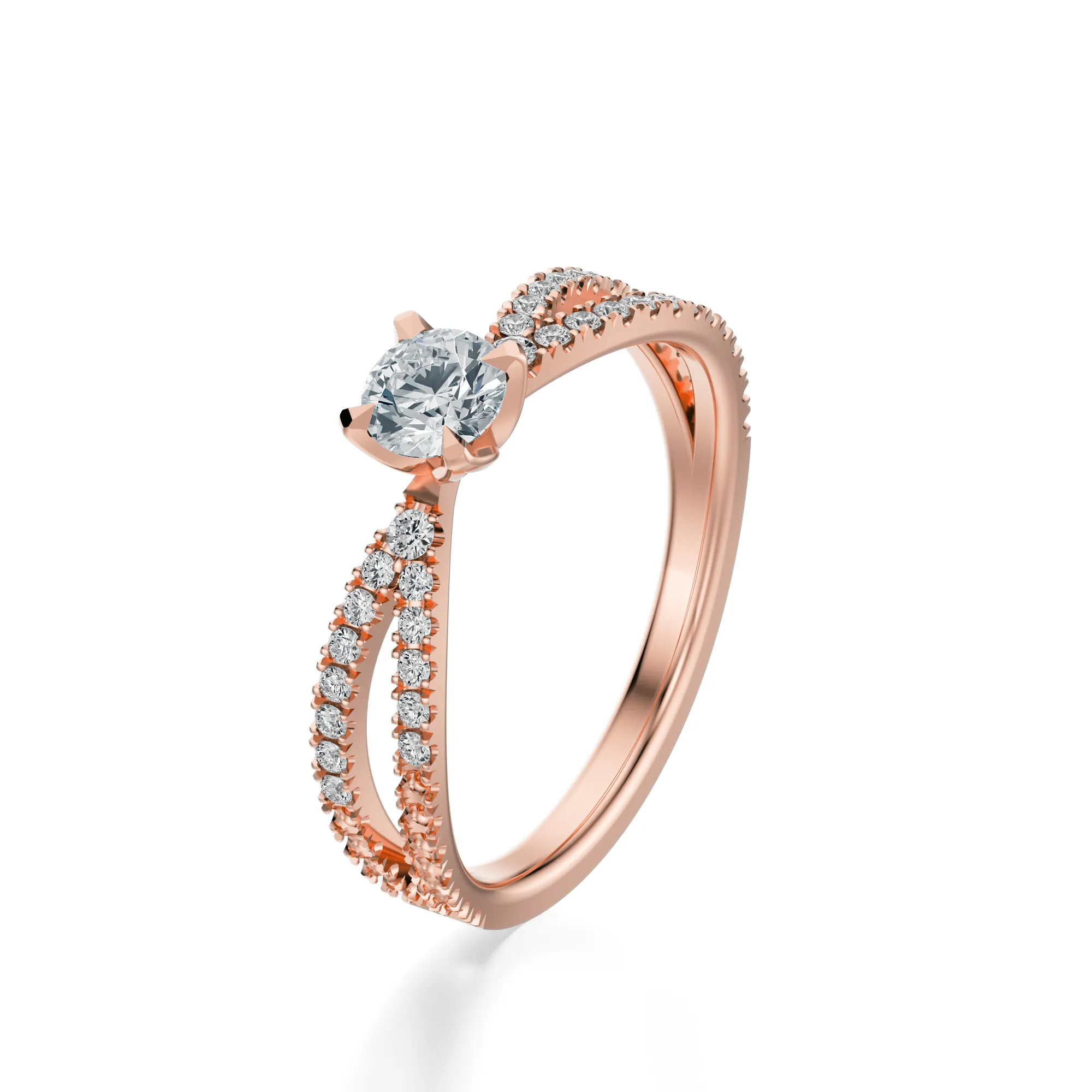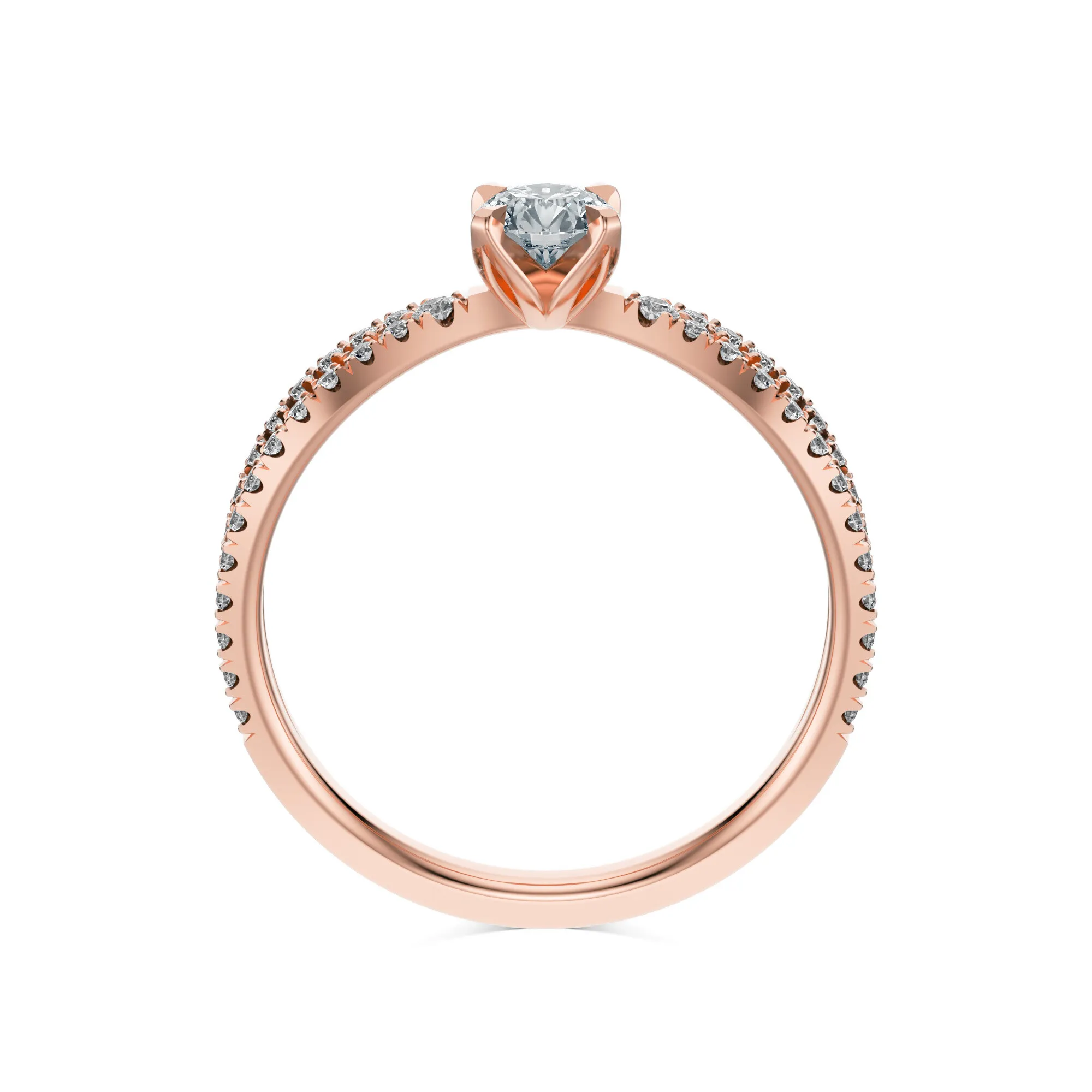 Zastosowany w projekcie diament ma wyjątkowe parametry: czystość VS2, barwa H, szlif Excellent. Możliwość wyboru masy kamienia (0.30, 0.40, 0.50 lub 0.70 ct) pozwala na dopasowanie pierścionka do indywidualnych preferencji. Starannie dobrany szlif nadaje diamentowi intensywny blask, który pięknie kontrastuje z ciepłym odcieniem różowego złota.