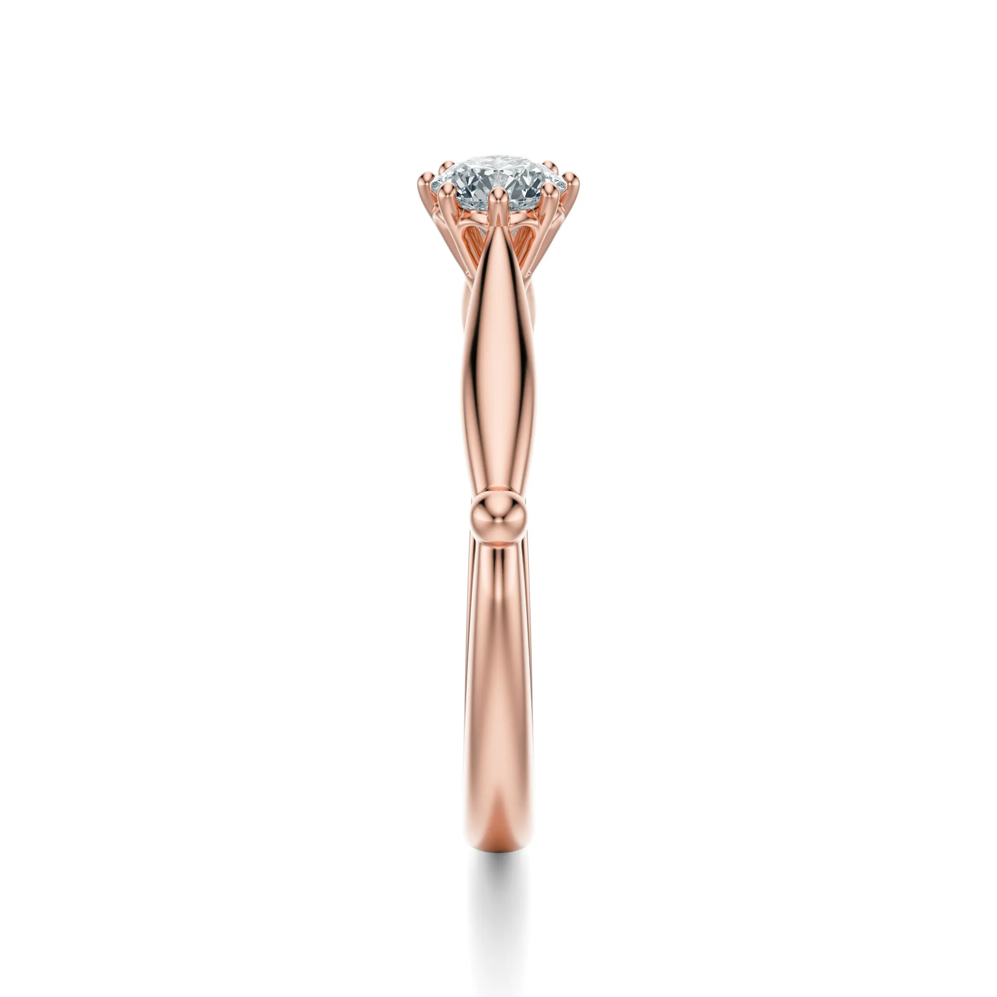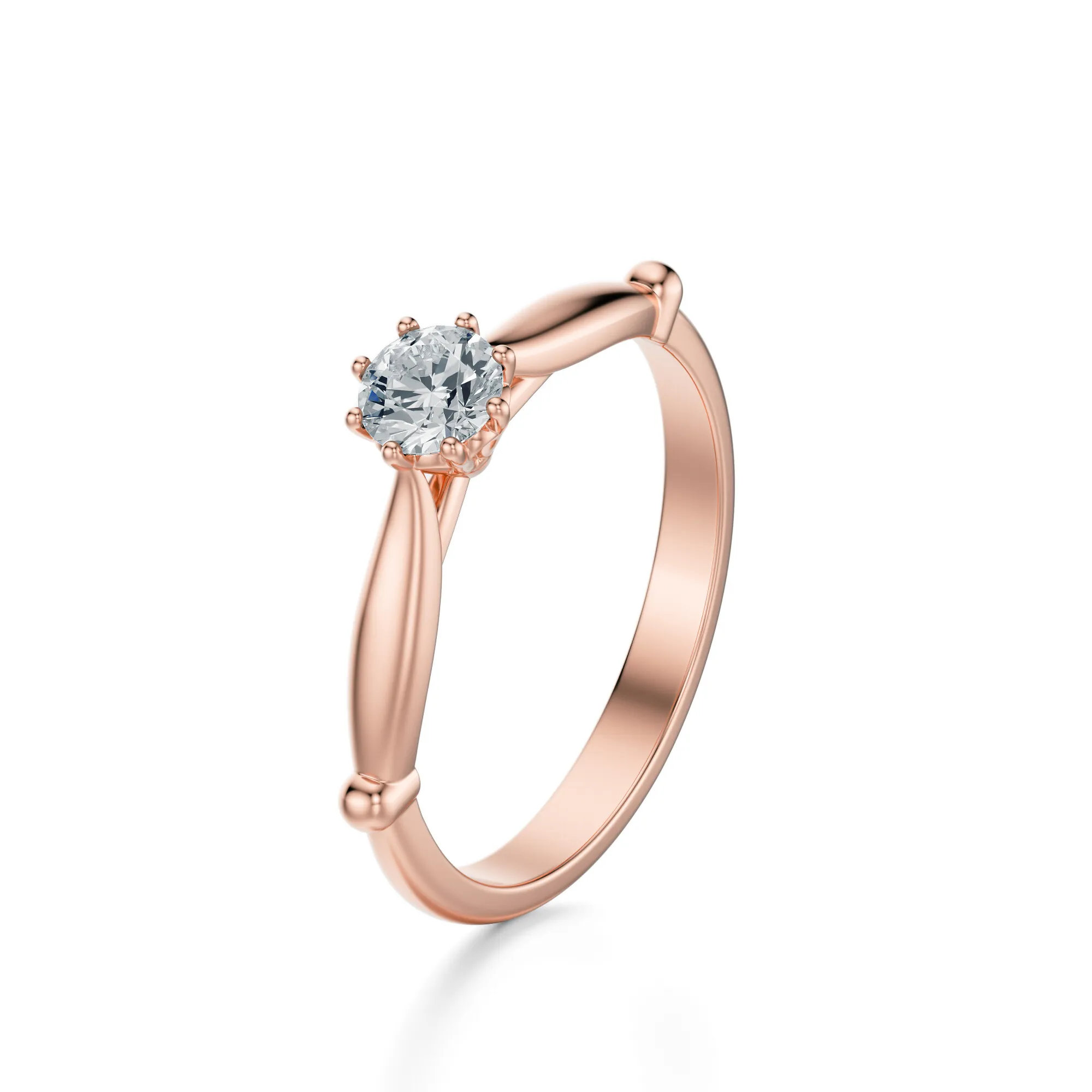 Projekt opiera się na minimalistycznym designie, w którym każdy detal ma znaczenie. Sześć precyzyjnie rozmieszczonych łapek utrzymuje kamień w centrum, podkreślając jego wyrazistość i zapewniając maksymalny dostęp światła. To idealny wybór dla osób ceniących klasykę z delikatną nutą nowoczesności. Różowe złoto symbolizuje uczuciowość i romantyzm, natomiast diament – trwałość i czystość emocji. Ten pierścionek świetnie sprawdzi się jako prezent zaręczynowy, ale będzie również doskonałą pamiątką z okazji rocznicy lub innych ważnych momentów.