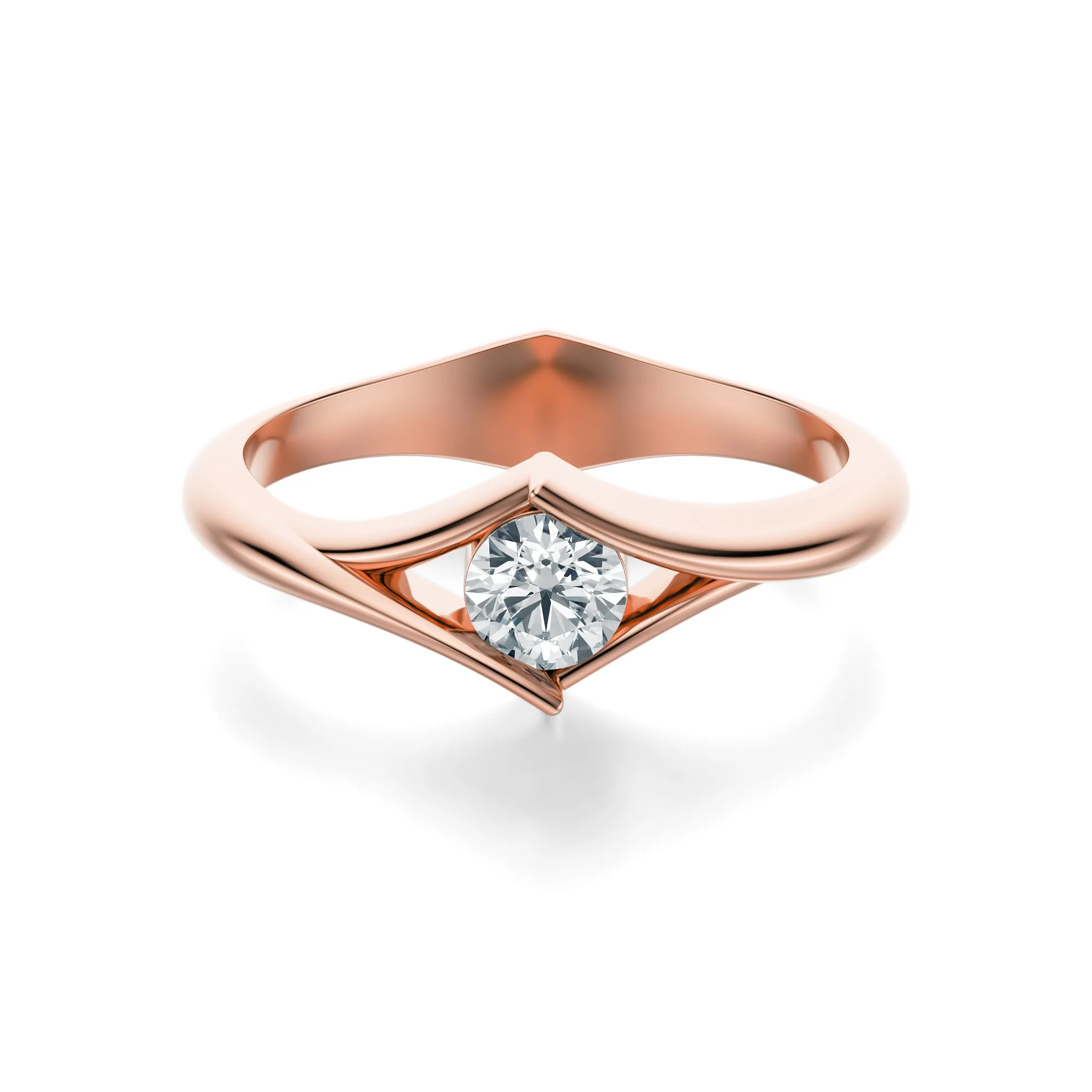 Zachwycający pierścionek wykonany z różowego złota o próbie 585 to kwintesencja subtelnej elegancji i współczesnej formy. Zrównoważone połączenie szlachetnego metalu o delikatnej, ciepłej barwie oraz olśniewającego diamentu sprawia, że ten model emanuje ponadczasowym urokiem. Diament w okrągłym szlifie osadzony jest w wyjątkowej oprawie, która harmonijnie oplata kamień, tworząc spójną i stylową całość.