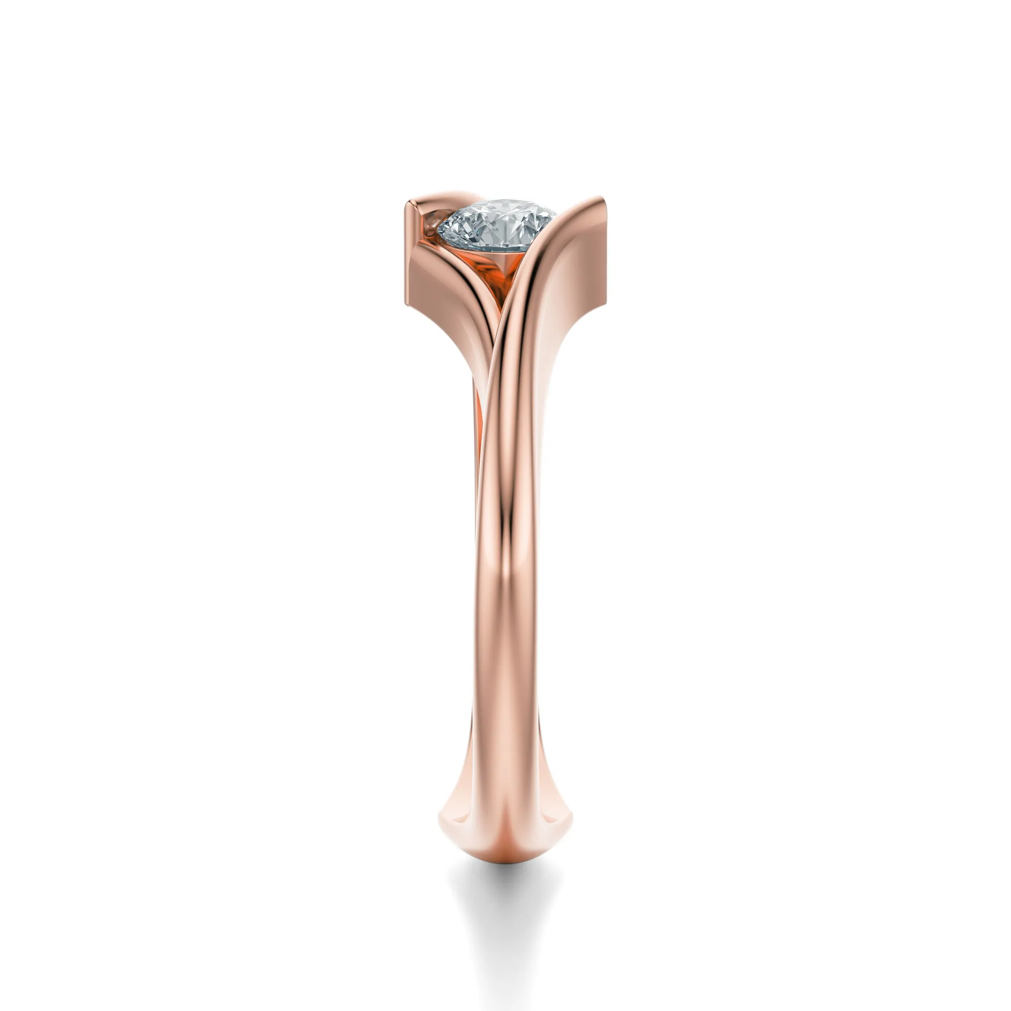 Projekt pierścionka inspirowany jest nowoczesnym minimalizmem – jego dynamiczna linia i unikalne osadzenie kamienia podkreślają indywidualność biżuterii. To doskonały wybór dla kobiet ceniących wyrafinowany styl bez zbędnych zdobień. Diament symbolizuje trwałość uczuć, lojalność i czystość intencji – wartości idealne na pierścionek zaręczynowy, prezent rocznicowy czy osobisty talizman.