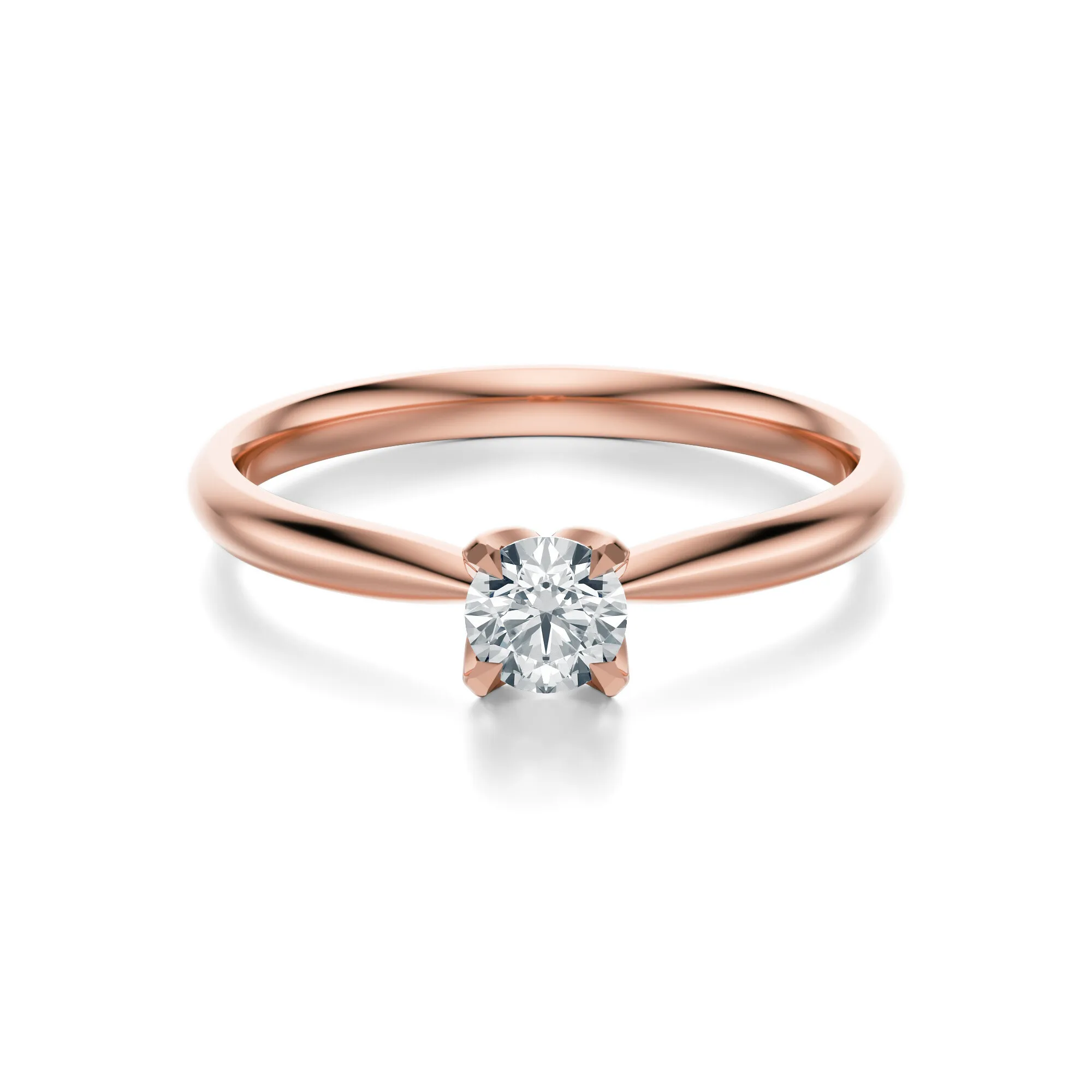 Ten olśniewający pierścionek z różowego złota to uosobienie subtelnej elegancji i romantyzmu. Wykonany ze złota o próbie 585, zachwyca ciepłym odcieniem metalu, który pięknie współgra z lśniącym diamentem osadzonym centralnie w klasycznej oprawie. Jego minimalistyczna forma w połączeniu z intensywnym blaskiem sprawia, że jest idealnym wyborem dla kobiet ceniących wyrafinowany styl.