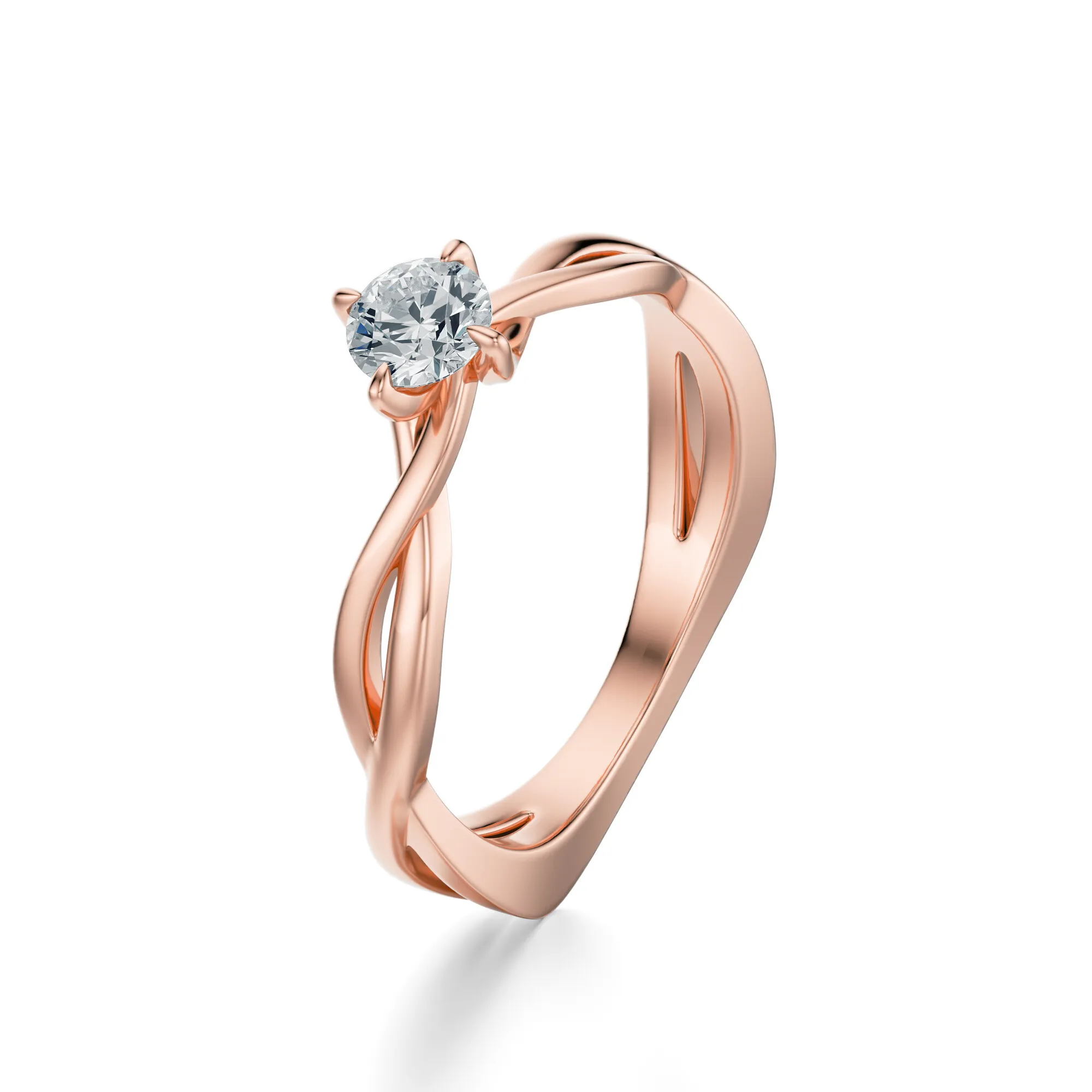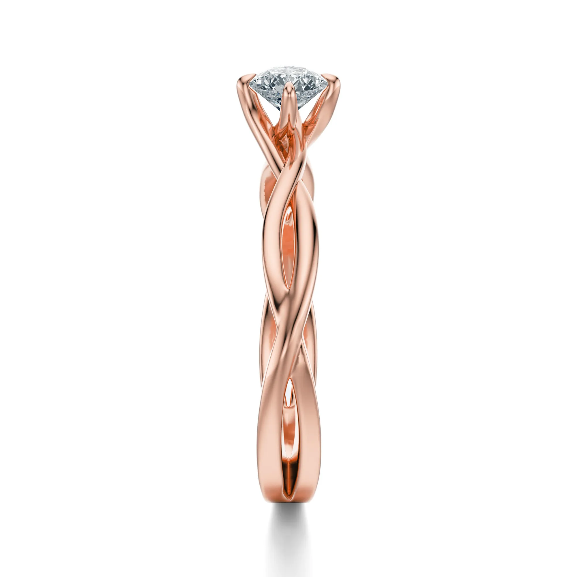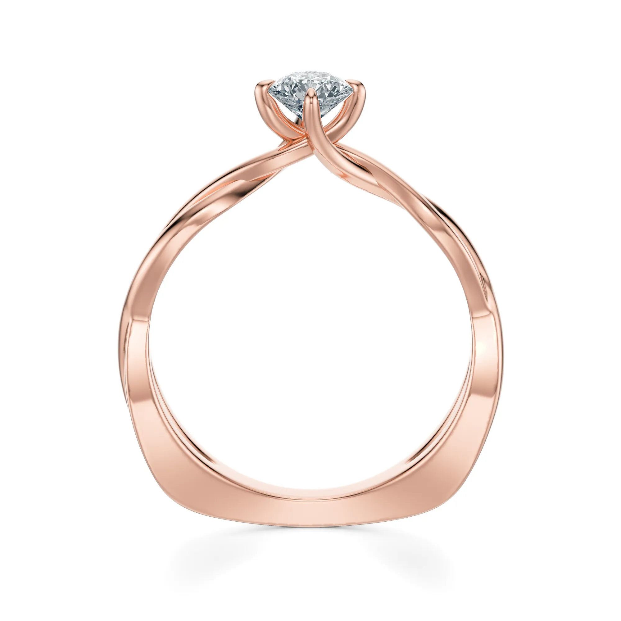 Twórczy design pierścionka nadaje mu nowoczesnej lekkości z nutą romantyzmu. Skręcony kształt obrączki symbolizuje nierozerwalną więź i wspólną drogę dwojga zakochanych. To wybór dla kobiet, które cenią oryginalność zaklętą w eleganckiej formie – idealny pierścionek zaręczynowy, jak również prezent na rocznicę czy wyjątkową okazję. Różowe złoto dodaje mu ciepła, delikatności i kobiecego wdzięku.