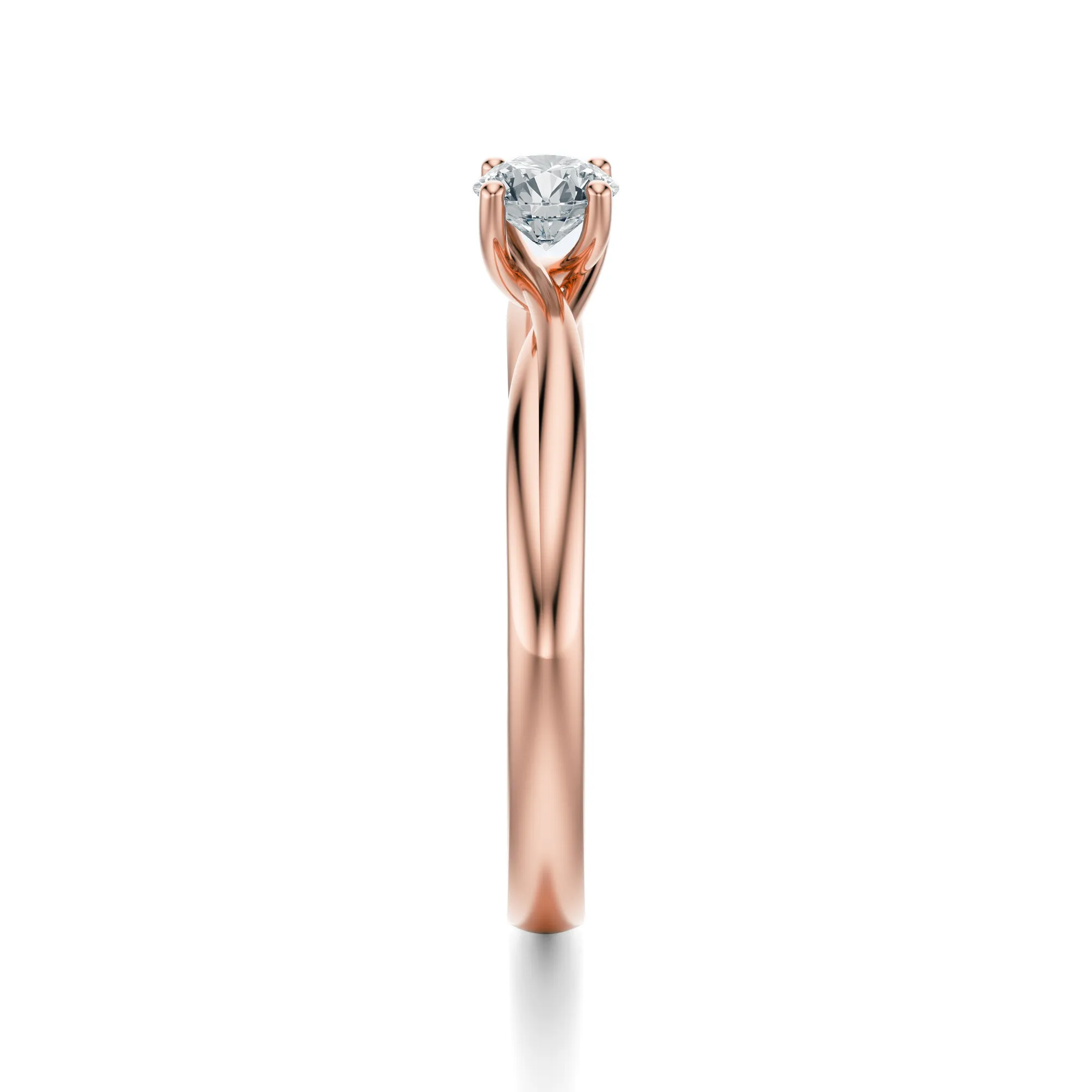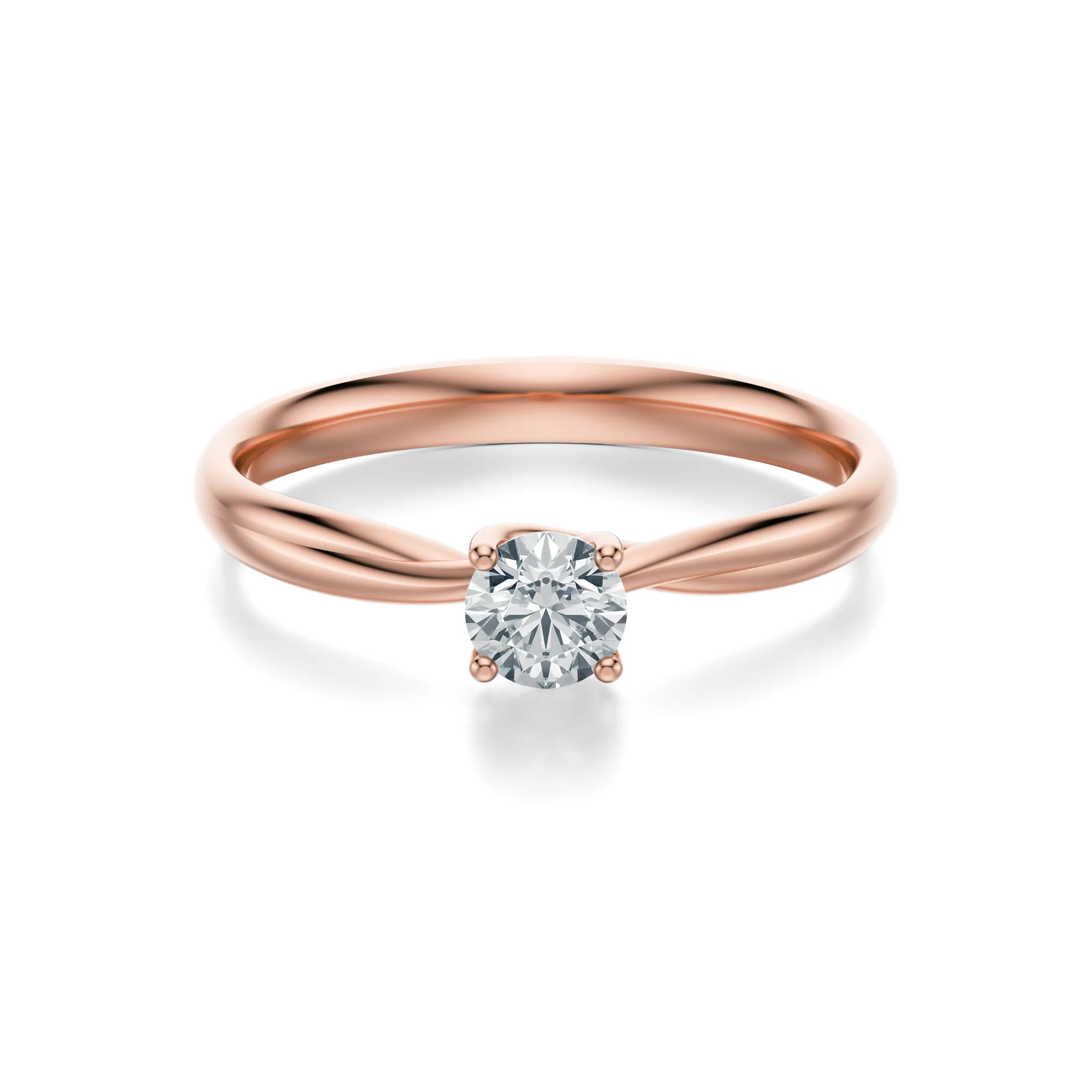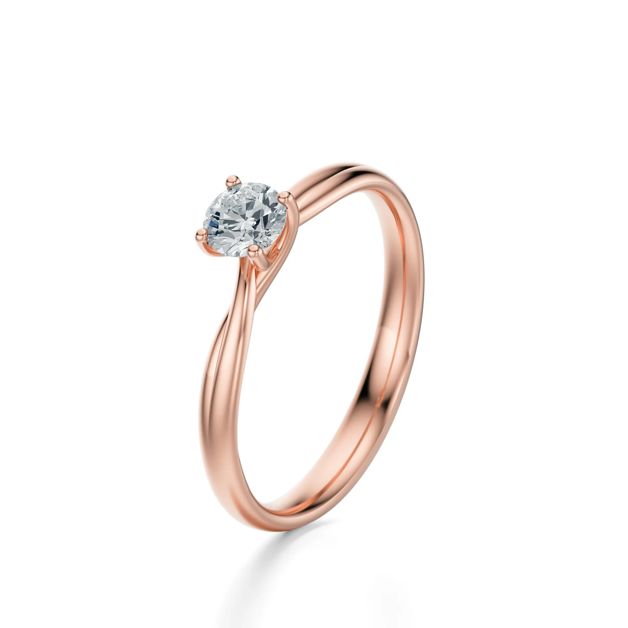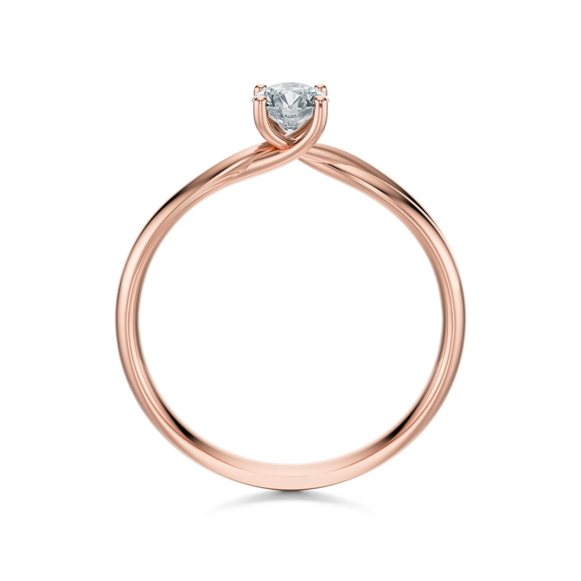 Delikatna obrączka wykonana z różowego złota delikatnie oplata osadzony w koronie okrągły diament, nadając pierścionkowi lekkości i wyjątkowego uroku. Jego nowoczesny, skręcony profil podkreśla naturalne piękno kamienia, a jednocześnie zapewnia komfort noszenia. To propozycja idealna dla osób poszukujących eleganckiej i romantycznej biżuterii. Symbolika zamknięta w pierścionku – trwałość uczucia, czystość intencji i siła emocji – czyni go doskonałym wyborem na zaręczyny, rocznice czy inne wyjątkowe momenty.