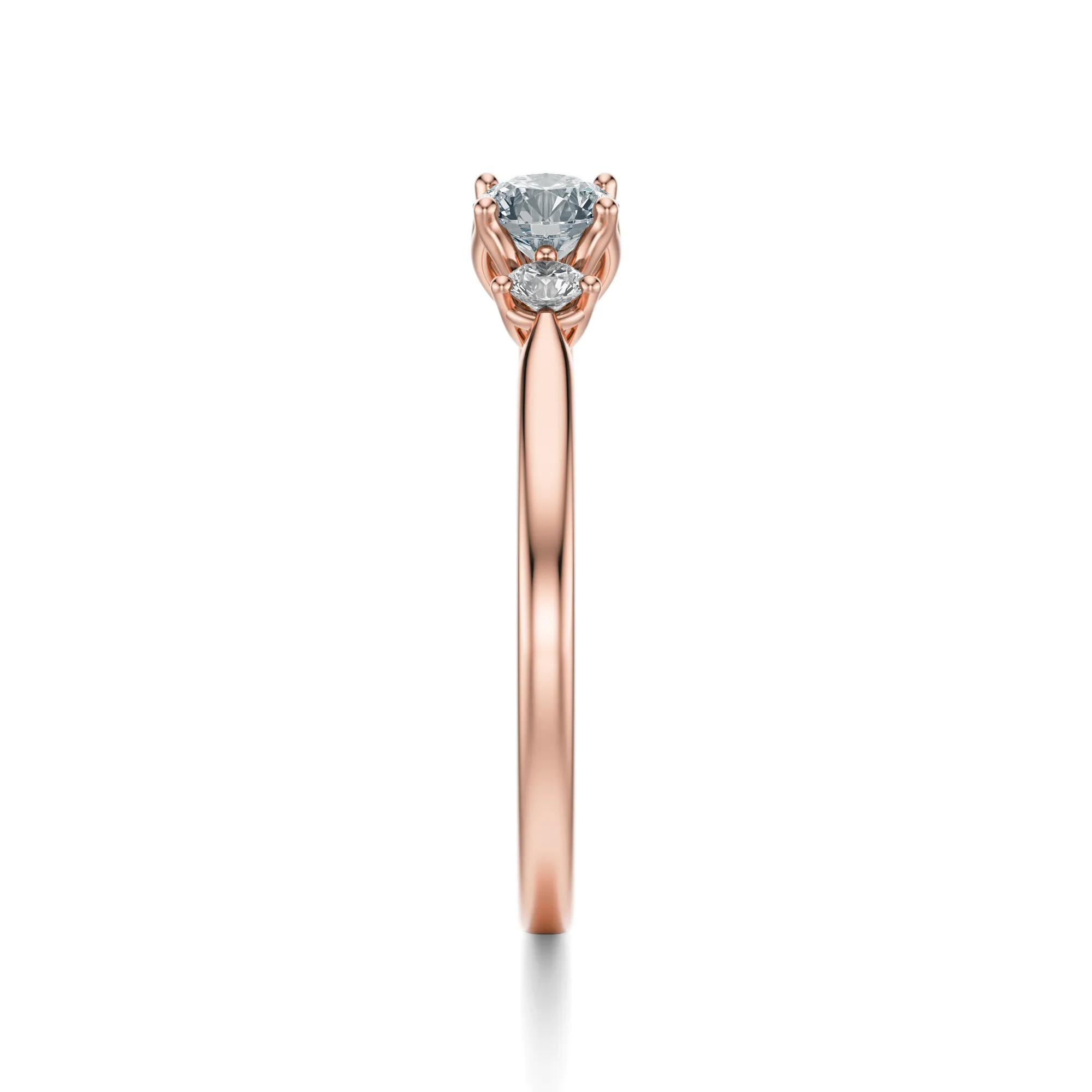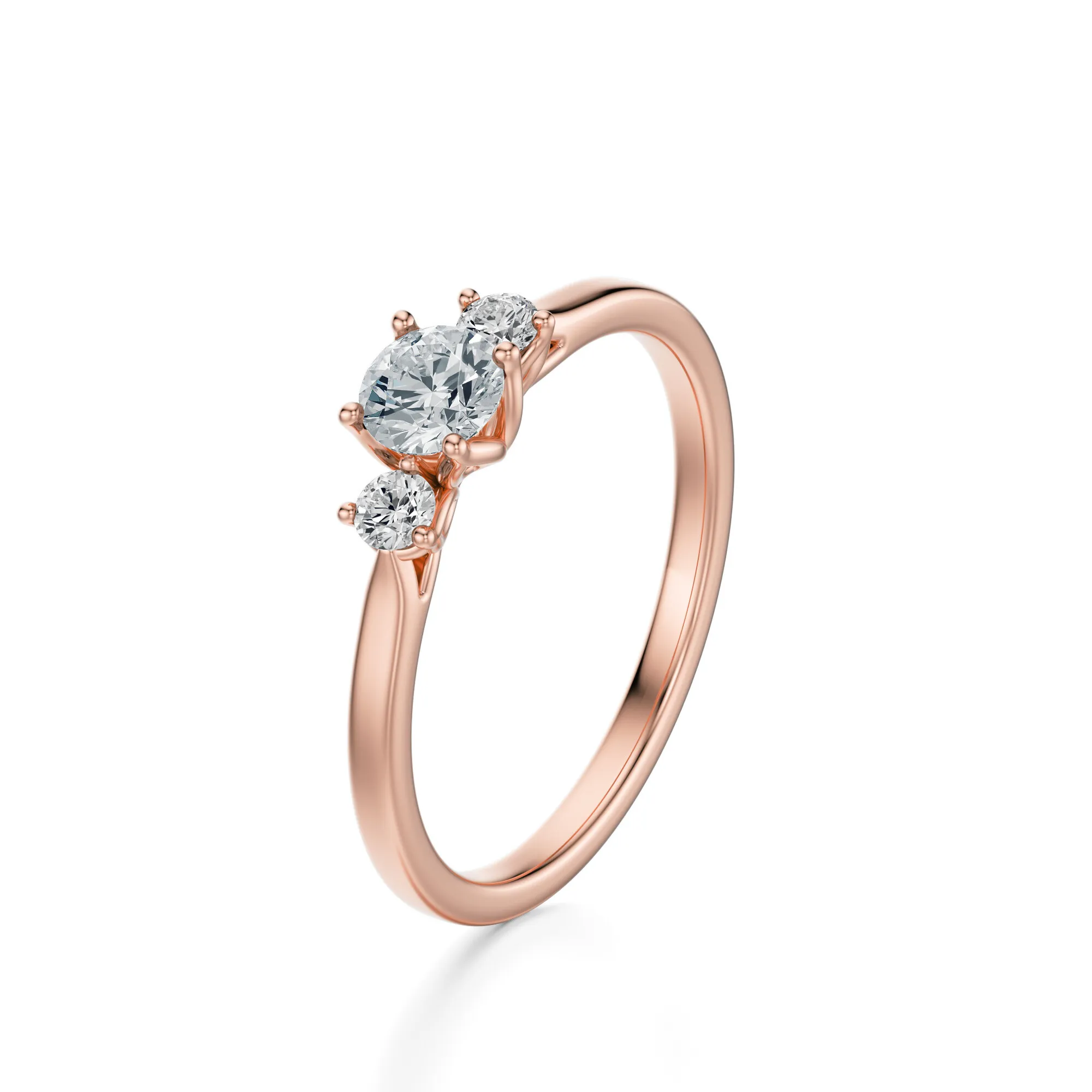 Trzy diamenty rozmieszczone centralnie w jednej linii to ponadczasowy symbol miłości: wspomnienie, teraźniejszość i przyszłość – każda faza związku zaklęta w blasku kamieni. To pierścionek zaprojektowany z myślą o osobach ceniących elegancję i prostotę, z nutą romantycznej oryginalności. Doskonale sprawdzi się jako klasyczny pierścionek zaręczynowy, ale również jako prezent upamiętniający ważne momenty.