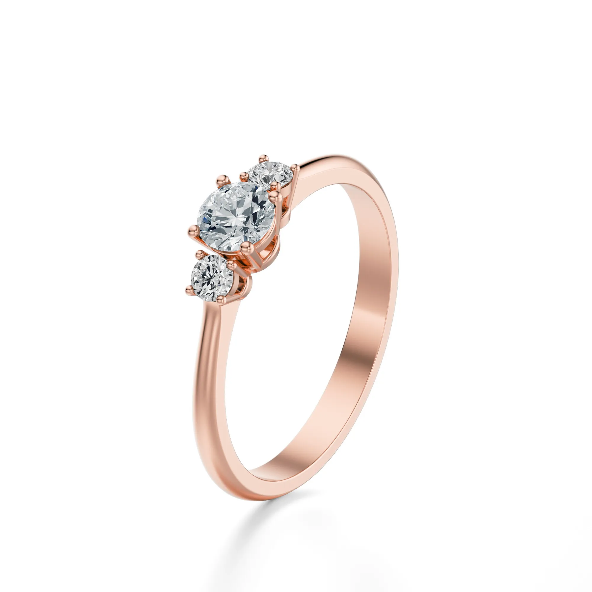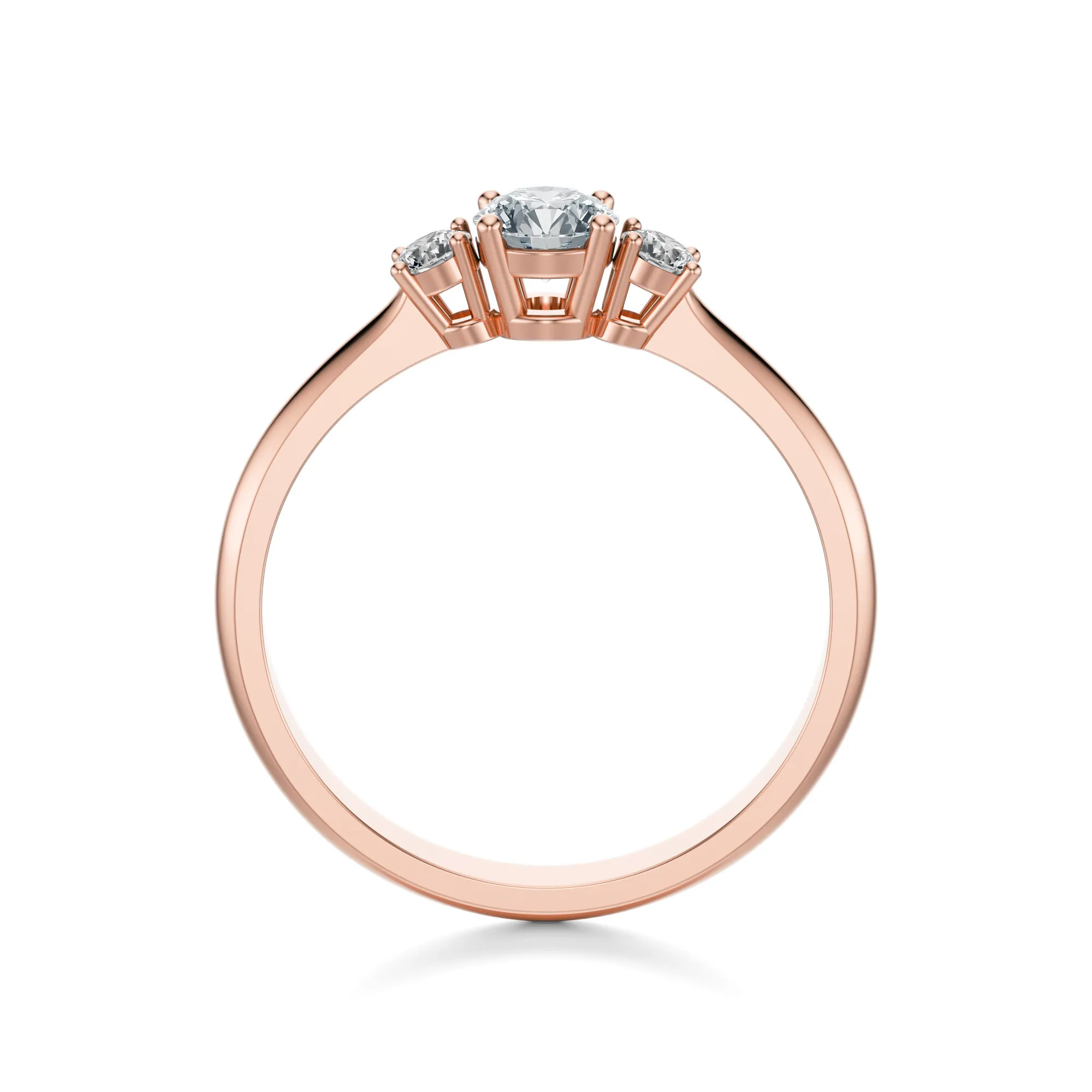 Ten elegancki pierścionek z różowego złota to esencja subtelnej luksusowości i romantycznego designu. Wykonany ze złota o próbie 585 w ciepłym odcieniu różu, zachwyca wyważoną formą oraz lśnieniem trzech starannie oszlifowanych okrągłych diamentów. Delikatna konstrukcja i klasyczne proporcje czynią go wyjątkową ozdobą, która subtelnie podkreśla naturalne piękno dłoni.