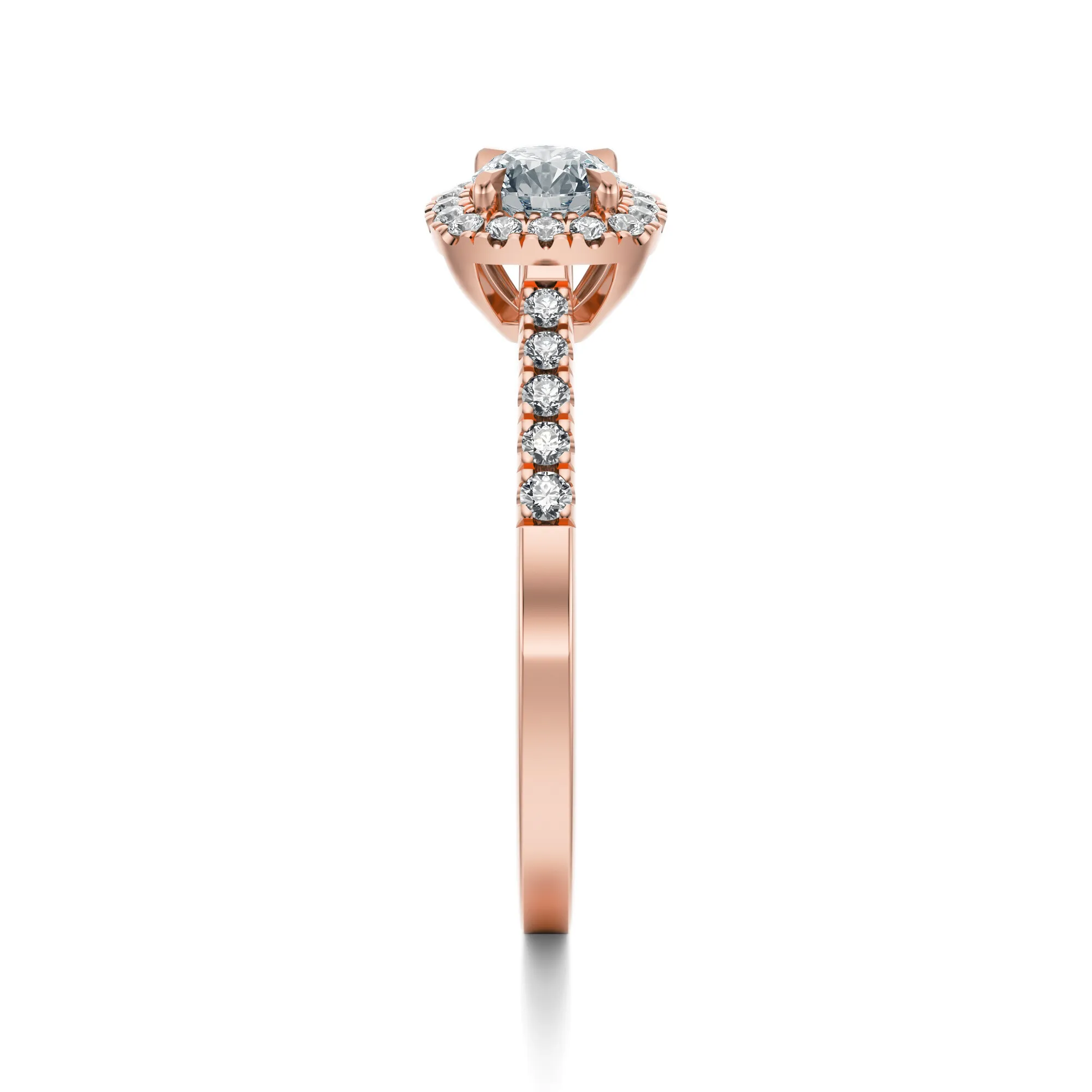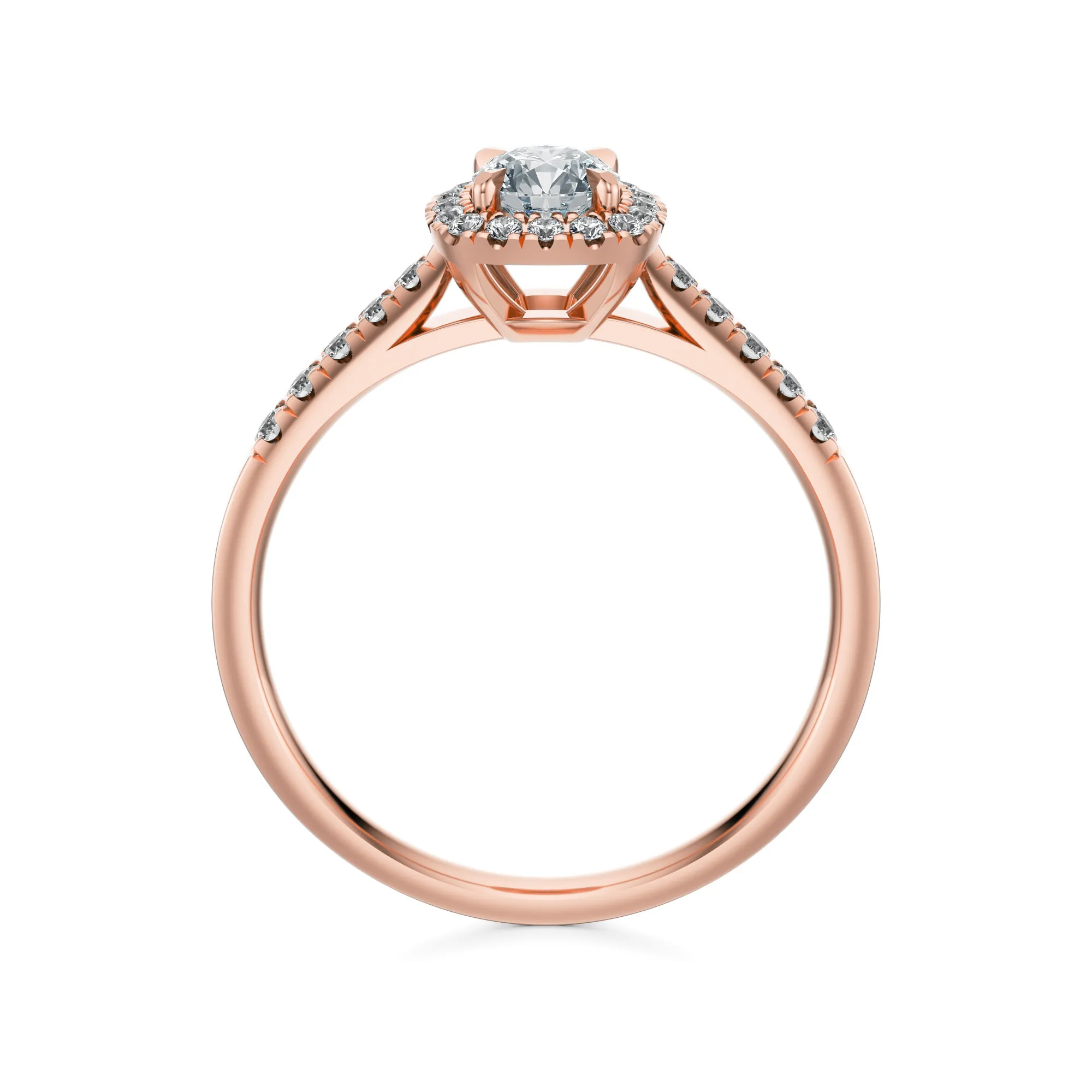 Ten elegancki pierścionek z różowego złota przyciąga spojrzenia olśniewającym blaskiem i subtelną nutą romantyzmu. Wykonany ze złota o próbie 585, zachwyca szlachetną tonacją, która w połączeniu z perfekcyjnie oszlifowanymi okrągłymi diamentami tworzy niezwykle kobiecą i wyrafinowaną kompozycję. Jego misternie zaprojektowany kształt oraz starannie rozmieszczone kamienie czynią go wyrazem doskonałego smaku.