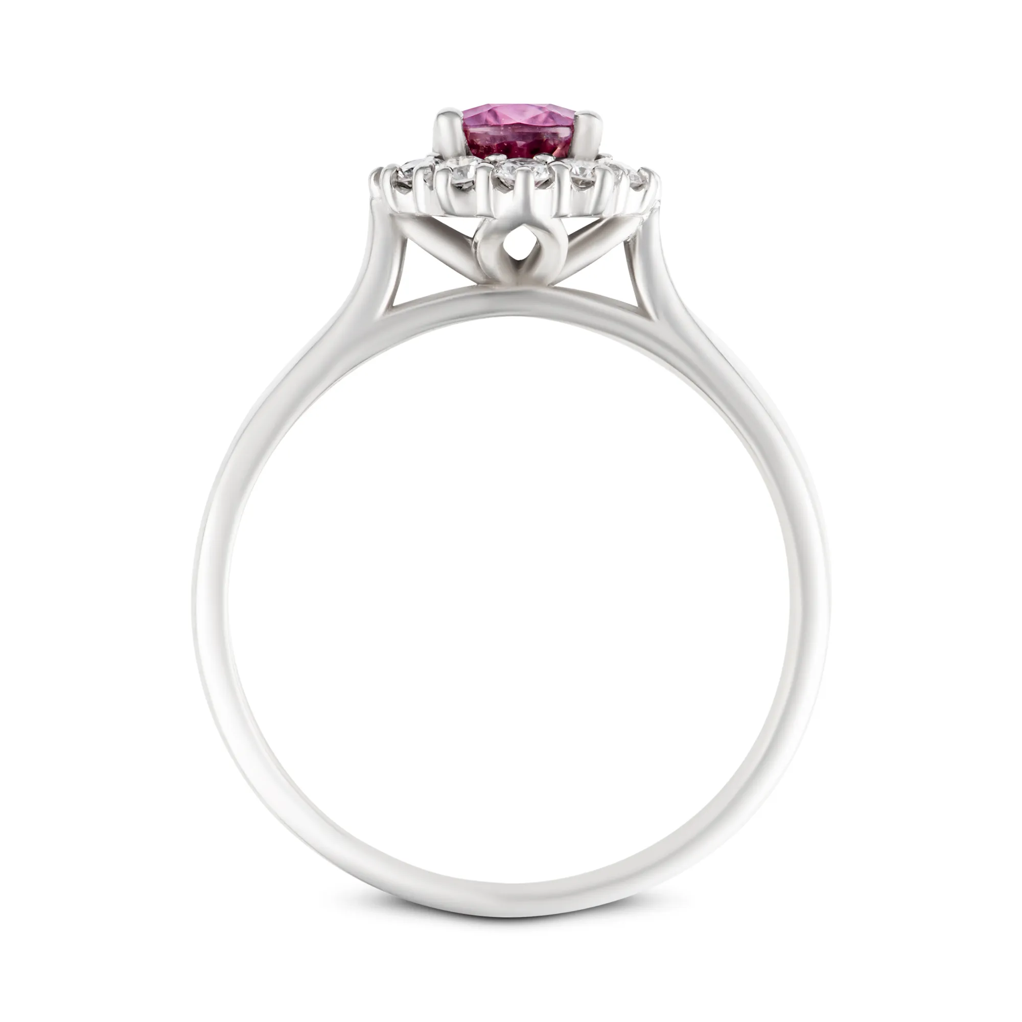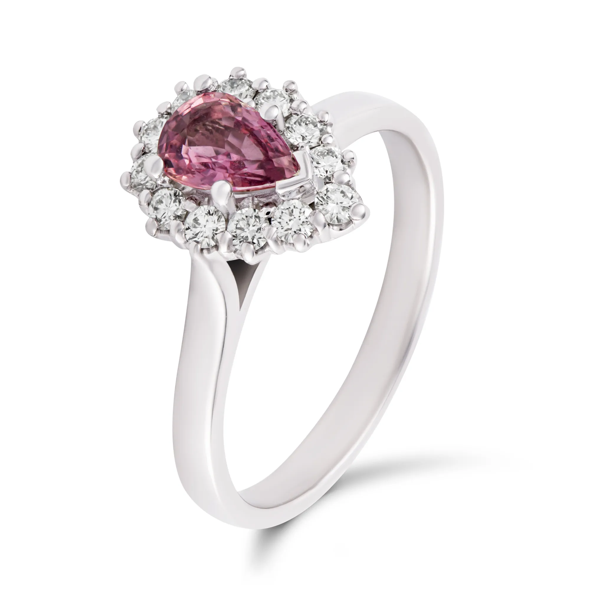 Elegancki pierścionek z różowym szafirem to idealna propozycja dla kobiet ceniących subtelne, romantyczne detale. Szafir w odcieniu różu harmonijnie współgra z lśniącymi diamentami, tworząc biżuterię pełną wdzięku i szyku. Wykonany z wysokiej jakości złota, ten pierścionek sprawdzi się jako wyjątkowy prezent na specjalne okazje, takie jak zaręczyny czy rocznice. Delikatne, a zarazem wyraziste połączenie kamieni sprawia, że pierścionek ten będzie pięknym uzupełnieniem każdej eleganckiej stylizacji. Diamenty dodają blasku i wyrafinowanego charakteru, który przyciąga wzrok. Idealnie komponuje się z bransoletką z różowymi szafirami oraz subtelnymi kolczykami z diamentami.