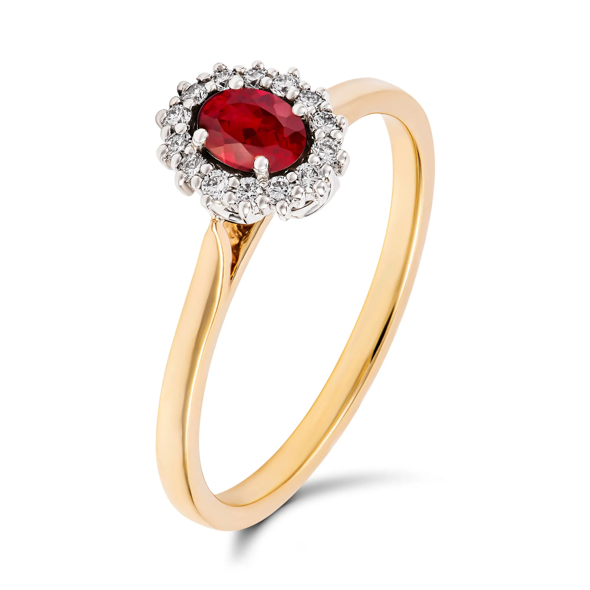 Złoty pierścionek z rubinem i diamentami wydaje się doskonałą propozycją dla kobiet w każdym wieku. Nie tylko dla tych, które uwielbiają czerwień rubinu, jak i dla tych, które stawiają w wyborze biżuterii na elegancję i styl. Pierścionek złoty z rubinem eksponuje w swoim centrum piękno owalnego rubinu, które dodatkowo wydobywają otaczające go drobne diamenty. Całość osadzona jest w łapkach i koronie z białego złota