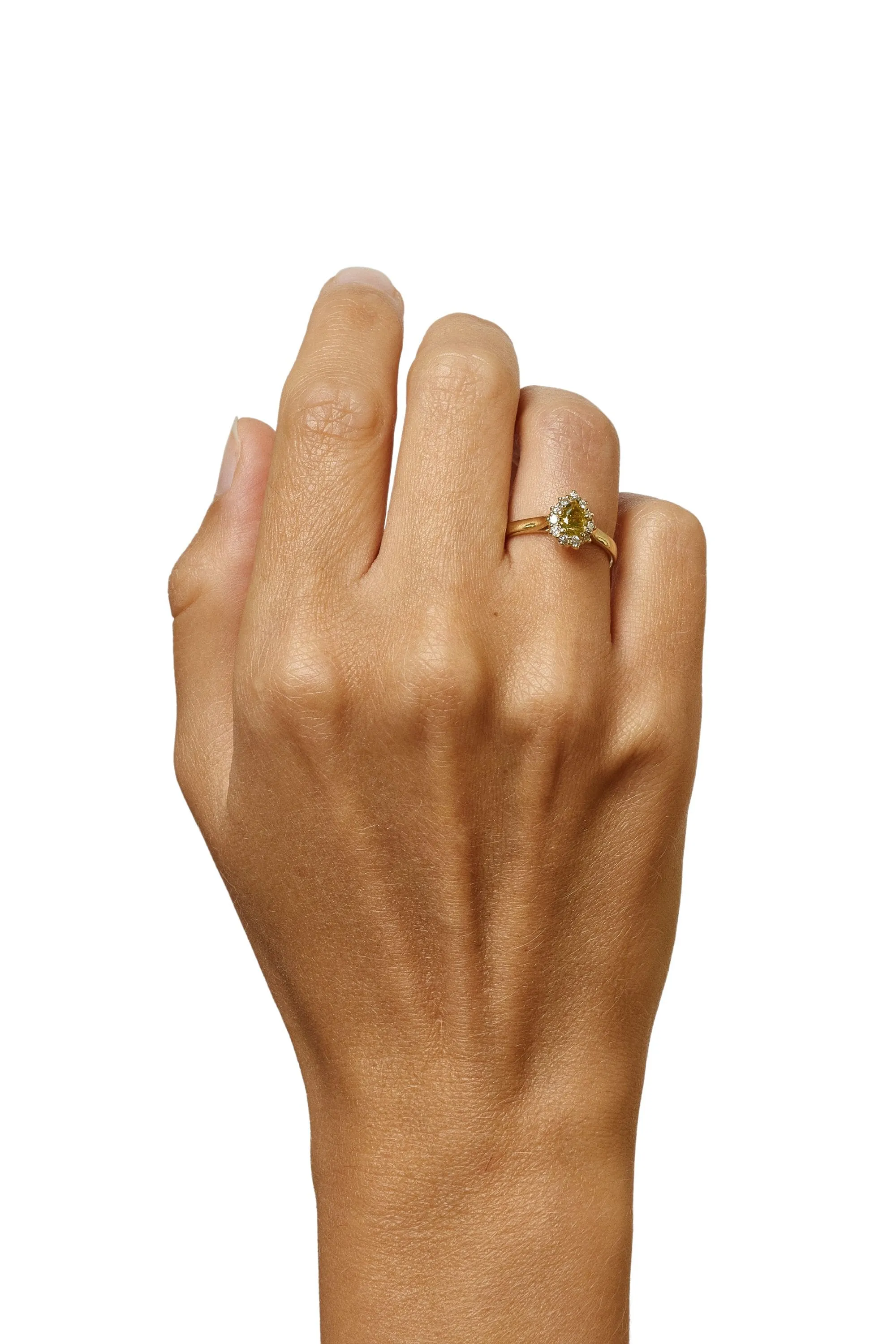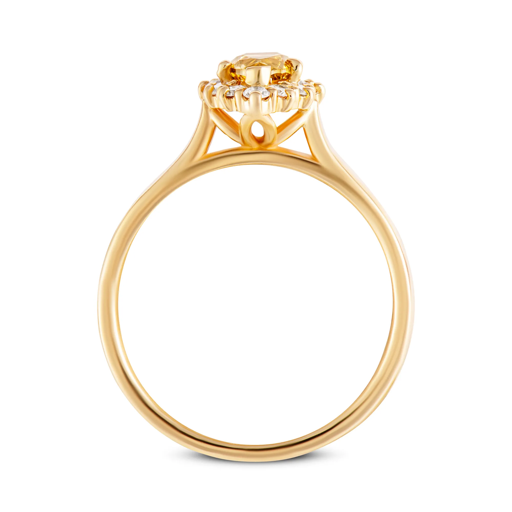Ten projekt łączy w sobie intensywną barwę żółtego diamentu z klasycznym połyskiem bezbarwnych brylantów, tworząc wyjątkową kompozycję pełną blasku i koloru. To nie tylko symbol luksusu i wyrafinowania, ale także dowód na mistrzostwo i precyzję rzemiosła jubilerskiego. Centralny kamień w kształcie łezki otoczony został jedenastoma mniejszymi diamentami o idealnym szlifie brylantowym, który sprawia, że odbijają one maksimum światła. Niebanalny kształt wyrobu dodatkowo dodaje uroku temu pierścionkowi z żółtym diamentem. Pierścionek ten, podarowany jako gest miłości i zobowiązania, stanowić będzie doskonały wybór dla tych, którzy pragną wyrazić swoje uczucia poprzez coś absolutnie wyjątkowego.