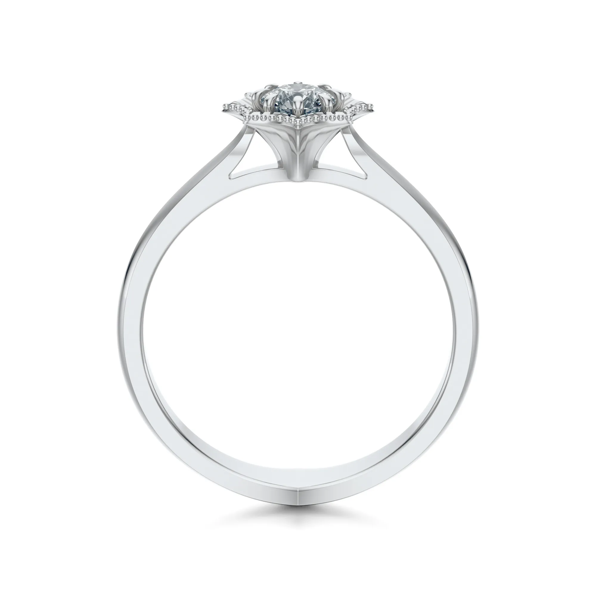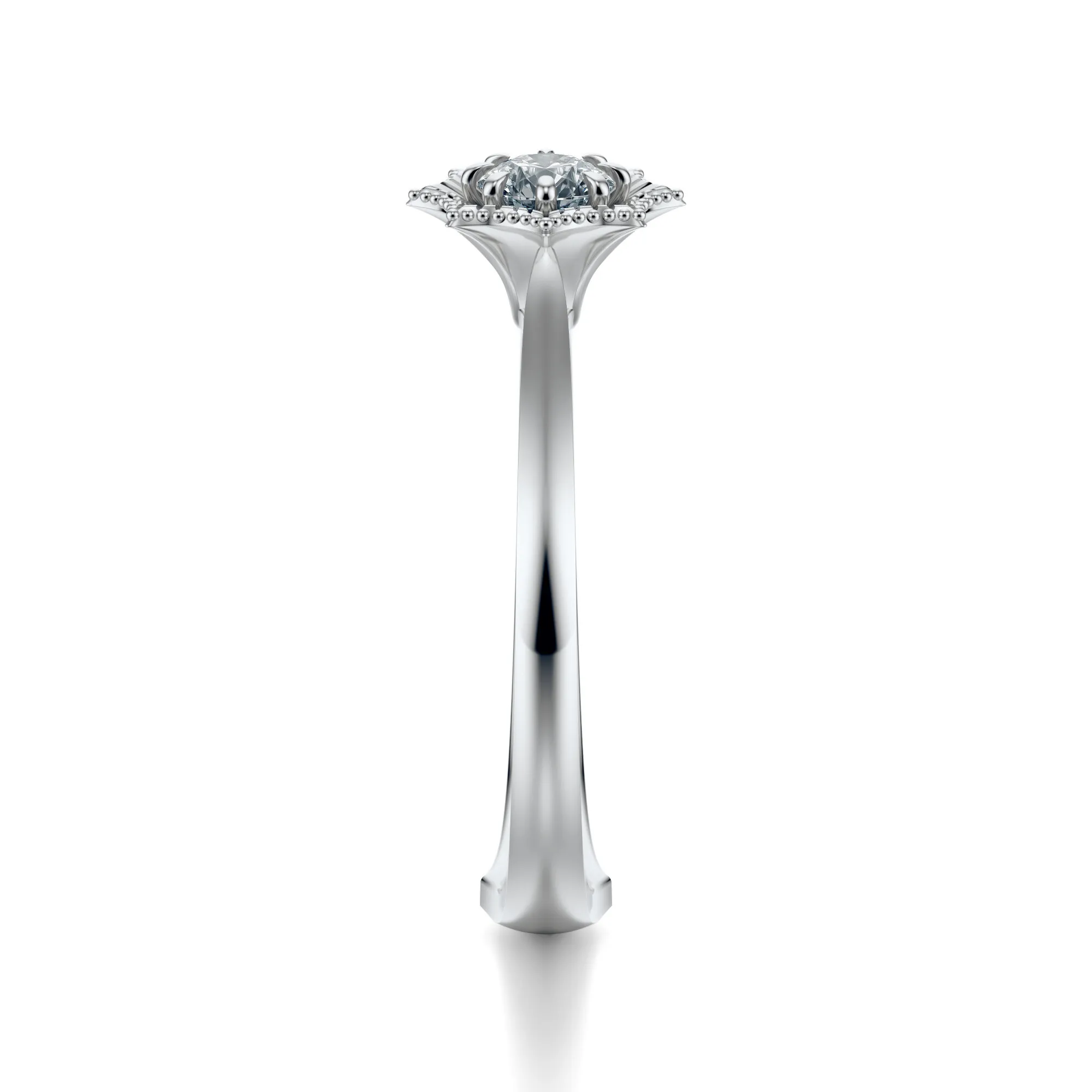 Diament – symbol wieczności, czystości i nierozerwalnej więzi – w tym projekcie ukazany jest w pełnej okazałości. Kwiatowy motyw dodaje całości lekkości, stając się metaforą kobiecego piękna i duchowej harmonii. Pierścionek ten idealnie sprawdzi się jako prezent zaręczynowy, ale również jako upominek na rocznicę, urodziny czy inny wyjątkowy moment.