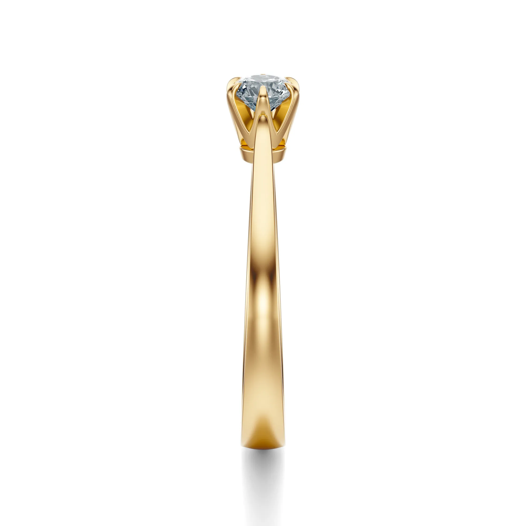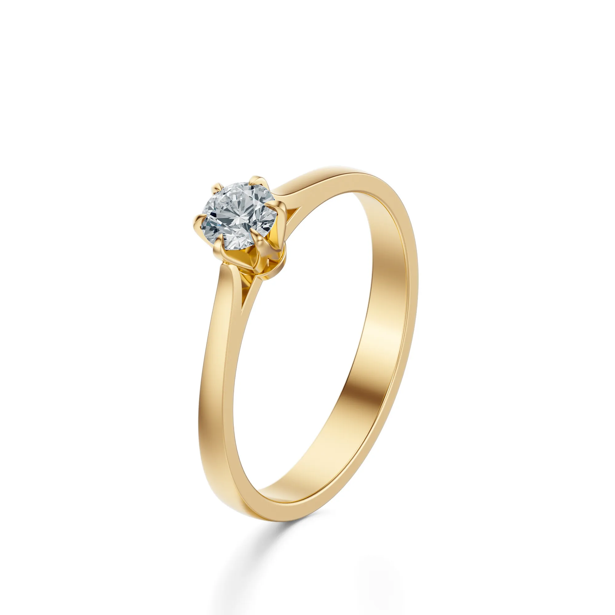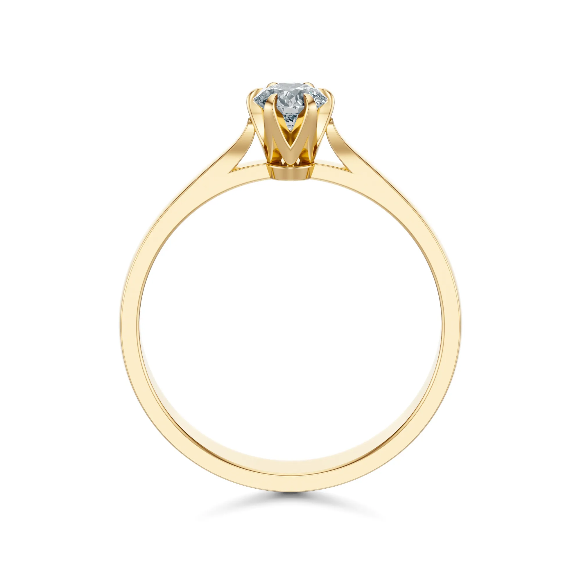 Delikatna konstrukcja pierścionka, wzbogacona o subtelnie zakrzywione ramiona i klasyczne sześcioramienne mocowanie, nadaje całości lekkości i wdzięku. To pierścionek dla kobiety ceniącej klasykę w nowoczesnym wydaniu – idealny dla miłośniczek prostoty, która nigdy nie wychodzi z mody. Diament symbolizuje trwałość uczuć, niezłomność i czystość intencji, co czyni ten model doskonałym wyborem na zaręczyny, jubileusze oraz ważne życiowe momenty.