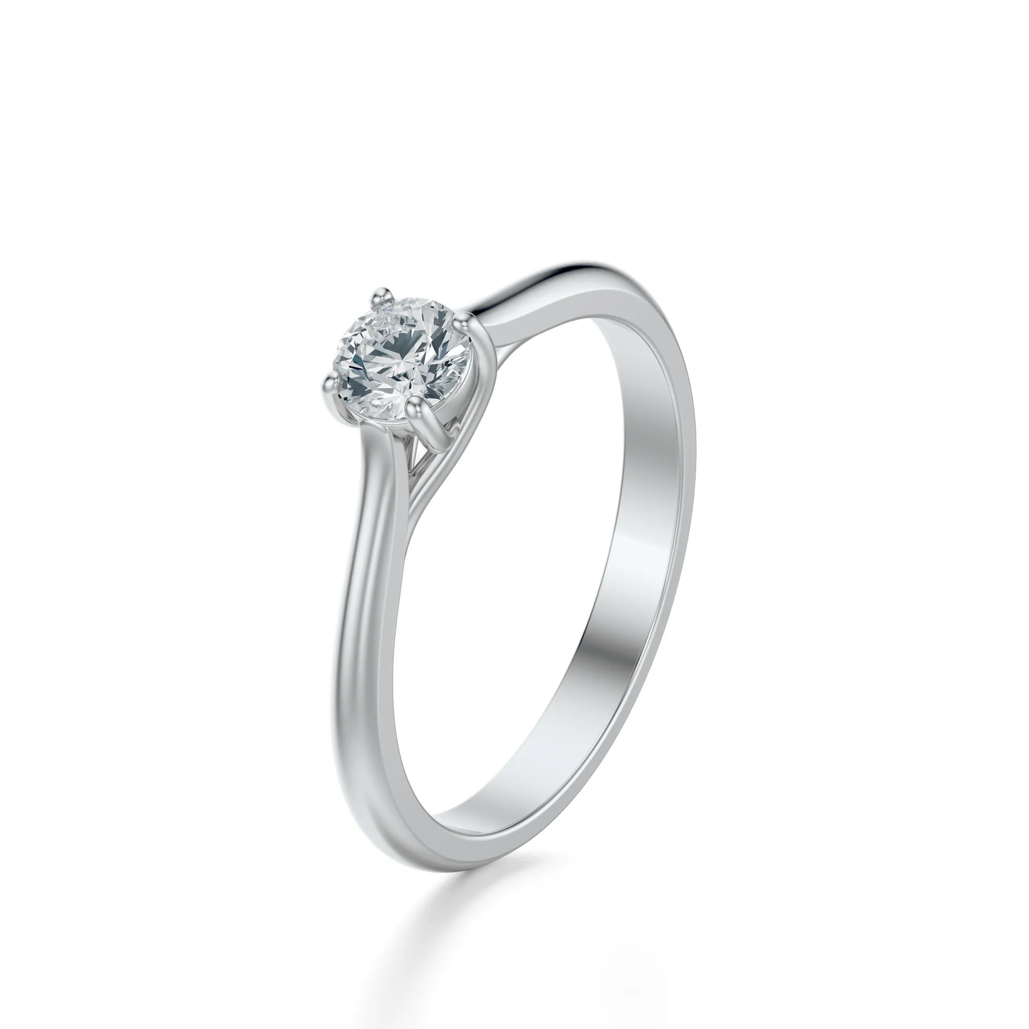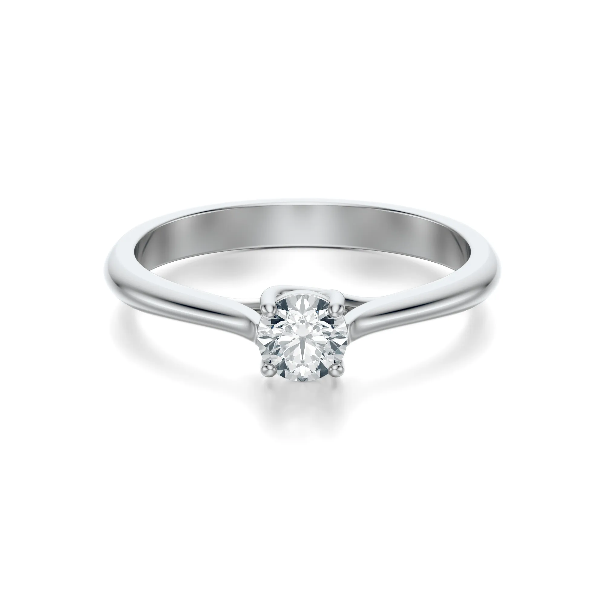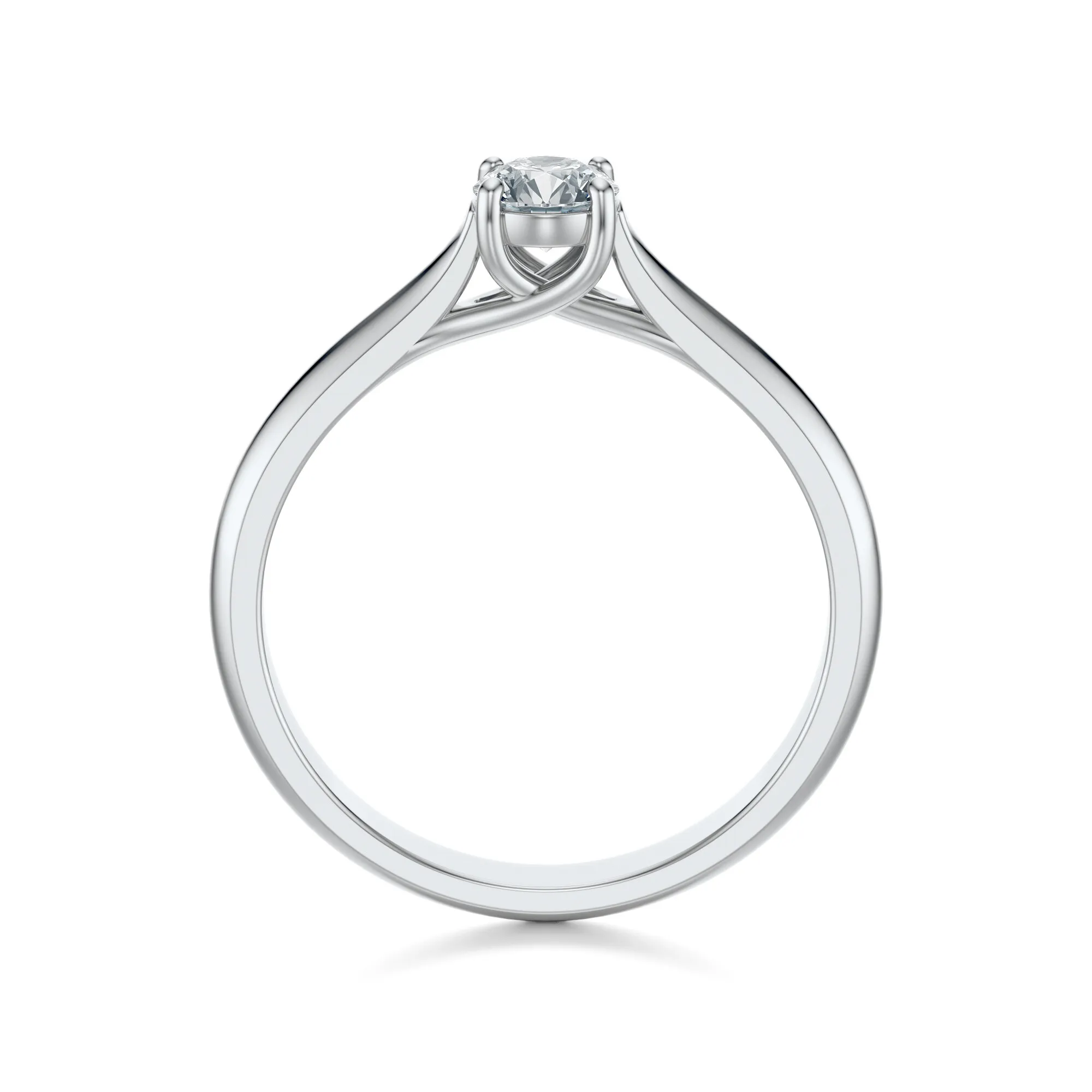 Wzornictwo tego modelu opiera się na minimalistycznym podejściu – pojedynczy diament oprawiony w cztery precyzyjnie rozmieszczone łapki wyeksponowany został w sposób, który pozwala światłu swobodnie przenikać przez kamień, potęgując jego naturalny blask. Prosta, lekko zaokrąglona obrączka dodaje pierścionkowi klasy, jednocześnie podkreślając jego nowoczesny i elegancki charakter.