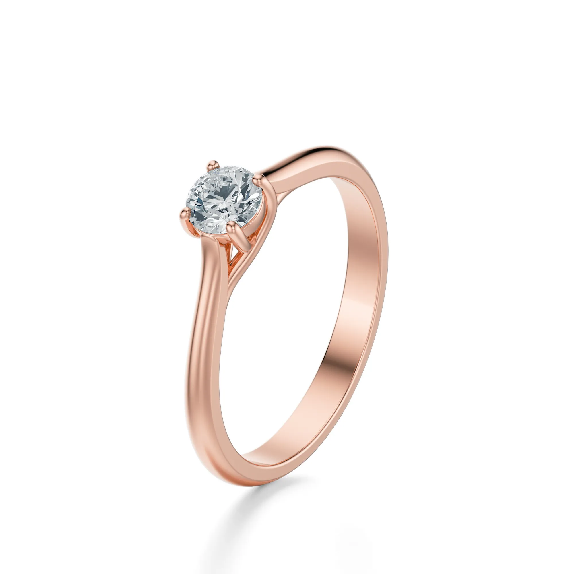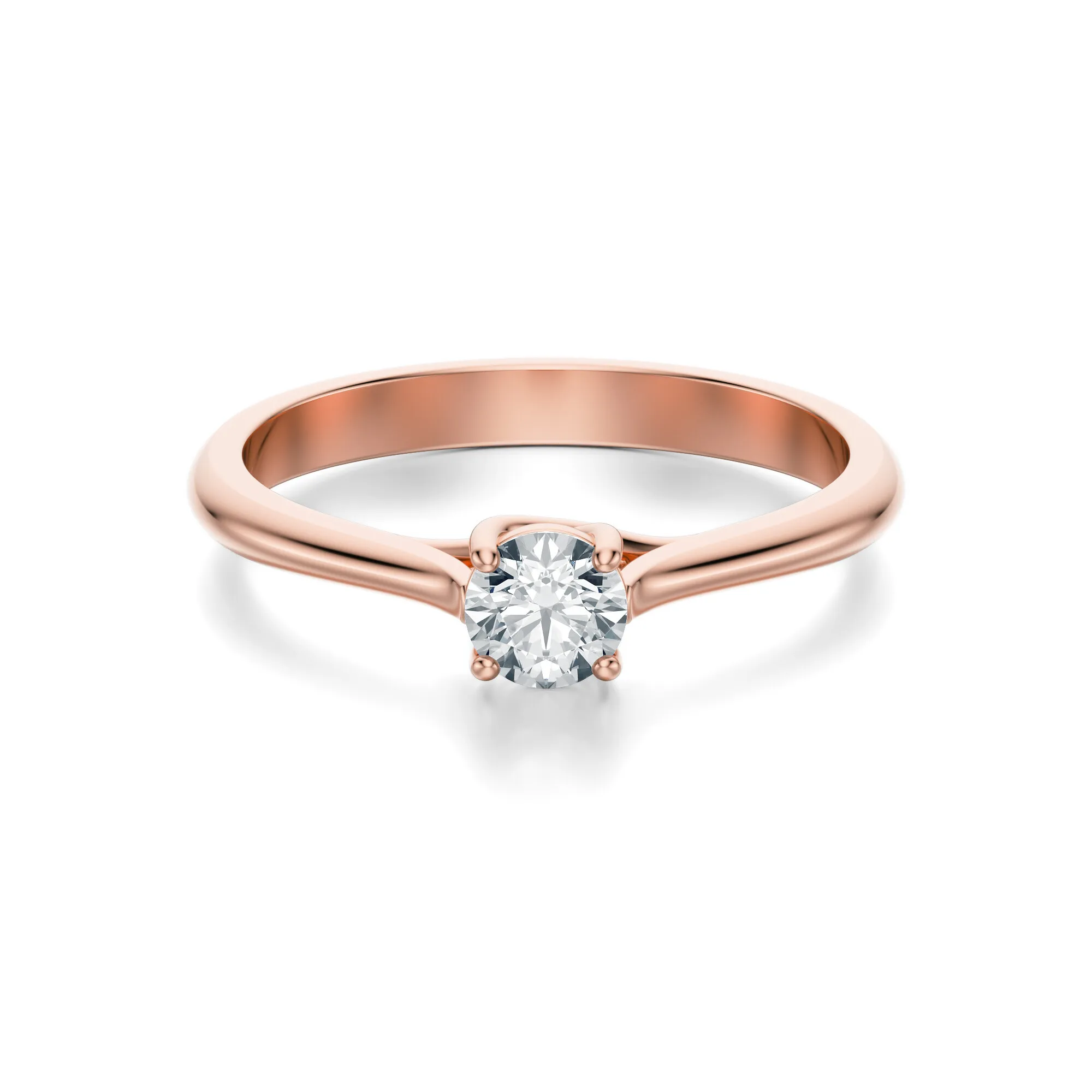 Ten zachwycający pierścionek z różowego złota to wyjątkowa kompozycja subtelności, blasku i wyrafinowanego stylu. Wykonany ze złota próby 585, przyciąga uwagę ciepłym odcieniem metalu i perfekcyjnie osadzonymi, lśniącymi diamentami. Główna ozdoba — okrągły diament w centralnym punkcie — otoczona została halo z drobnych brylantów, które potęgują jego blask i dodają całości luksusowego charakteru.