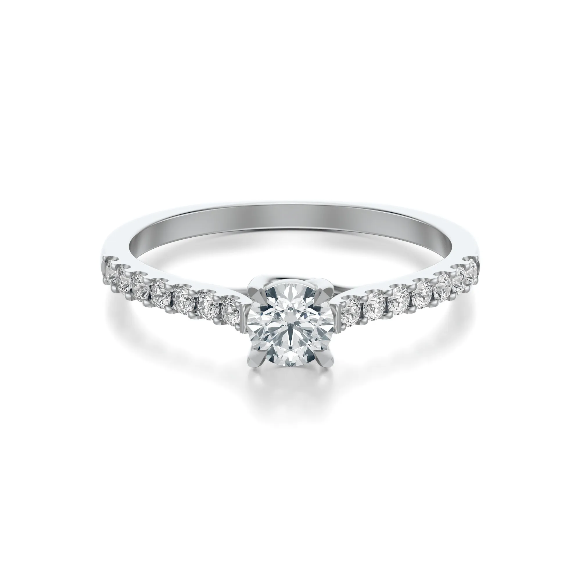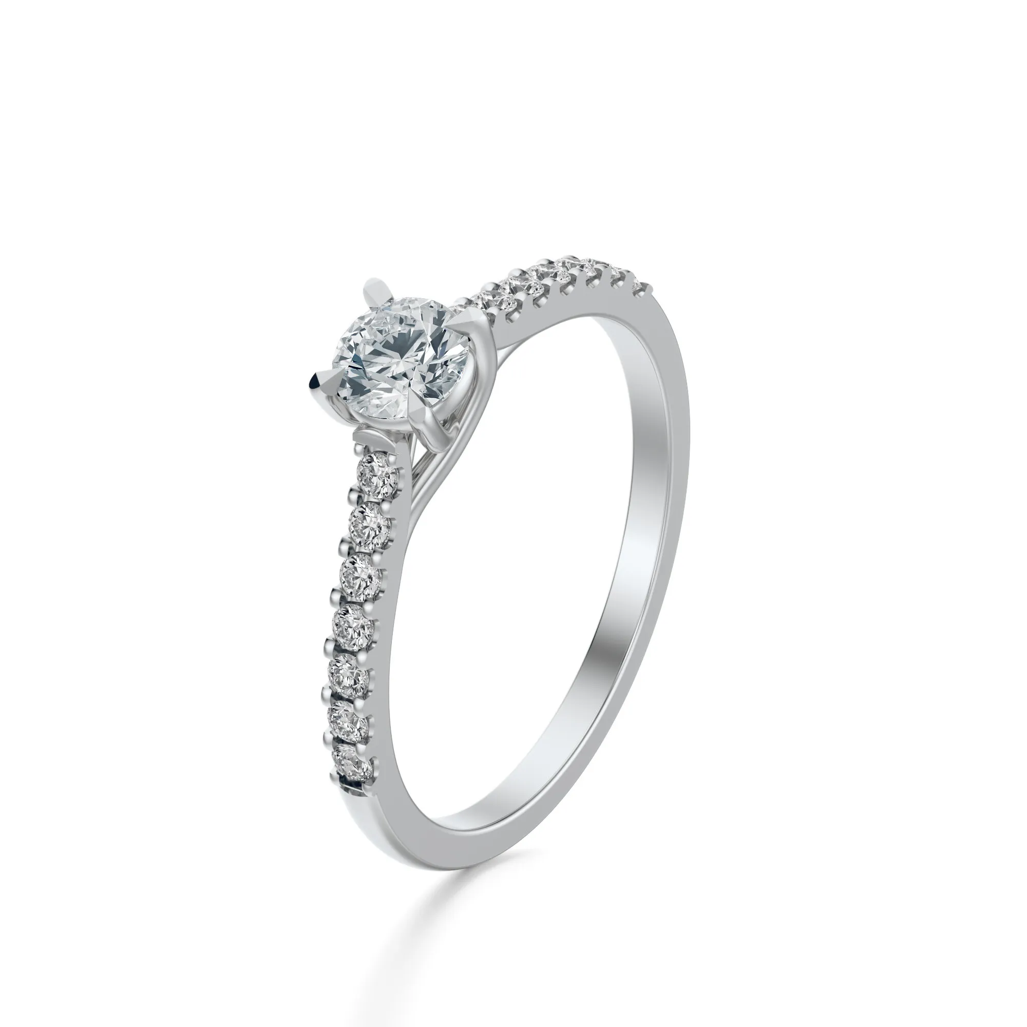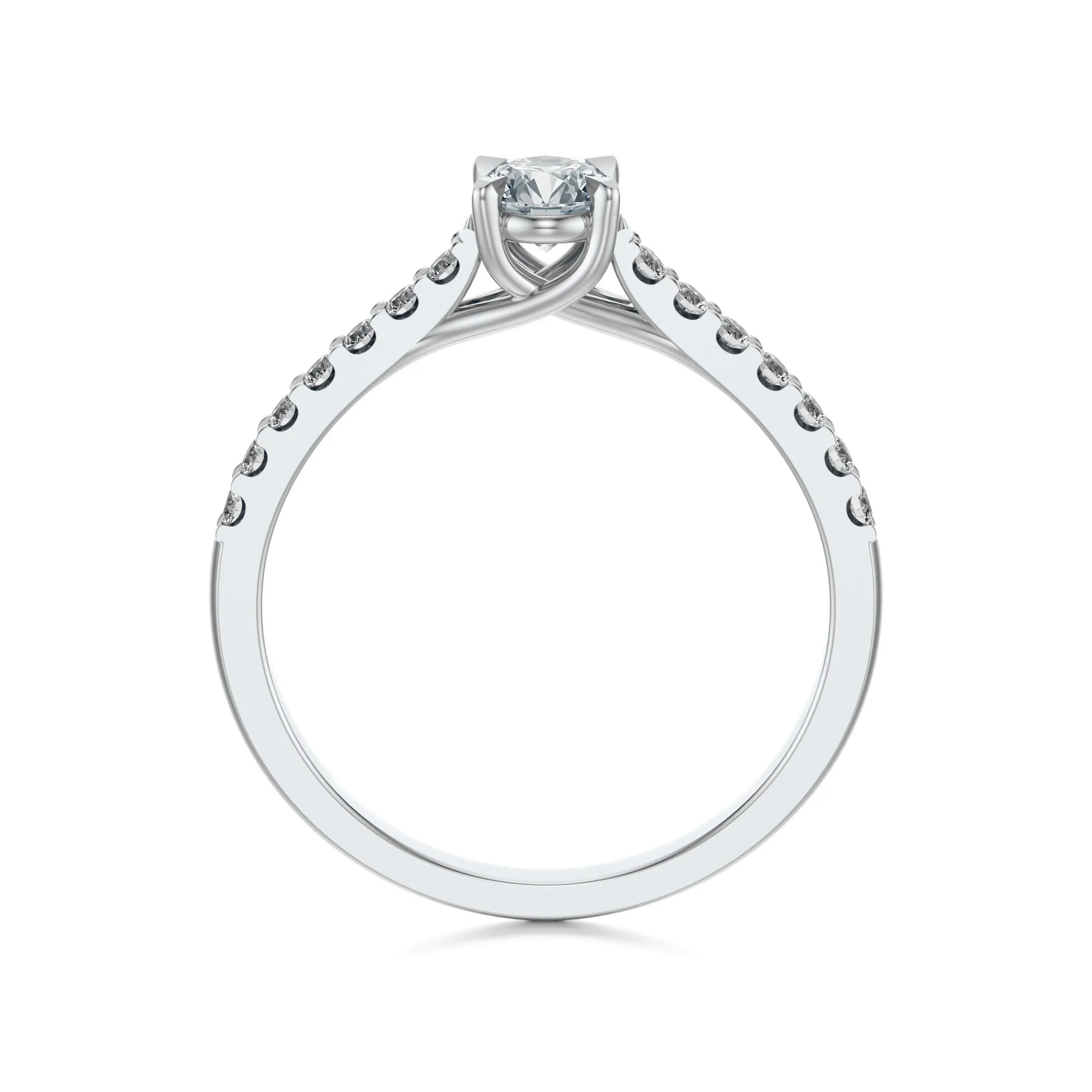 W pierścionku zastosowano diamenty o standardowych parametrach oferowanych w naszym sklepie: czystości VS2, barwie H, szlifie Excellent oraz masie 0.30, 0.40, 0.50 lub 0.70 ct – dostosowane do preferencji klienta. Precyzyjny szlif i wysokie parametry jakościowe gwarantują olśniewający efekt blasku i głębi, który podkreśla luksusowy charakter biżuterii.