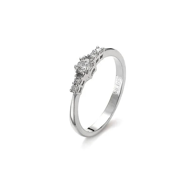Pierścionek z białego złota, zdobiony diamentami, zachwyca swoim eleganckim wyglądem na kobiecej dłoni. Ten wyjątkowy dodatek idealnie wpisuje się w gusta kobiet, które cenią subtelną biżuterię. Cała kompozycja, której uwieńczeniem są naturalne, starannie oprawione diamenty bez wątpienia przyciąga uwagę. Całkowita masa kamieni wynosi 0,34 ct, co sprawia, że pierścionek emanuje blaskiem i luksusem.