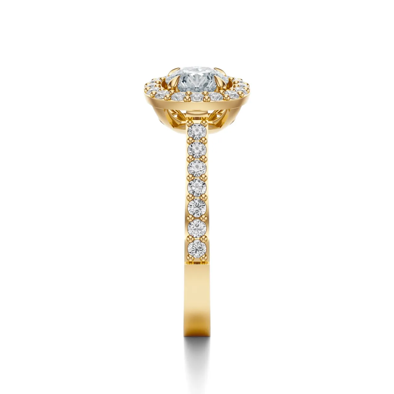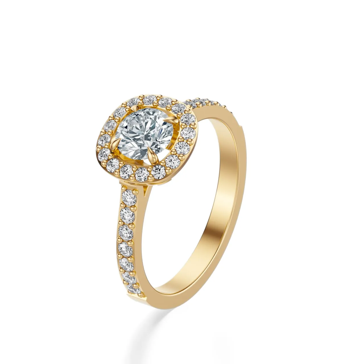 Ten wyjątkowy pierścionek zaręczynowy z diamentami to doskonały wybór dla osób, które poszukują elegancji i luksusu. Wykonany z żółtego złota, zachwyca swoją precyzją wykonania i blaskiem. Centralnym elementem pierścionka jest okrągły brylant o masie 0,50 ct, który dzięki perfekcyjnemu szlifowi emanuje niezwykłym blaskiem.