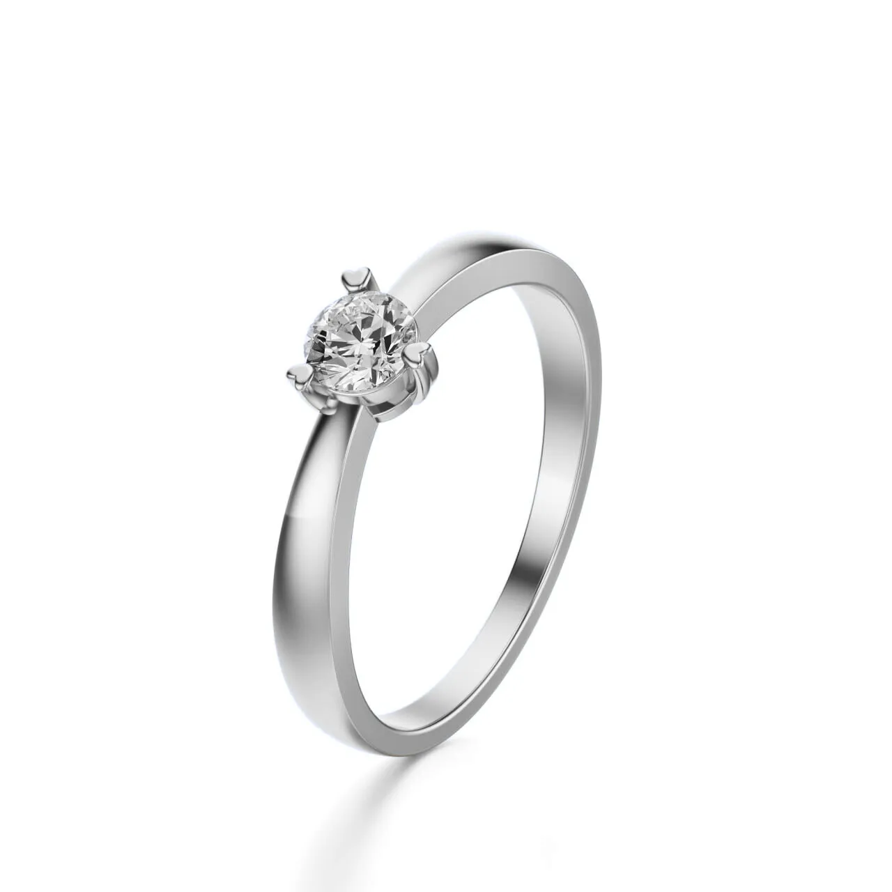 Ten niezwykły pierścionek z diamentem to idealny wybór dla osób, które cenią subtelną elegancję i ponadczasowy design. Wykonany z białego złota, zachwyca precyzją wykonania i wyrafinowaną estetyką. Centralnym elementem biżuterii jest diament o masie 0,30 ct, który dzięki perfekcyjnemu szlifowi emanuje olśniewającym blaskiem.