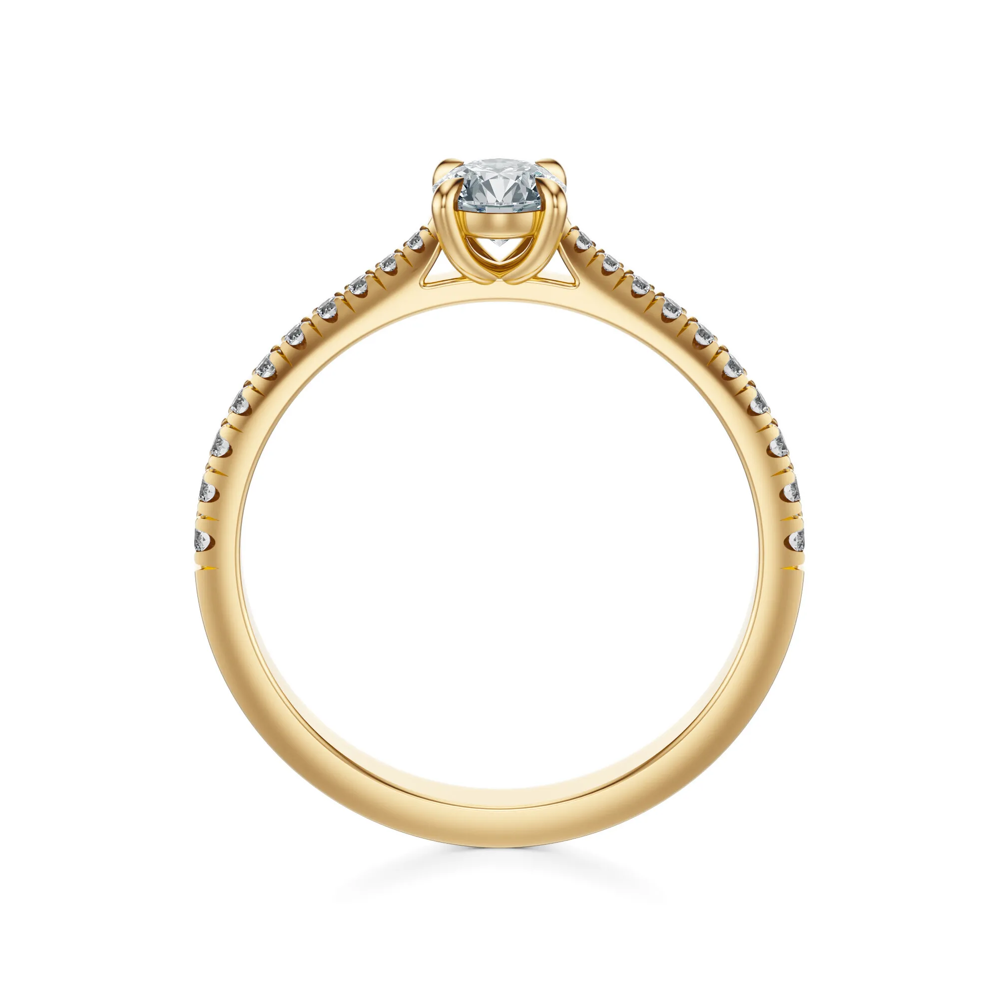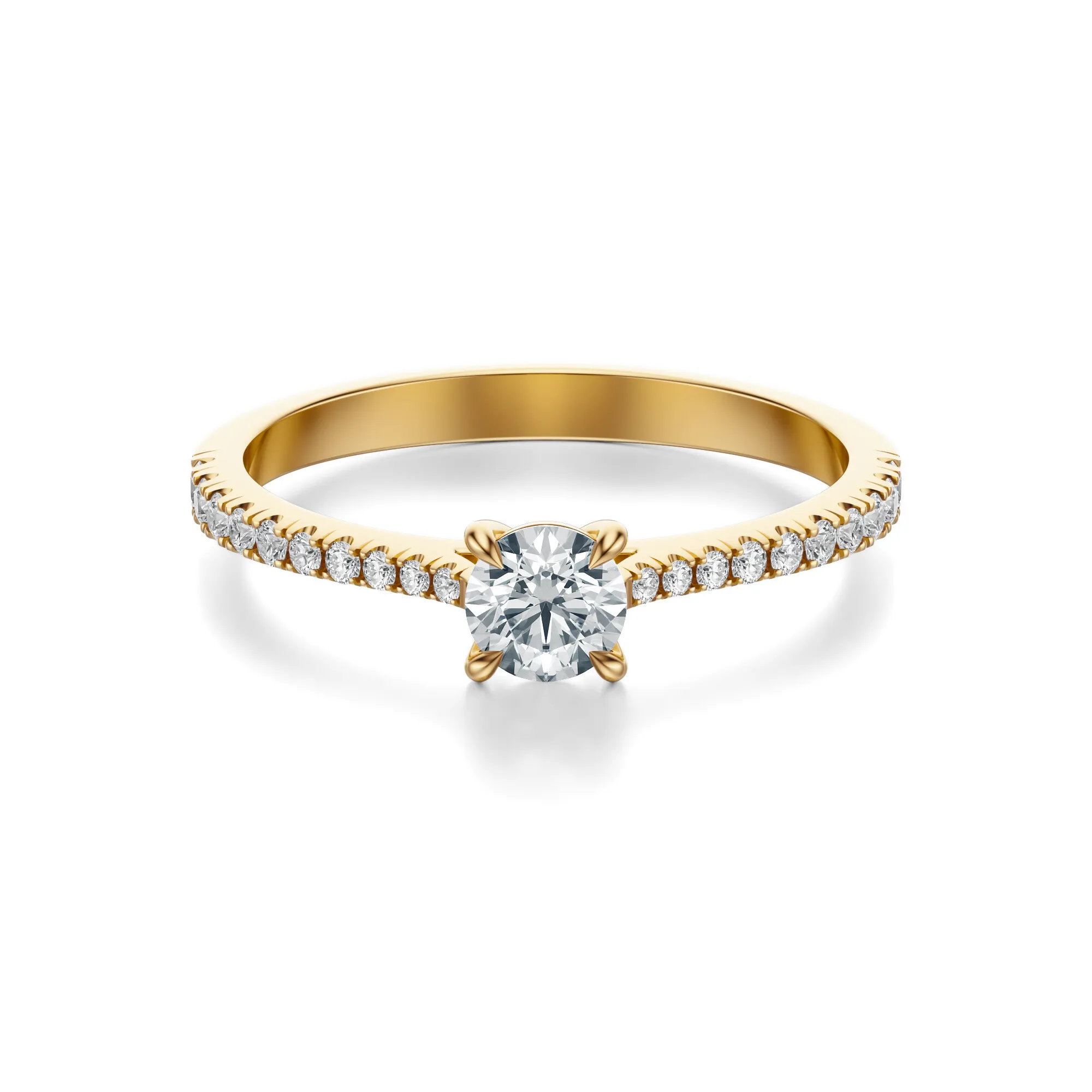 Ten złoty pierścionek zaręczynowy z diamentami to esencja klasyki w nowoczesnym wydaniu – biżuteria, która mówi więcej niż słowa.
