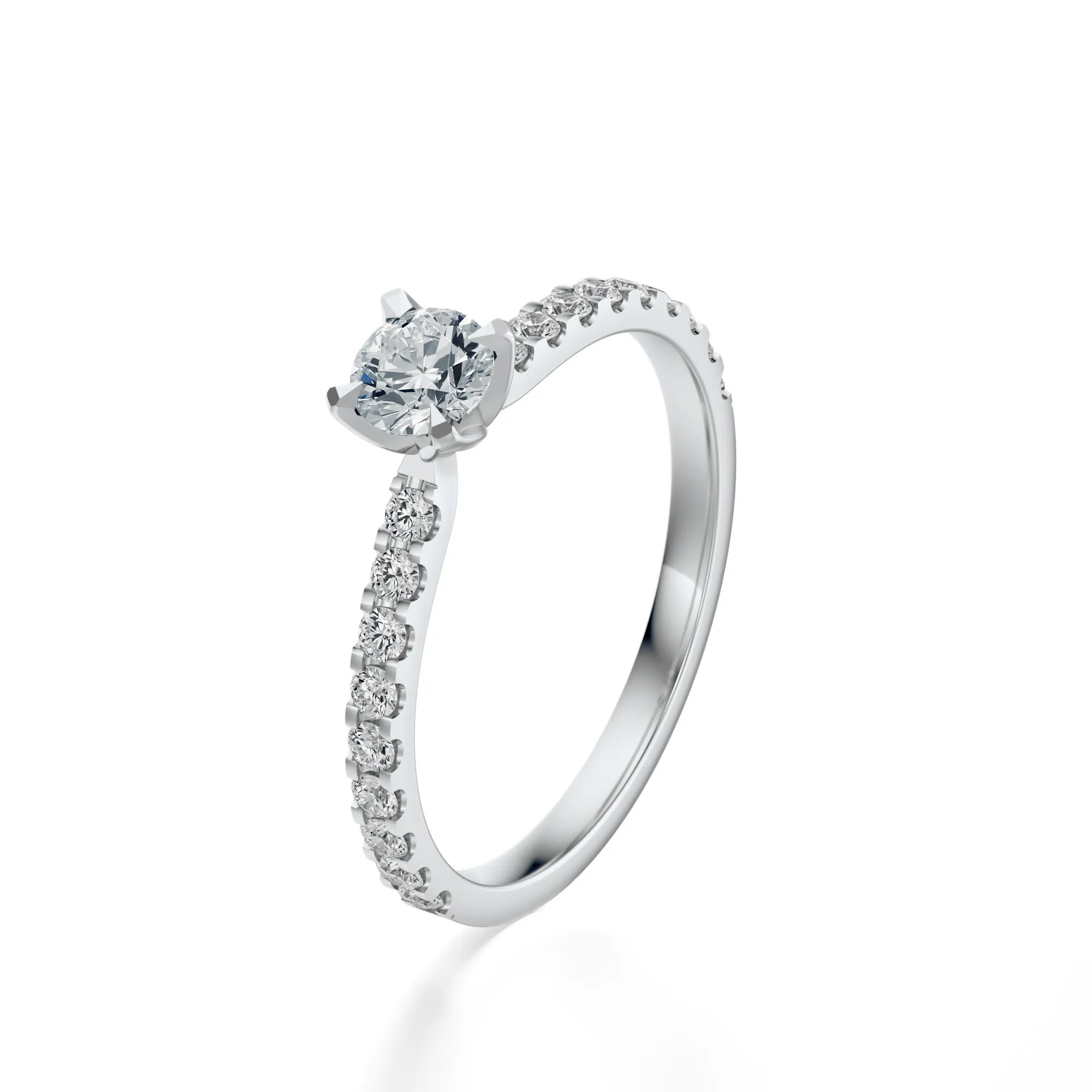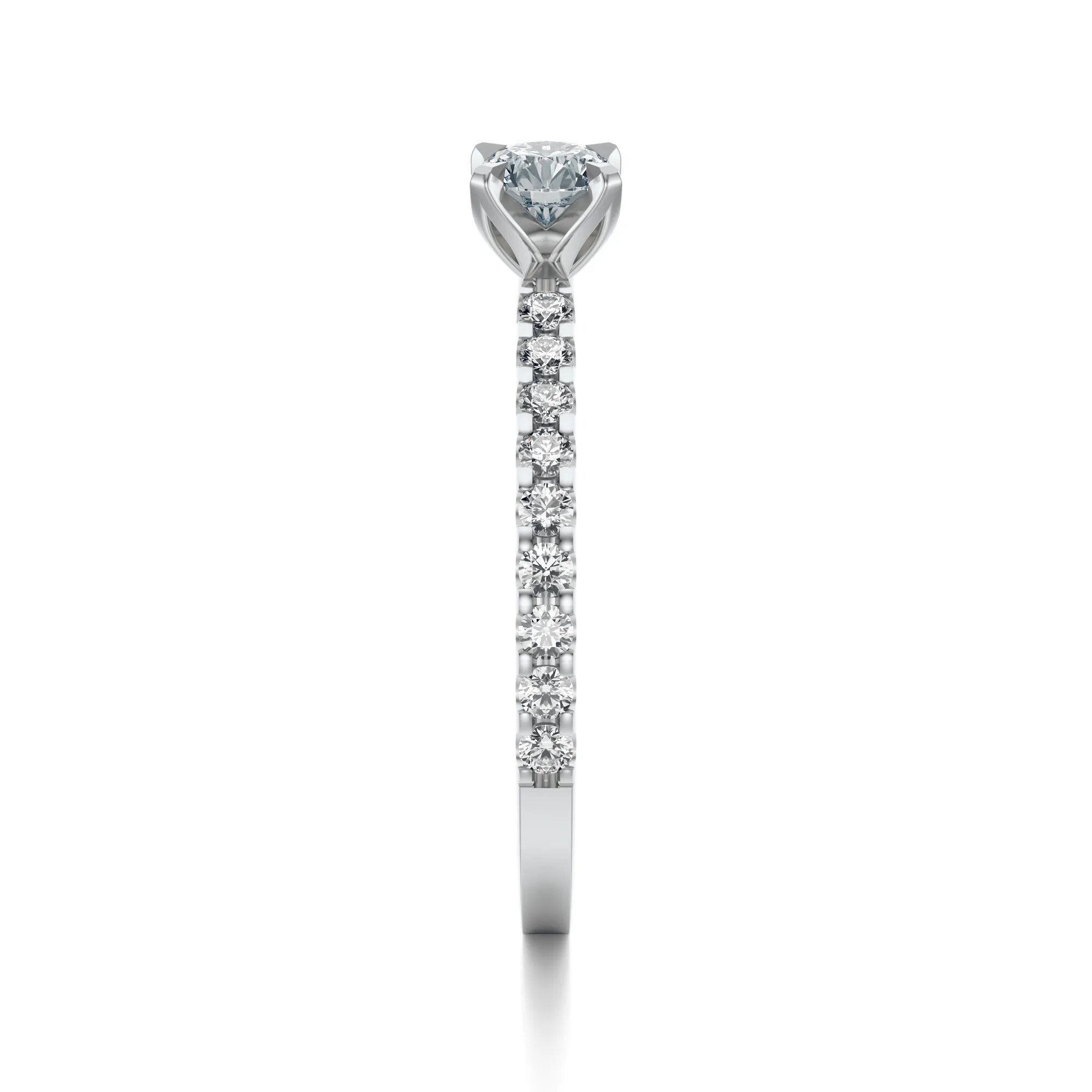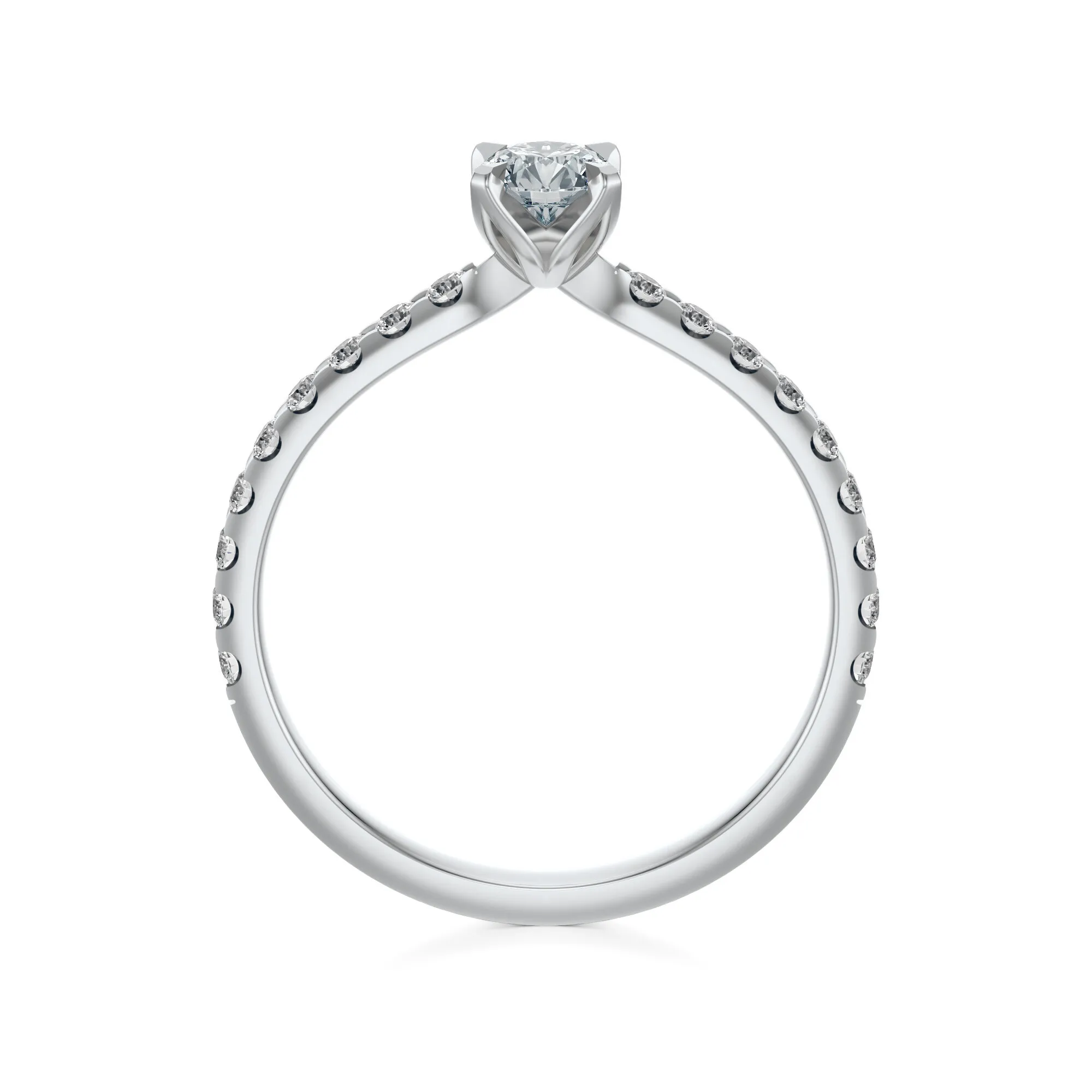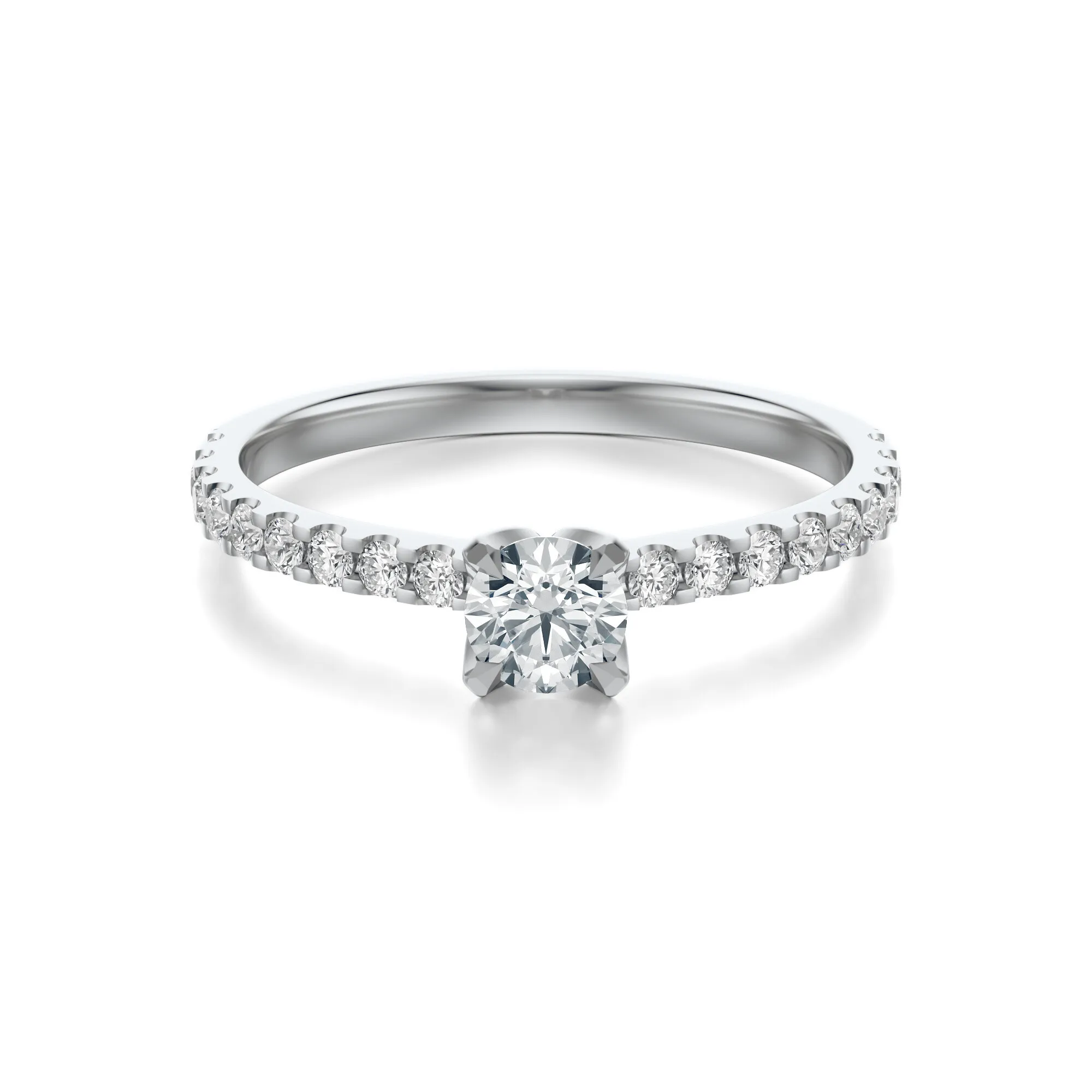 Diamenty zastosowane w tym pierścionku posiadają parametry: czystość VS2, barwa H, szlif Excellent oraz masę od 0.30 do 0.70 ct – wszystkie te wartości mogą zostać dostosowane do indywidualnych potrzeb klienta. Ich idealny szlif gwarantuje efektowne odbicie światła, co potęguje blask i elegancję biżuterii.