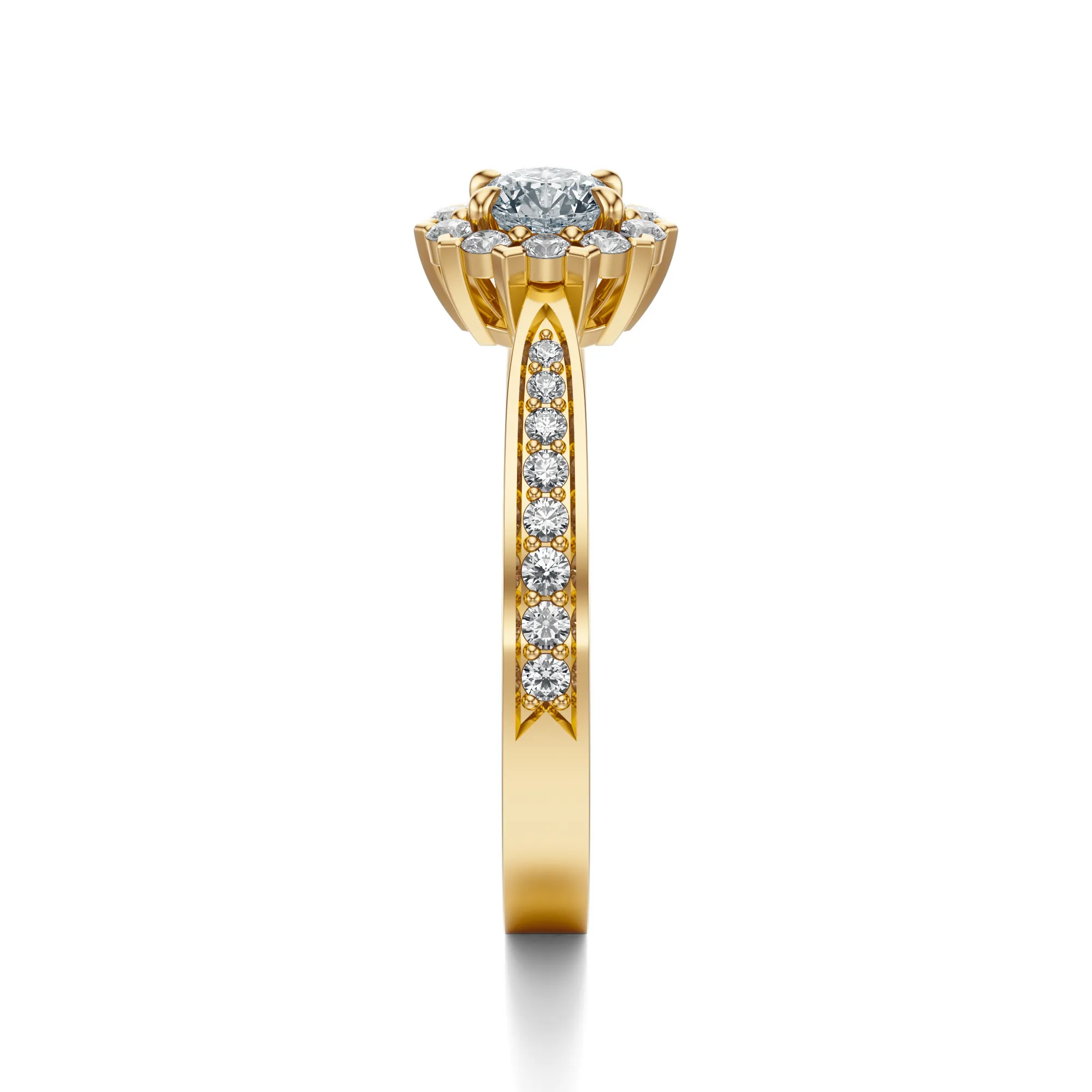 Diamenty zdobiące pierścionek wyróżniają się wyjątkowymi parametrami: czystość VS2, barwa H, szlif Excellent. Masa kamieni może być dostosowana do preferencji klienta (0.30, 0.40, 0.50 lub 0.70ct). Starannie dobrane proporcje i precyzyjny szlif podkreślają ich naturalny blask i świetlistość. Certyfikowana jakość diamentów zapewnia trwałość i niezmienny efekt wizualny przez długie lata.