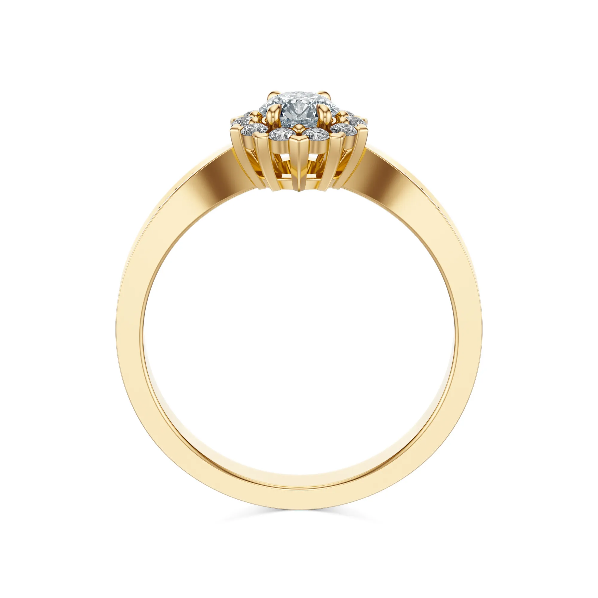 Pierścionek prezentuje klasyczny styl wzbogacony o nutę nowoczesnej lekkości – dzięki oprawie przypominającej kwiatowy motyw z wypukłym środkiem i opływową formą obrączki. Diamenty w szynie nadają całości elegancji i wyjątkowego charakteru. To doskonała propozycja dla kobiet, które pragną czegoś więcej niż prostoty – pierścionka, który wyraża emocje i ponadczasową miłość. Doskonale sprawdzi się jako pierścionek zaręczynowy, ale równie pięknie będzie wyglądał jako podarunek z okazji rocznicy lub innego ważnego momentu.