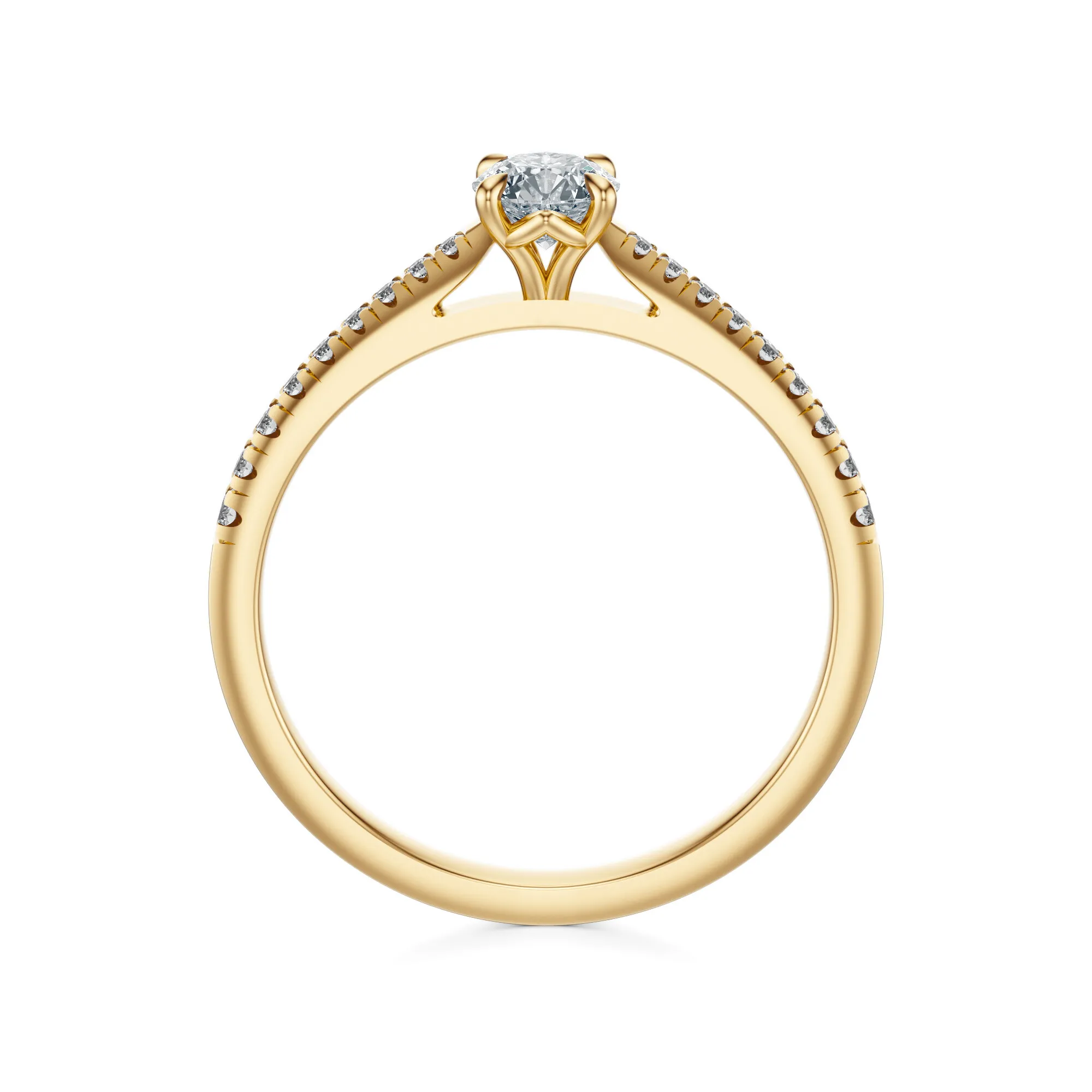 Design pierścionka opiera się na klasycznym stylu z nowoczesnym akcentem – wąska, smukła obrączka ozdobiona została rzędem drobnych diamentów prowadzących do centralnego kamienia. Taka konstrukcja dodaje lekkości i wydłuża optycznie palec. To wybór idealny dla kobiet, które cenią sobie dyskretny luksus i minimalistyczne formy. Diamenty symbolizują wieczność, siłę i czystość uczuć – dlatego ten pierścionek doskonale sprawdzi się jako pierścionek zaręczynowy lub prezent z okazji rocznicy.