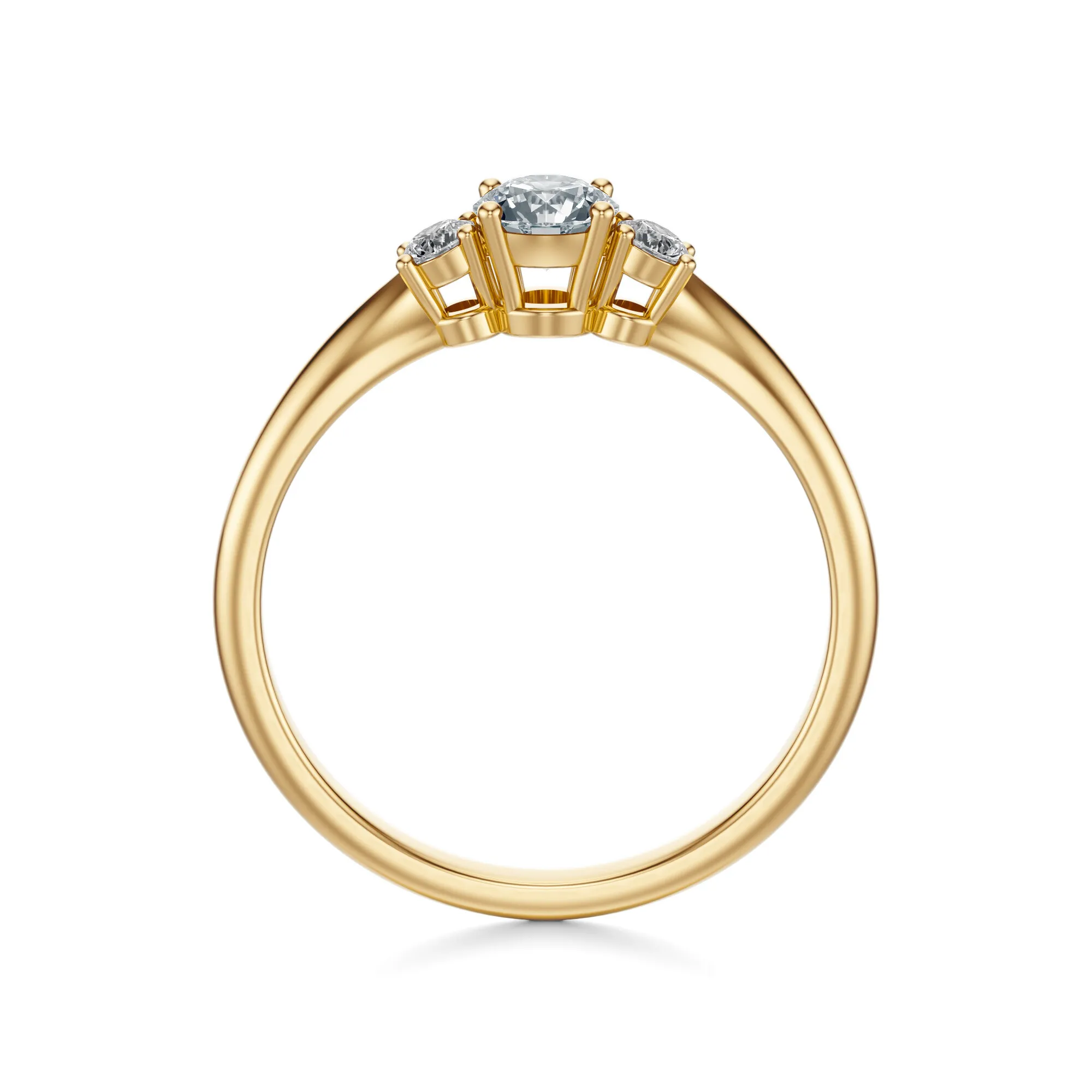 Okrągłe diamenty, rozmieszczone w symetrycznym rzędzie, tworzą zrównoważoną i spójną całość, która podkreśla delikatność obrączki i naturalny połysk kruszcu. Ten złoty pierścionek zaręczynowy to idealna propozycja dla miłośników minimalistycznej biżuterii, którzy cenią sobie kunszt, subtelność i wyraźny, lecz nieprzytłaczający akcent. Symbolizuje siłę, harmonię oraz trwałość uczuć, co czyni go wymarzonym wyborem na wyjątkowy moment zaręczyn.