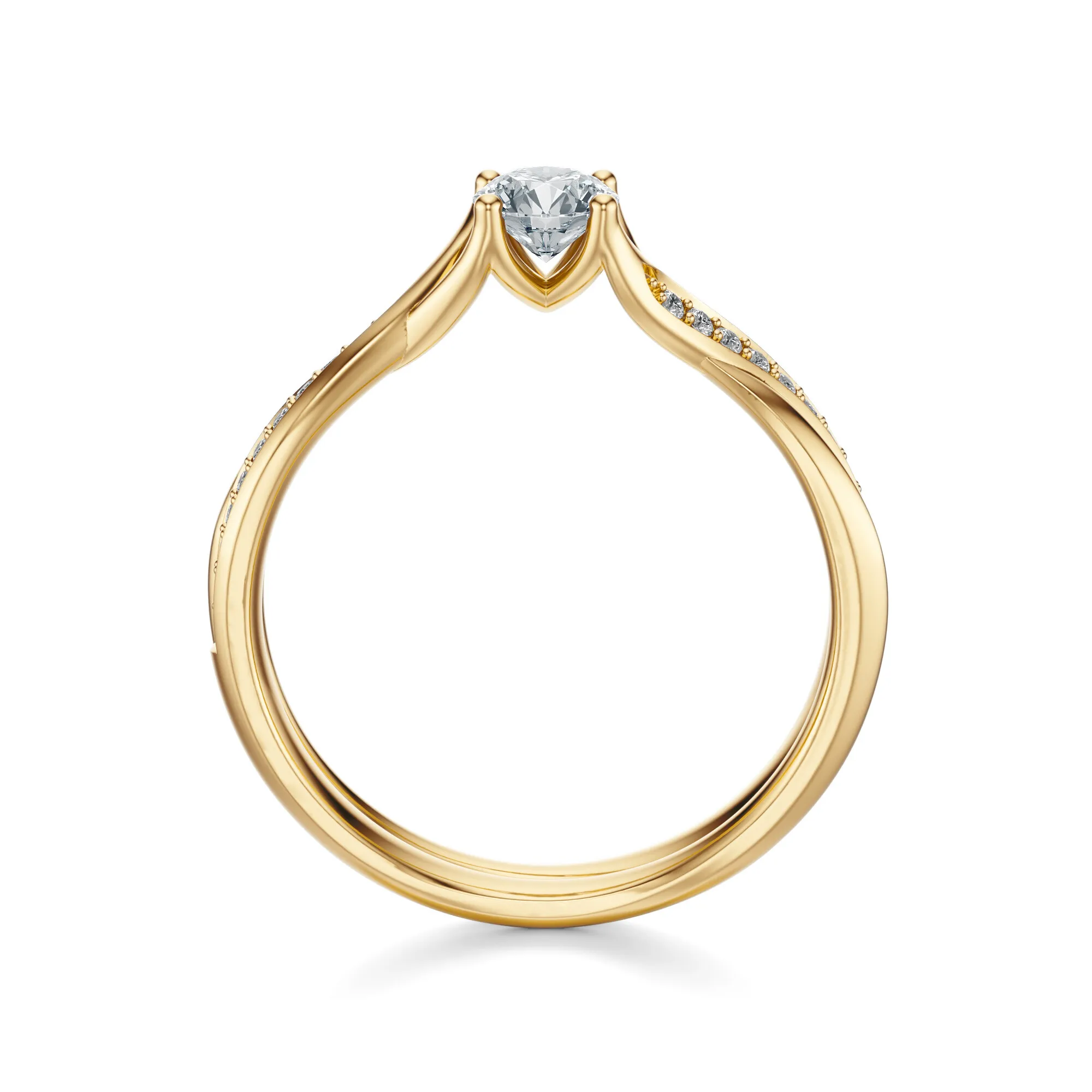 Diamenty użyte w tym modelu posiadają standardowe parametry: czystość VS2, barwa H, szlif Excellent i masy 0.30, 0.40, 0.50 lub 0.70ct, z możliwością indywidualnej konfiguracji. Starannie osadzone kamienie zapewniają maksymalne odbicie światła, co przekłada się na wyjątkowy połysk całego pierścionka. Każdy detal spełnia międzynarodowe standardy jubilerskie, gwarantując trwałość i bezkompromisową jakość.