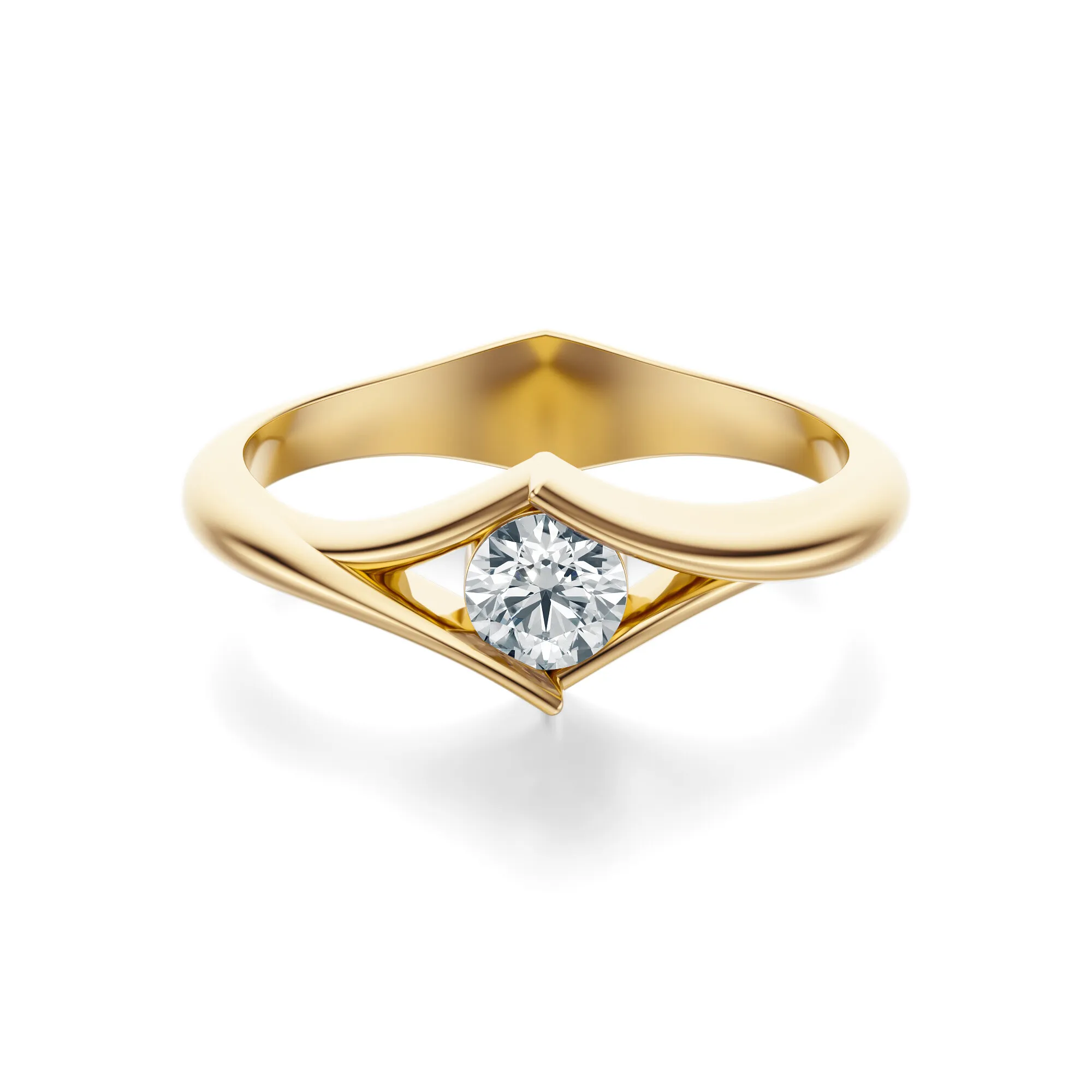 Zachwycający w formie i ponadczasowy w wyrazie — ten pierścionek zaręczynowy wykonany ze złota o próbie 585 w kolorze żółtym przyciąga wzrok nie tylko precyzją wykonania, ale także nowoczesnym podejściem do klasyki. Centralnie osadzony diament w subtelnie zakrzywionej oprawie podkreśla intensywny blask kamienia i wydobywa jego niezwykłą głębię. Żółte złoto tworzy ciepłą, szlachetną oprawę dla lśniącego diamentu o okrągłym szlifie.