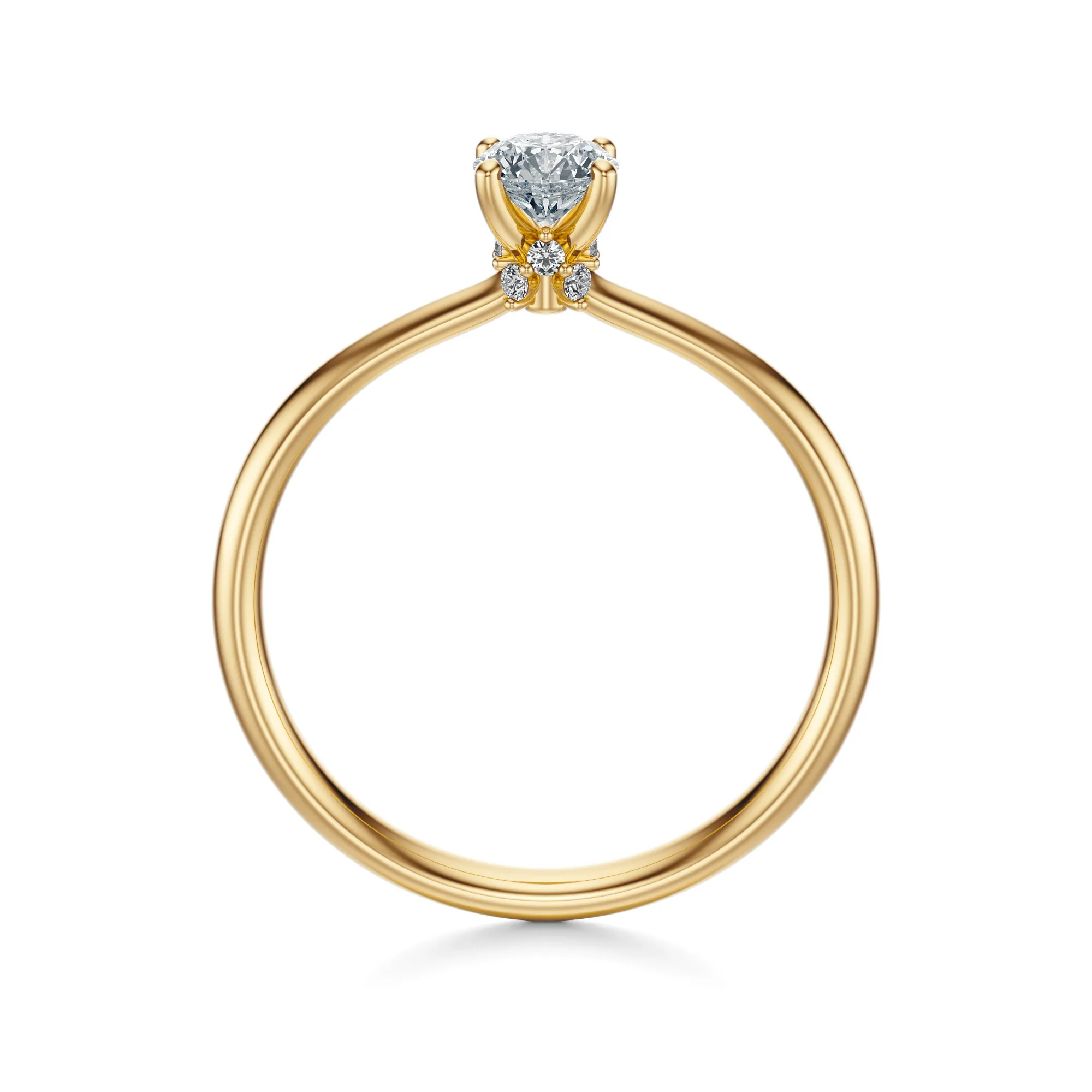 Centralny diament o szlifie typu Excellent w połączeniu z czystością VS2 i barwą H zapewnia maksymalne odbicie światła i olśniewający połysk. Masa kamienia dostępna jest w wersjach 0.30, 0.40, 0.50 i 0.70ct – z możliwością indywidualnej konfiguracji. Boczne, mniejsze kamienie dodatkowo potęgują efekt świetlnego rozbłysku, tworząc harmonijną całość. Całość spełnia rygorystyczne normy branżowe, oferując pewność najwyższej jakości.