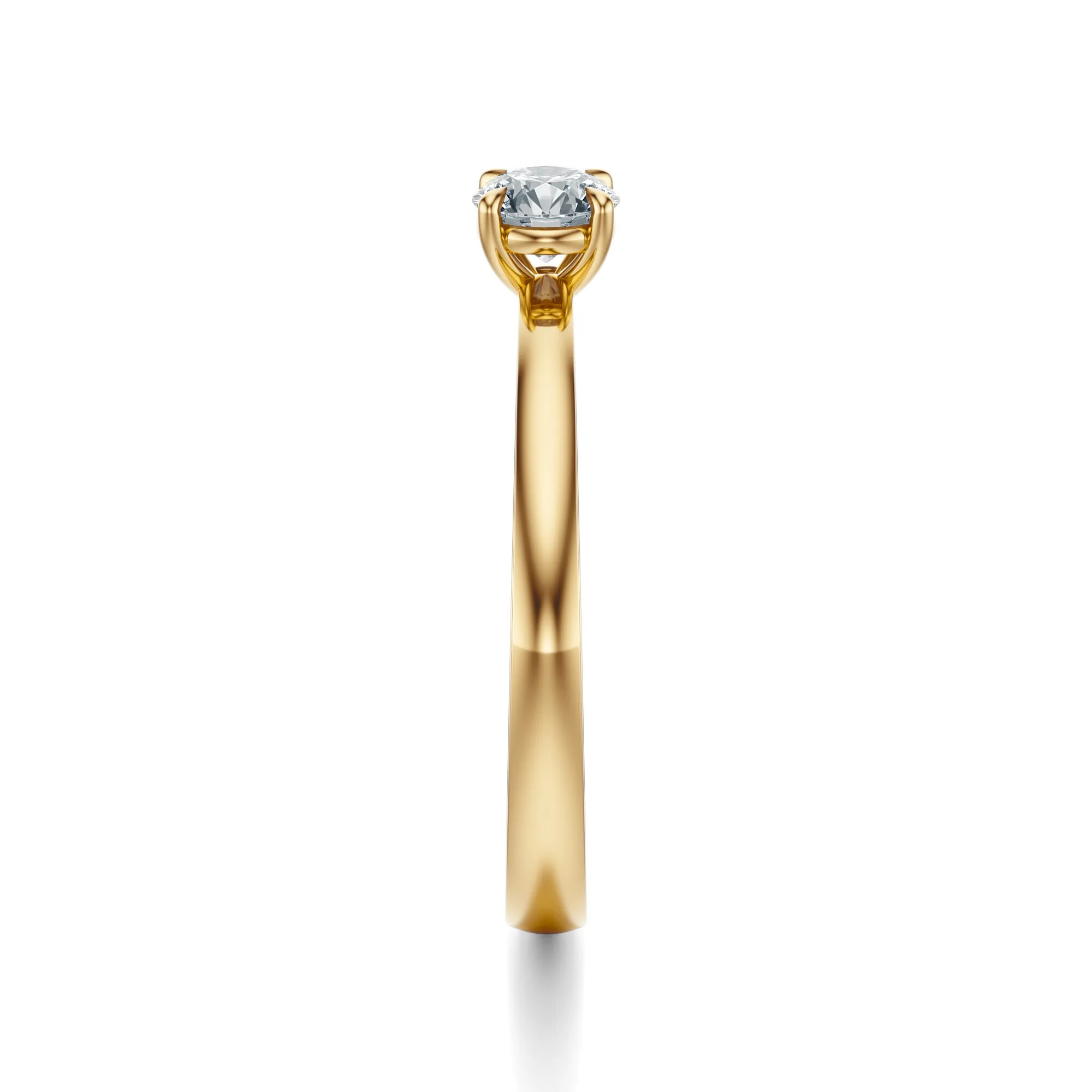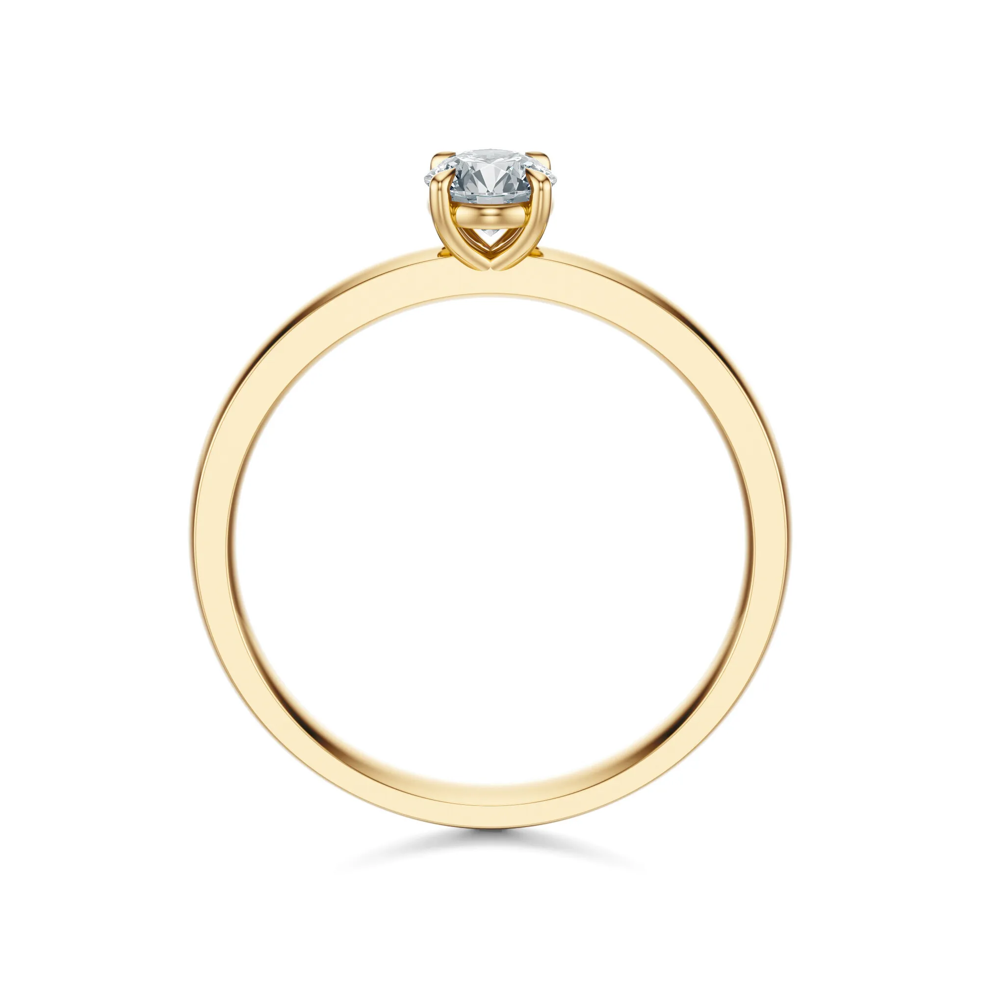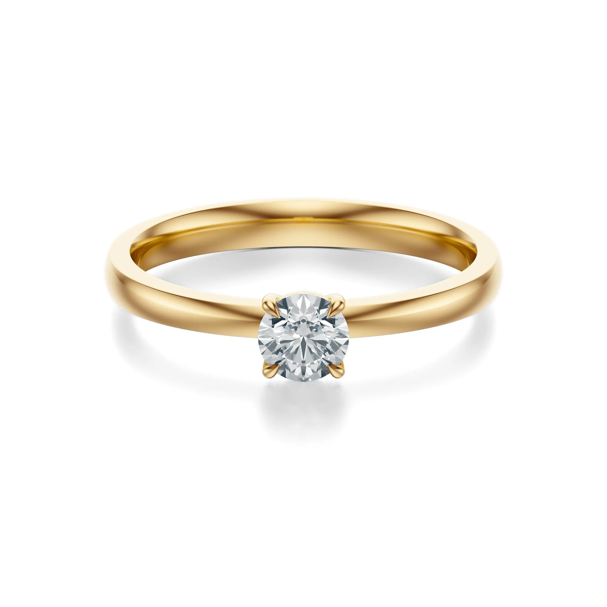 Minimalistyczna forma, elegancki połysk i ponadczasowy blask diamentu – ten pierścionek zaręczynowy wykonany ze złota o próbie 585 w kolorze klasycznego żółtego złota zachwyca swoją prostotą i szlachetnością. Centralny okrągły diament osadzony został w czteroramiennej oprawie, co nadaje całości subtelnej lekkości i doskonałej ekspozycji kamienia.