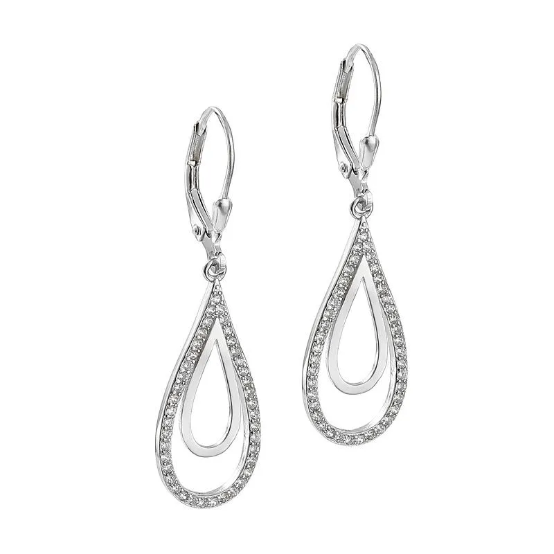 Kolczyki srebrne z cyrkoniami wiszące zostały wyposażone w bardzo popularne zapięcie typu zatrzask, które zabezpieczają je przed odpięciem i utratą. Ze względu na swoją długość kolczyki będą wygodne do noszenia oraz subtelnie podkreślą szczupłość Twojej szyi. Element ozdobny ma kształt dwóch kropel. Zewnętrzny kontur formy wypełniono maleńkimi, błyszczącymi cyrkoniami o transparentnej barwie. Srebrne kolczyki z cyrkoniami dopełnią każdą stylizację: na co dzień, do pracy lub na spotkanie z przyjaciółmi.